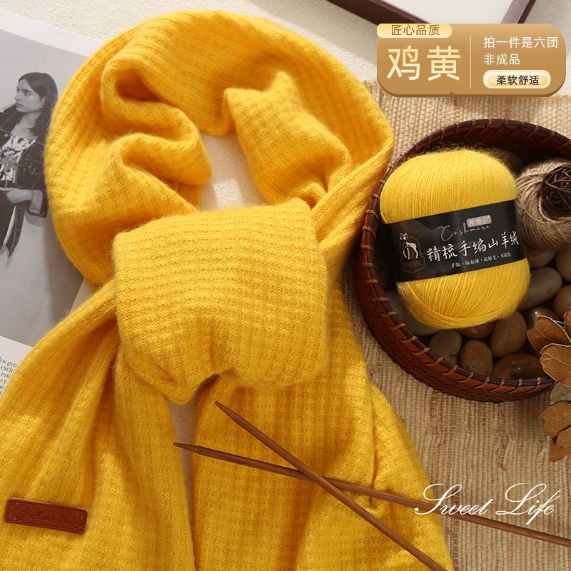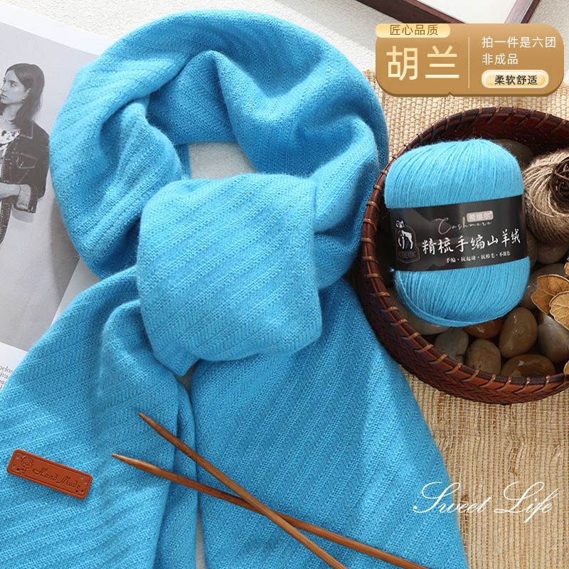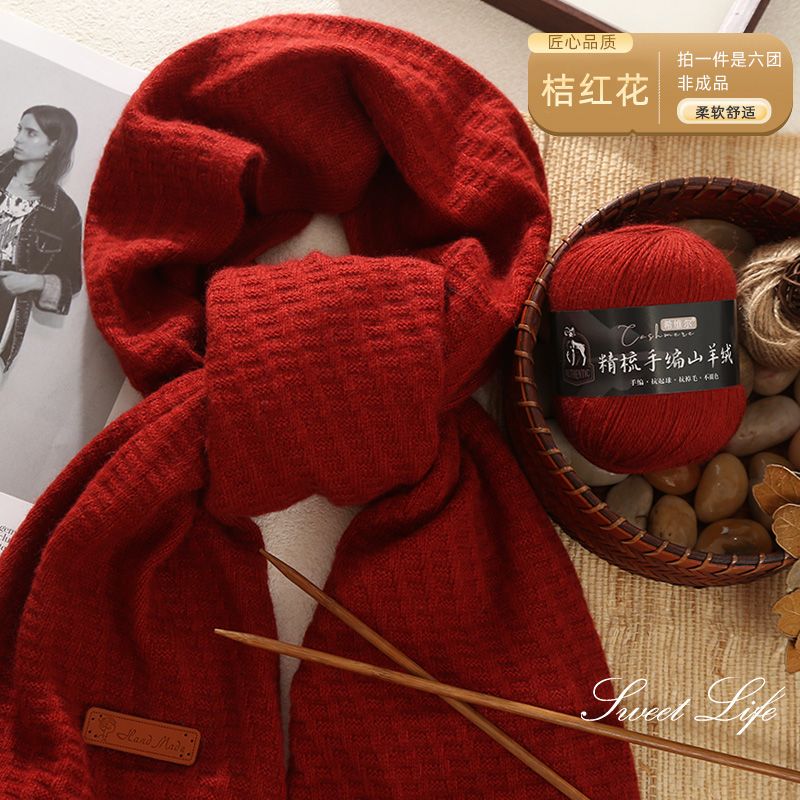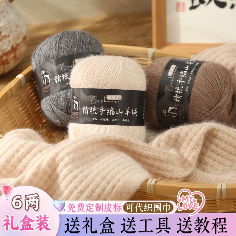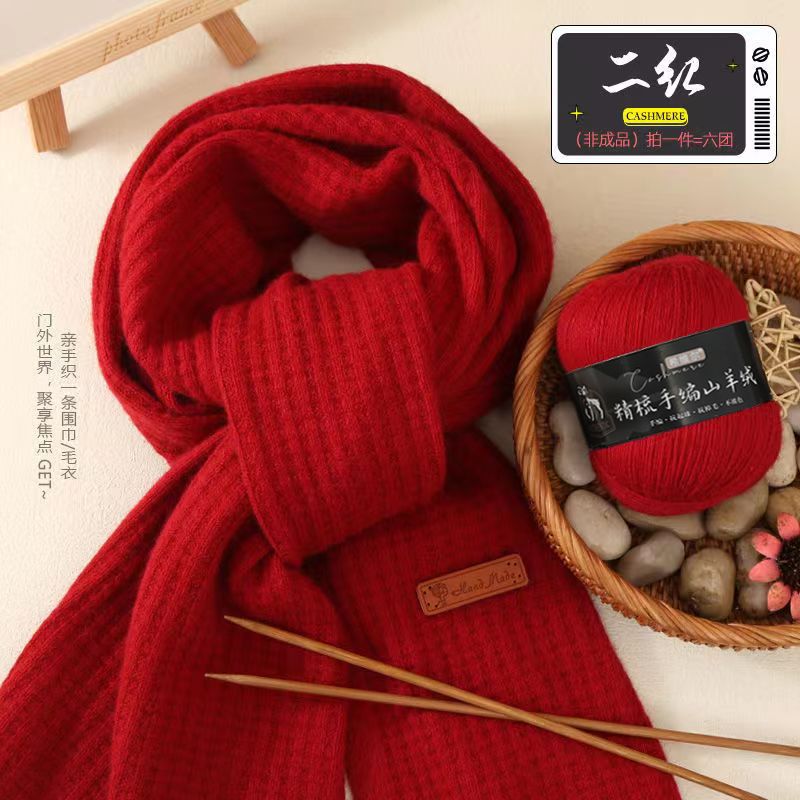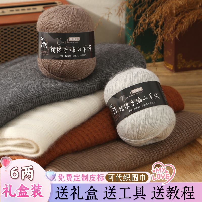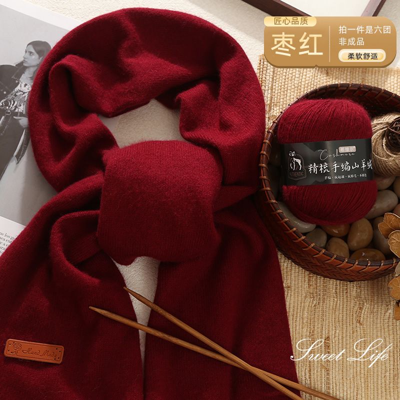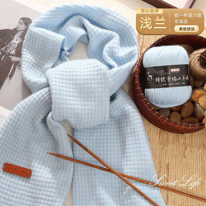 围巾毛线手工diy纯山羊绒中粗毛线团女自织围脖送男友编织材料包