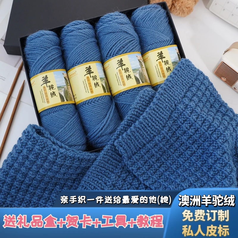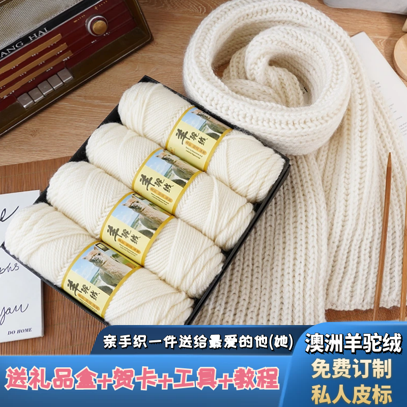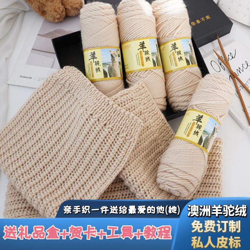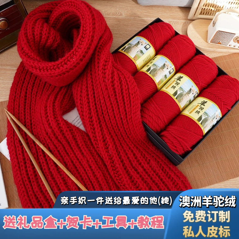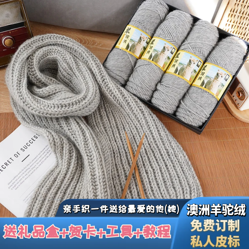 100%中粗羊绒线手工diy编织围巾围脖毛衣围巾线材料包送男女朋友