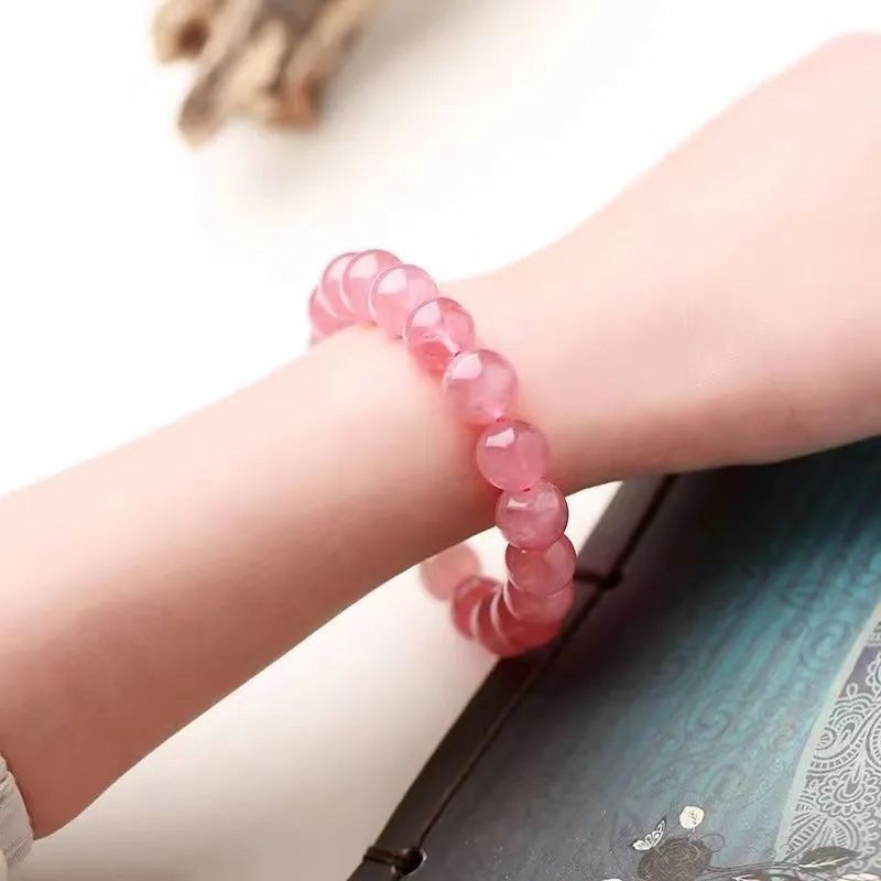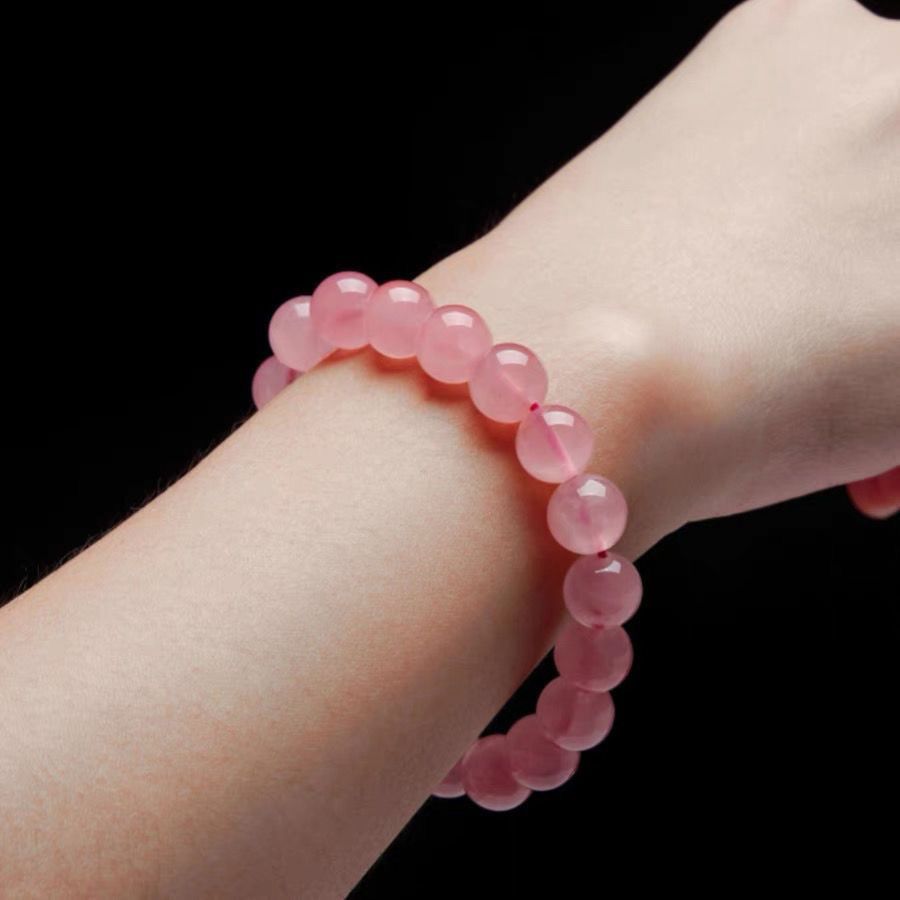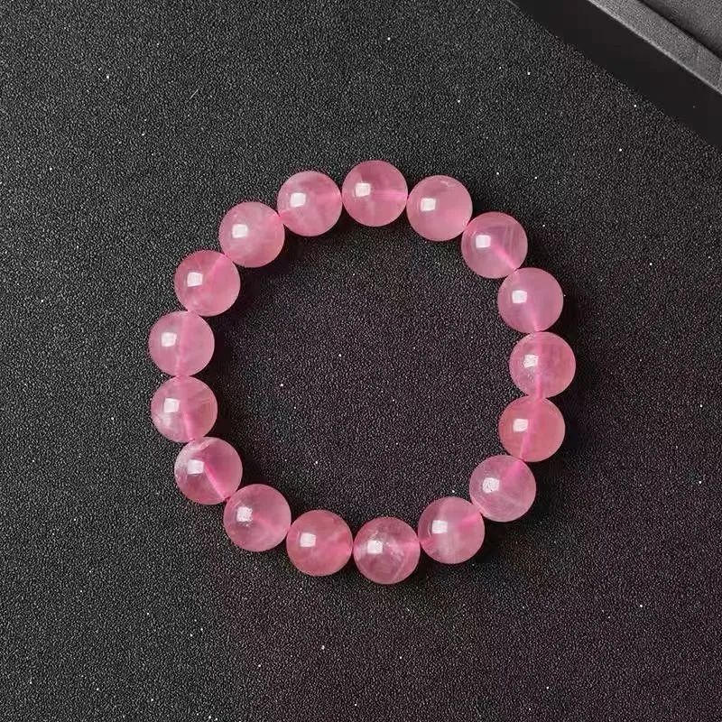 天然粉水晶手链女款马达加斯加粉晶粉色芙蓉石桃花单圈手串礼物