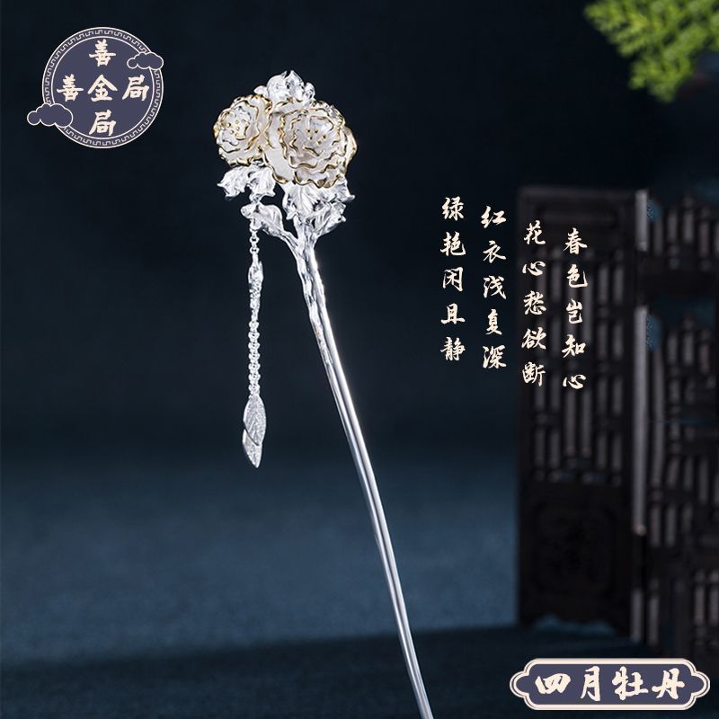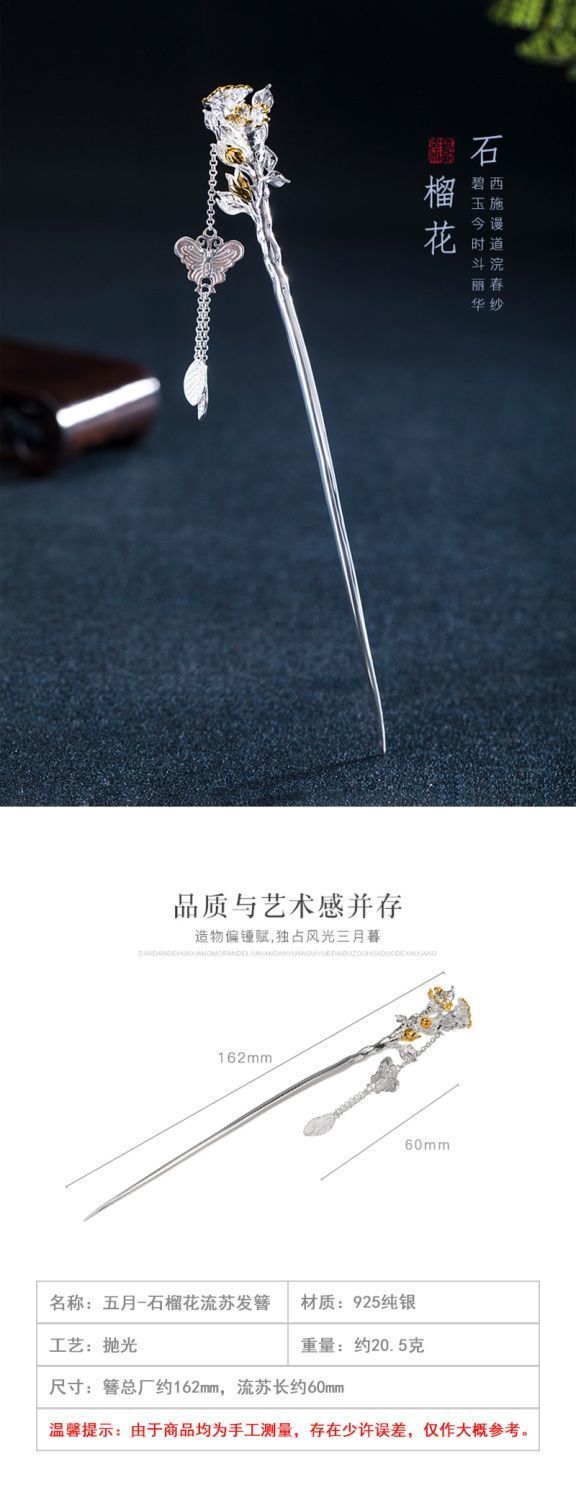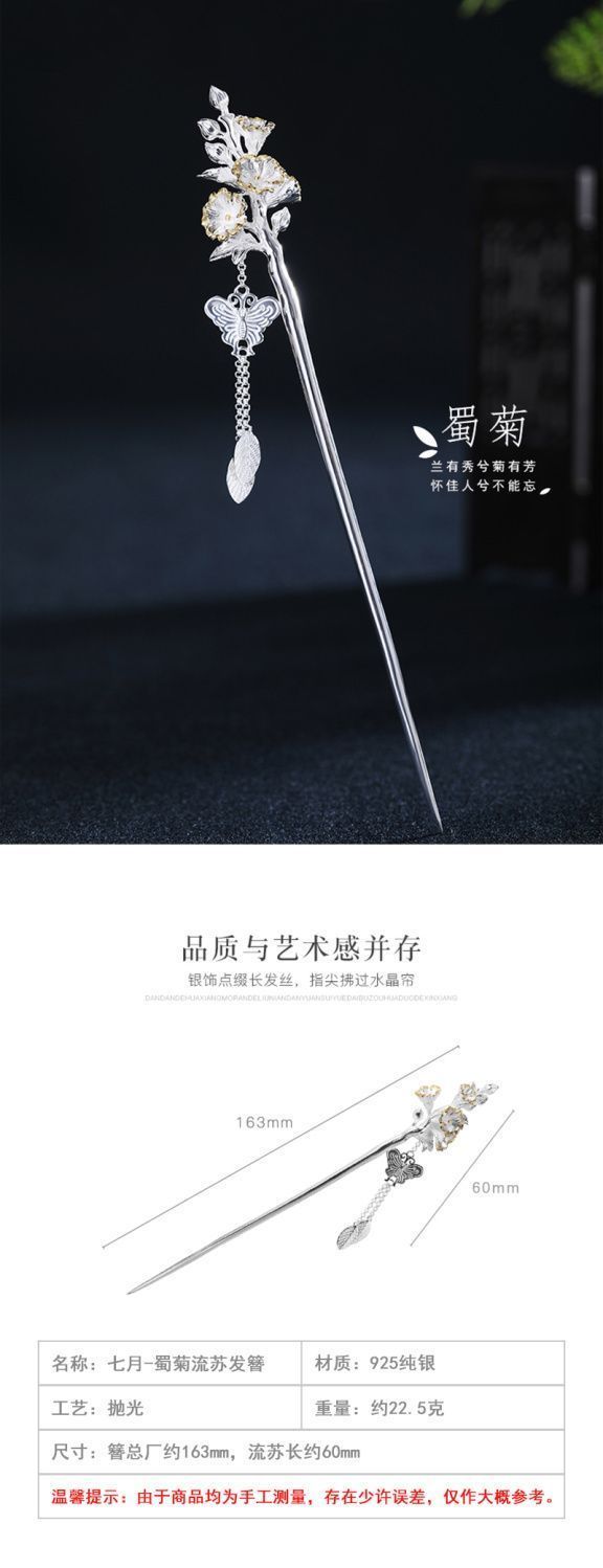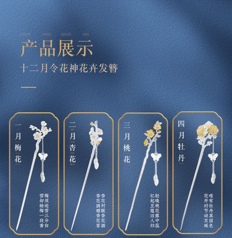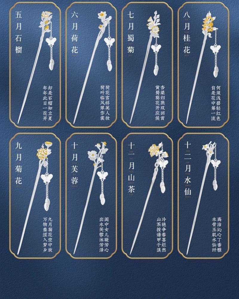 十二花神发簪古风足银999发簪盘发可拆流苏步摇汉服旗袍簪子礼物