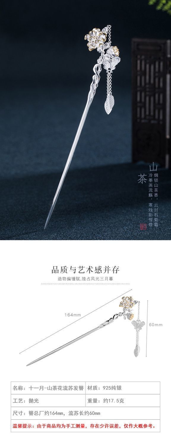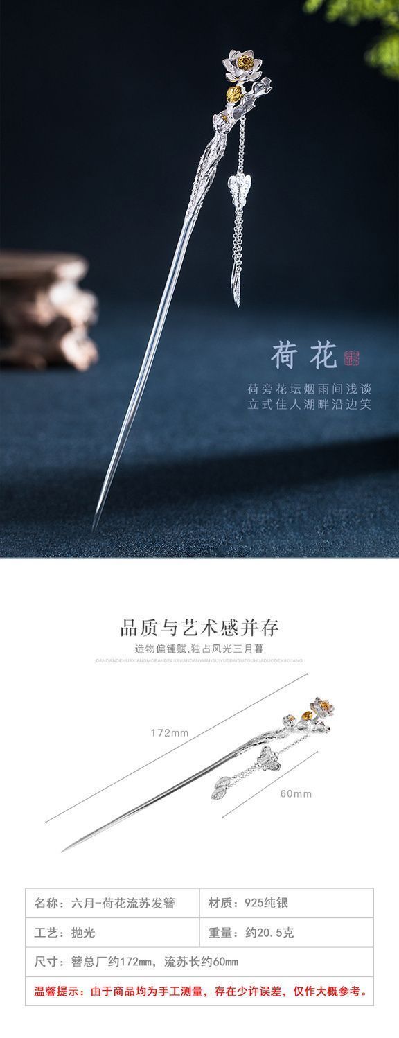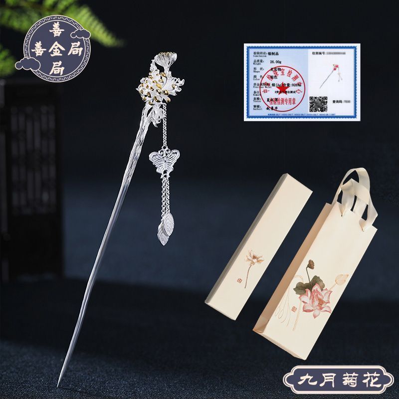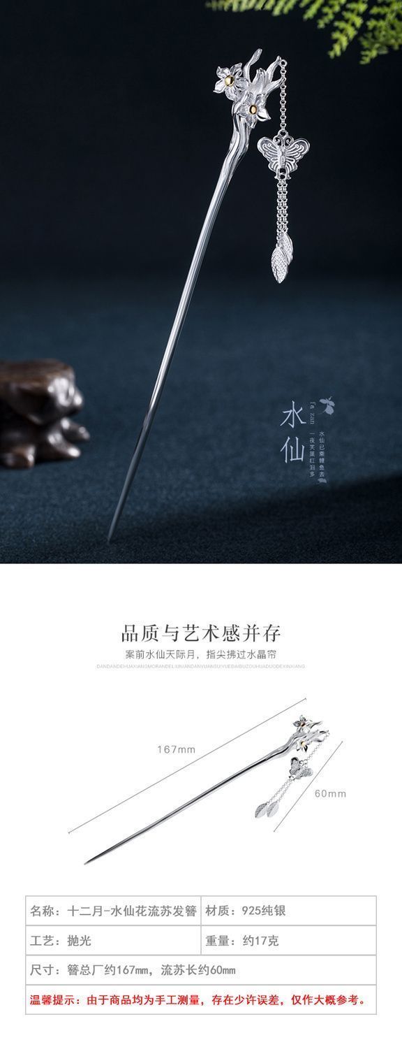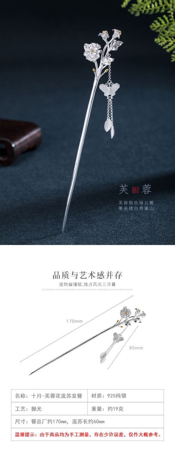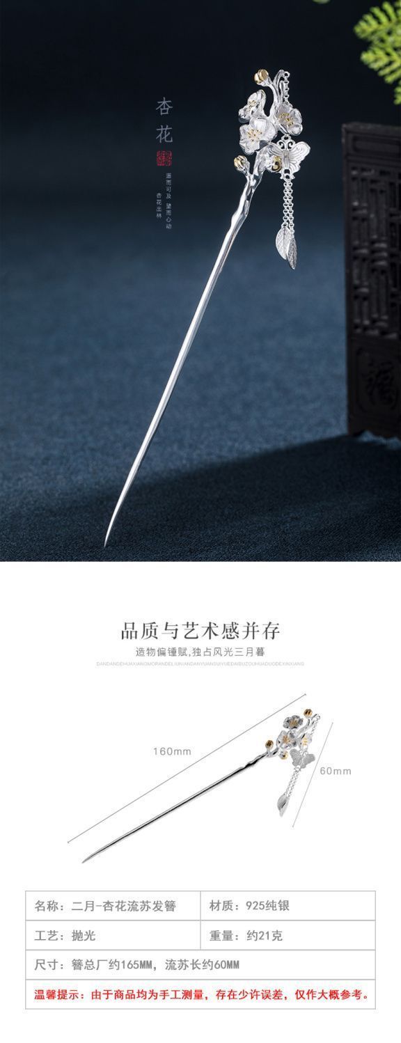 十二花神发簪古风足银999发簪盘发可拆流苏步摇汉服旗袍簪子礼物