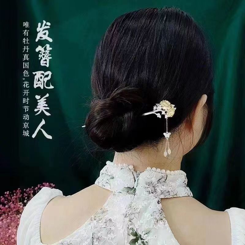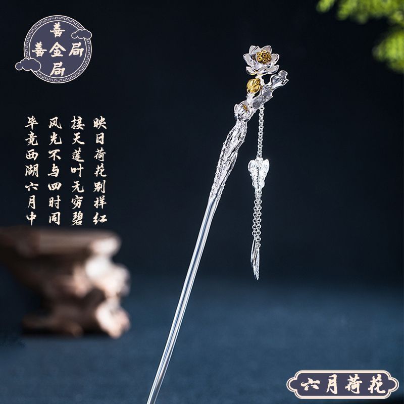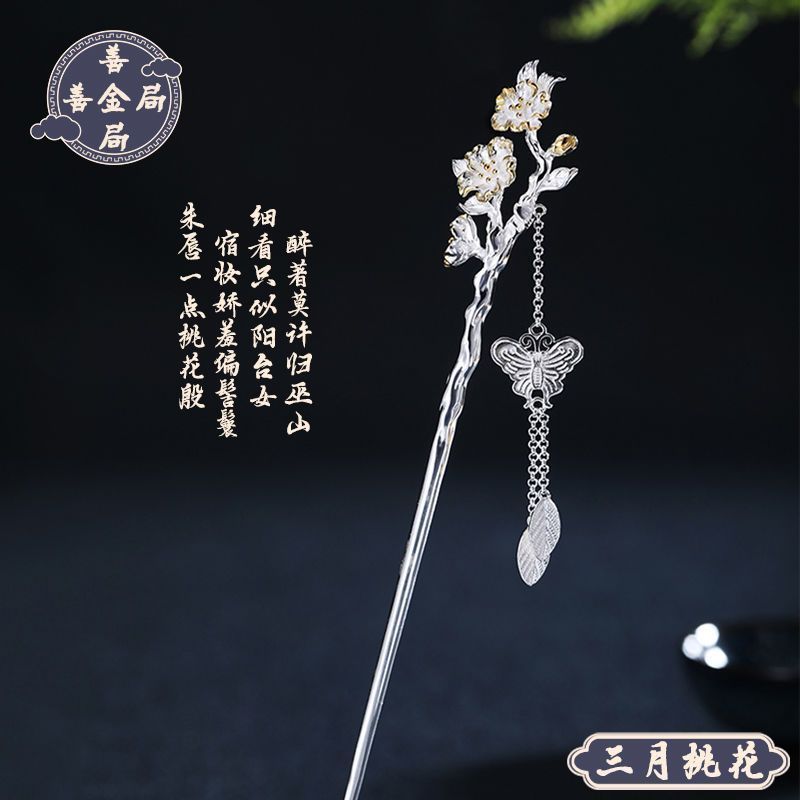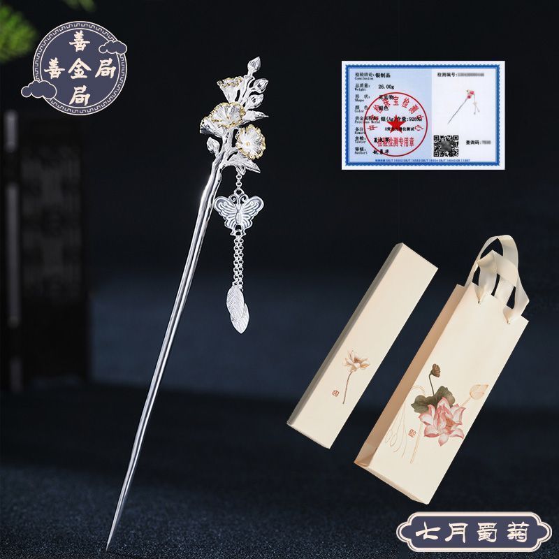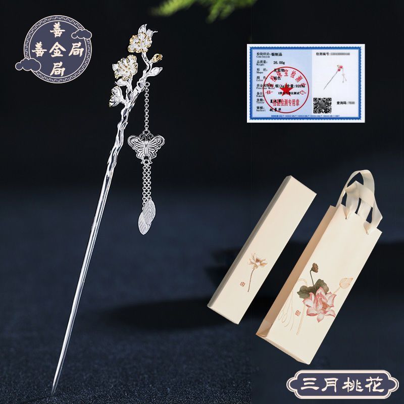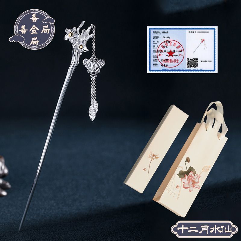 十二花神发簪古风足银999发簪盘发可拆流苏步摇汉服旗袍簪子礼物