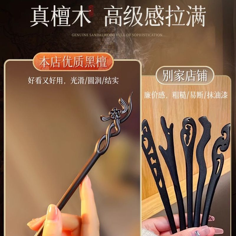 古风黑檀木簪子中式高级发簪木质简约汉服旗袍日常盘发发钗发饰