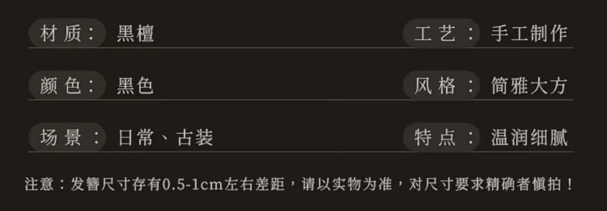 | [plain] ebony hairpin 18cm(【素琯】黑檀发簪18CM) | USD $6.59 | 99999 piece available |