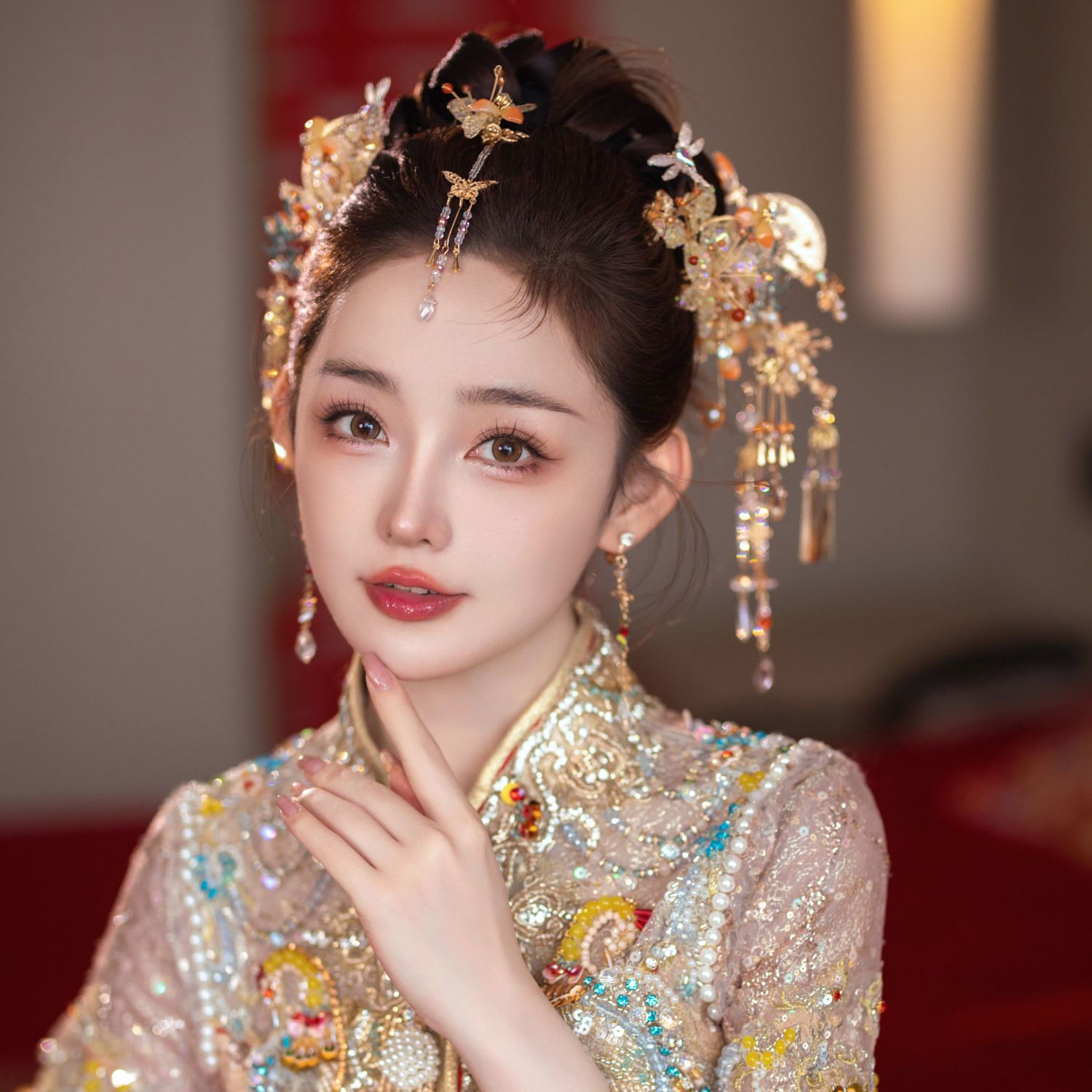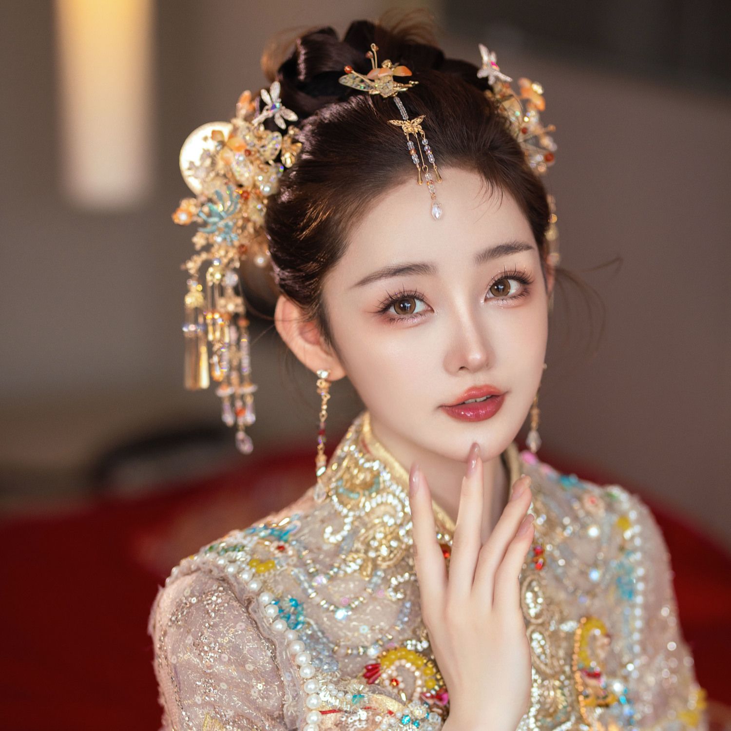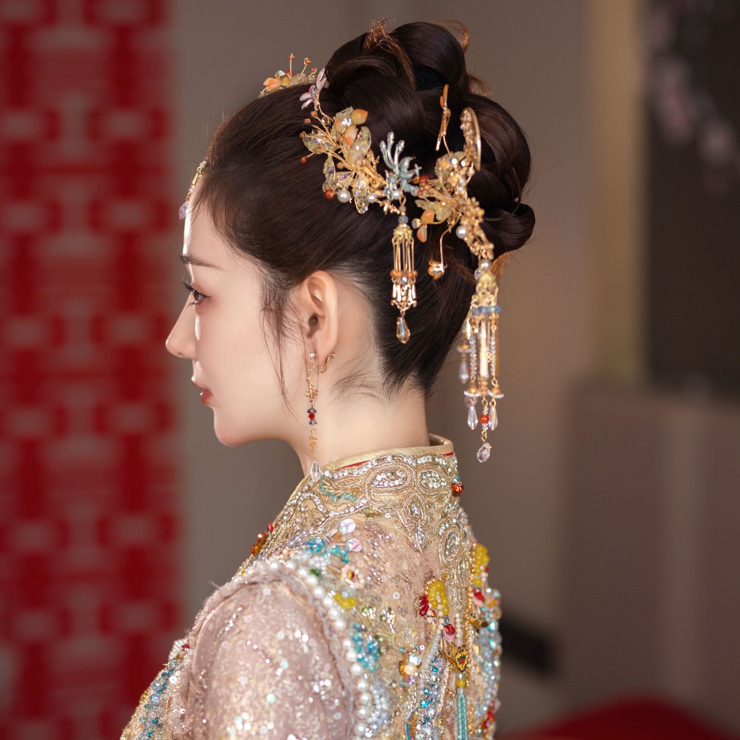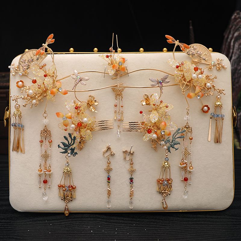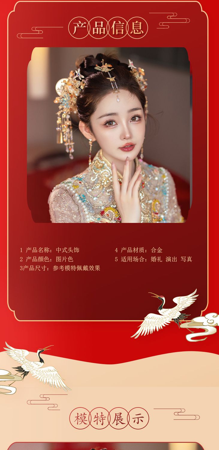 新娘秀禾头饰金色龙凤褂减龄新中式发饰古典婚礼步摇流苏高级配饰