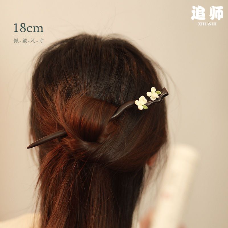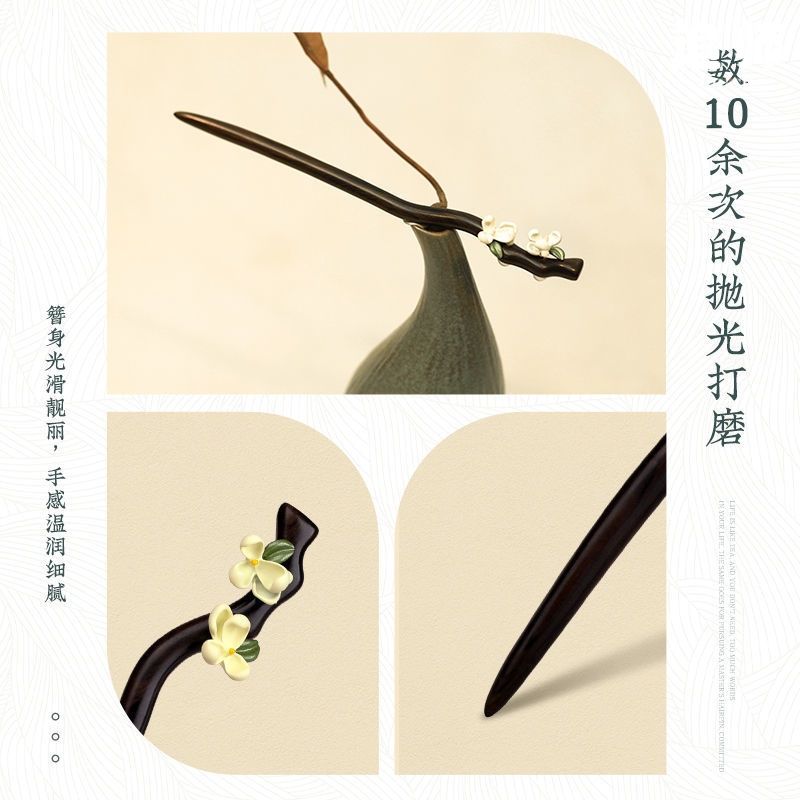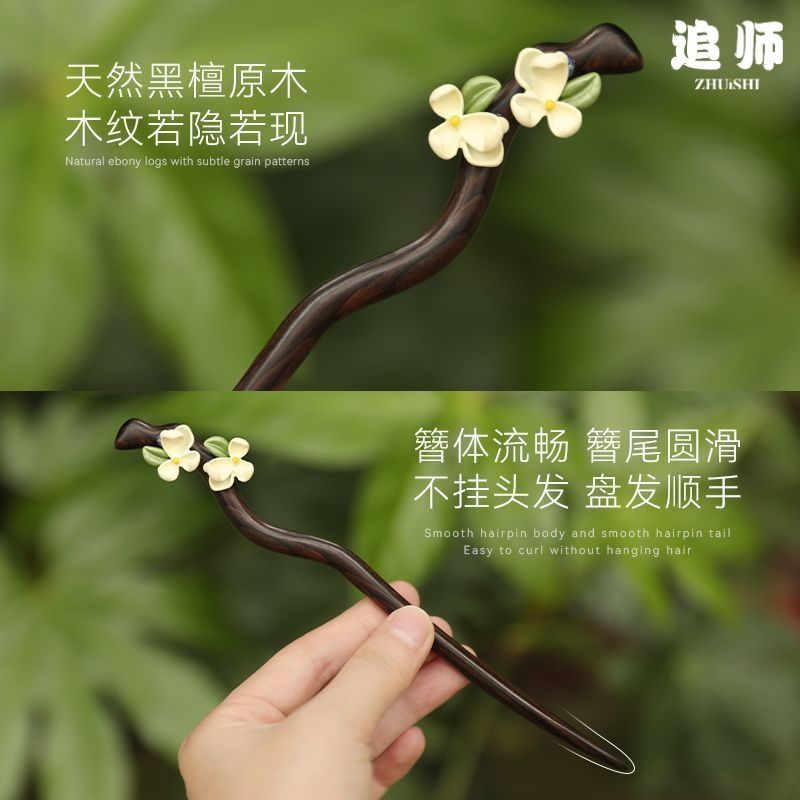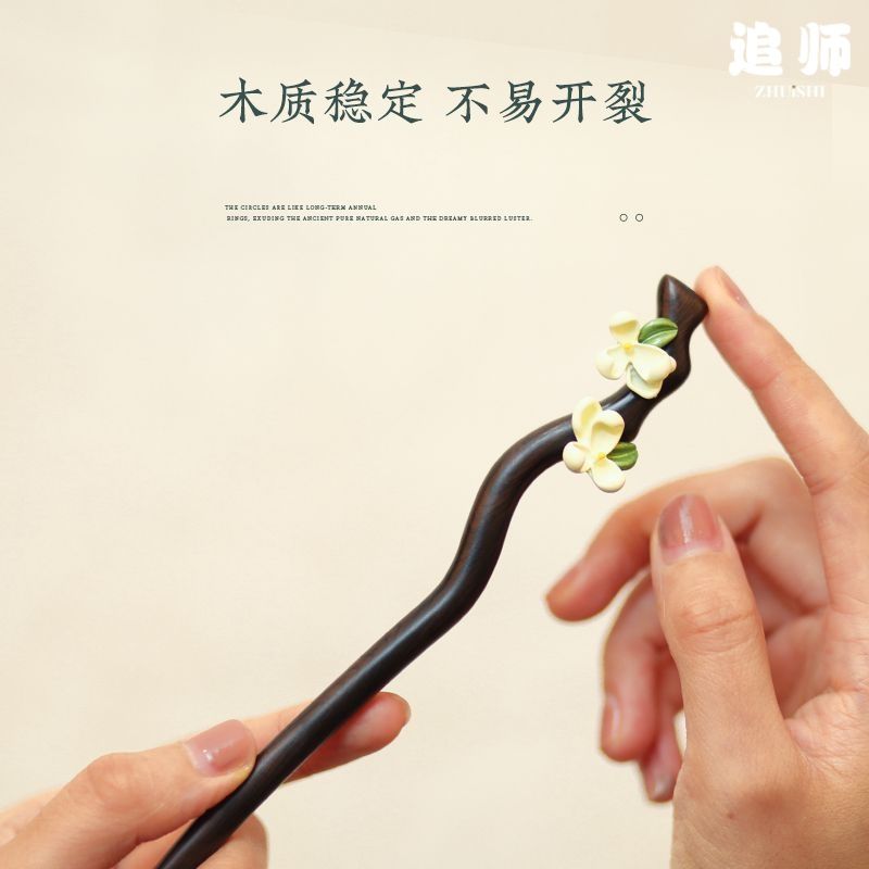 追师小花发簪日常现代设计感手工新中式清冷风黑檀木簪子简约素雅