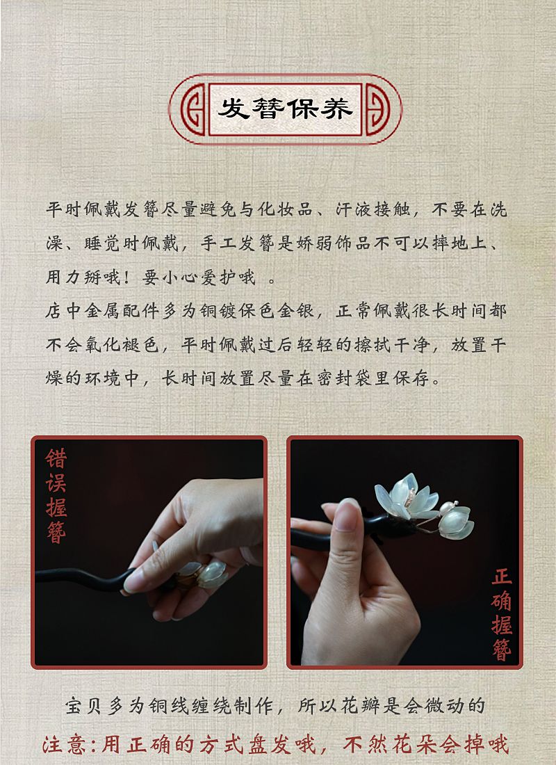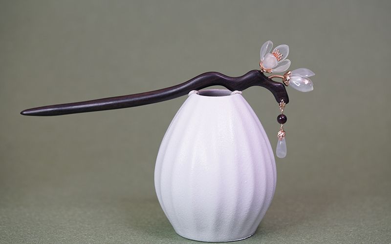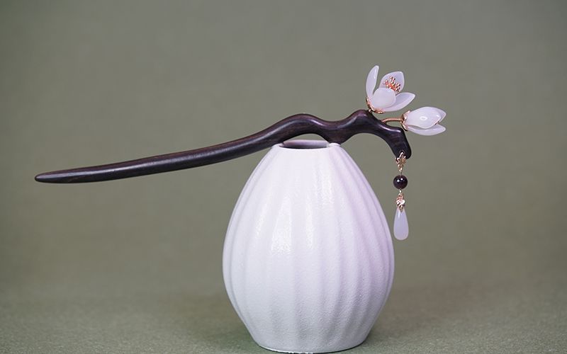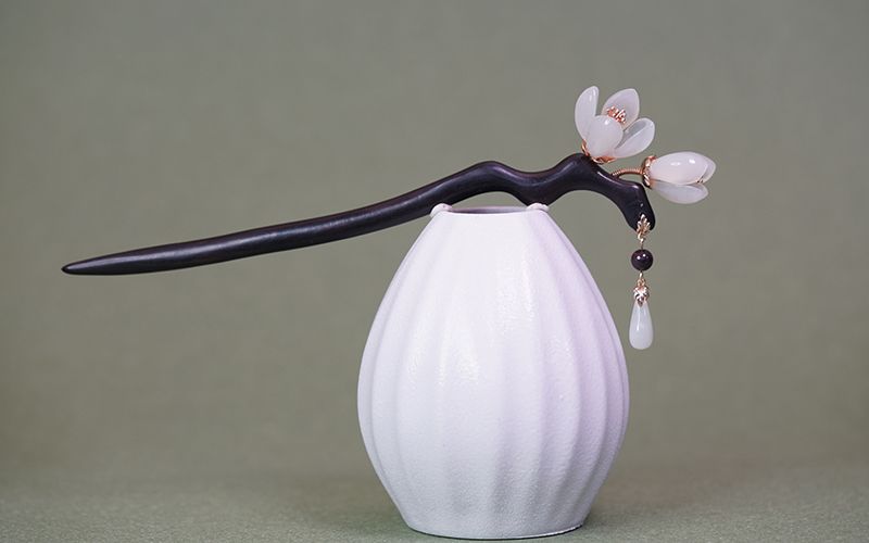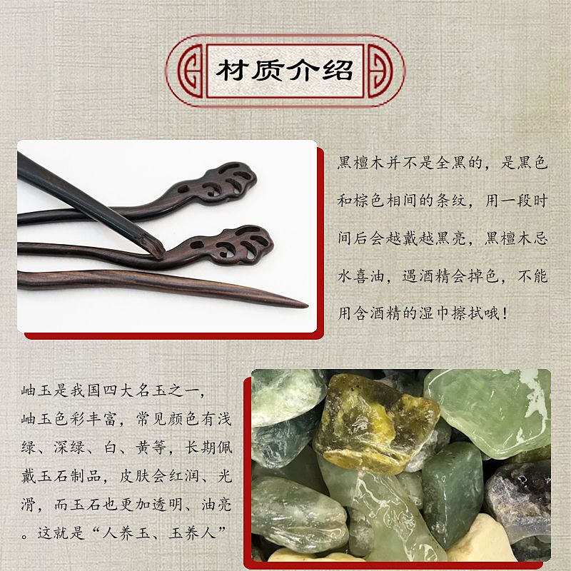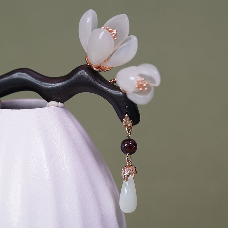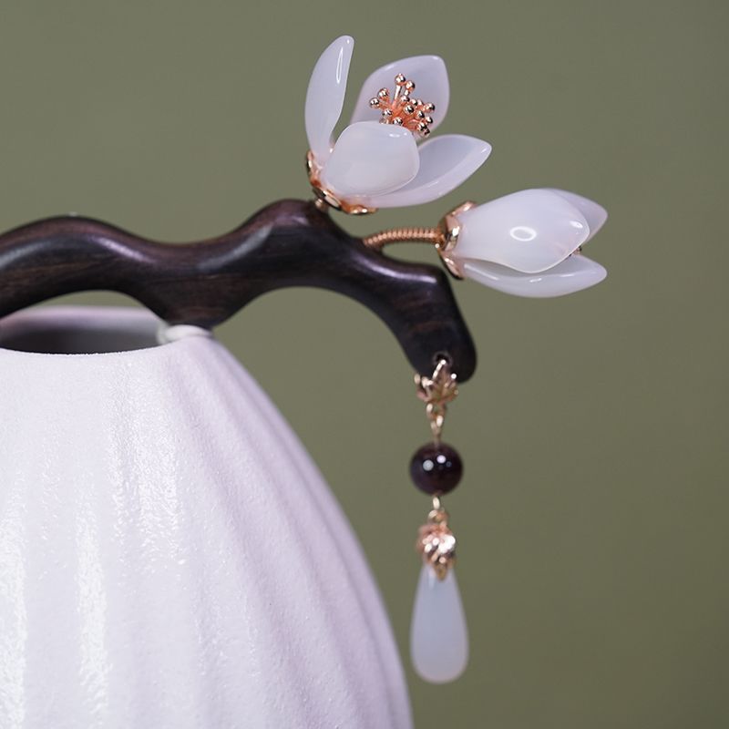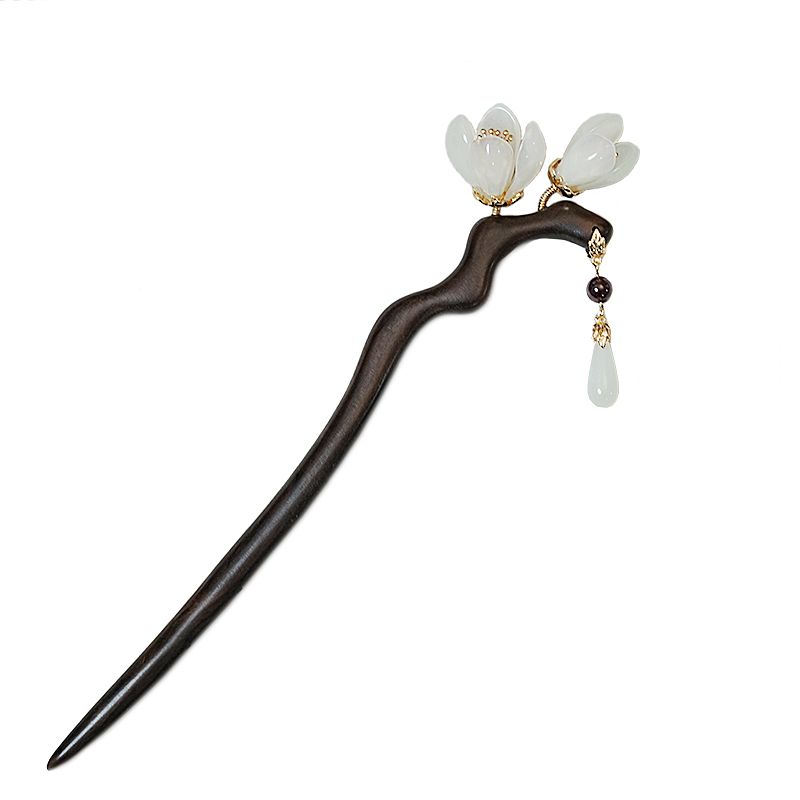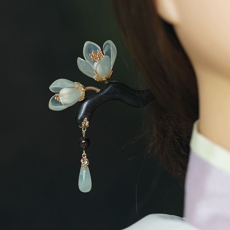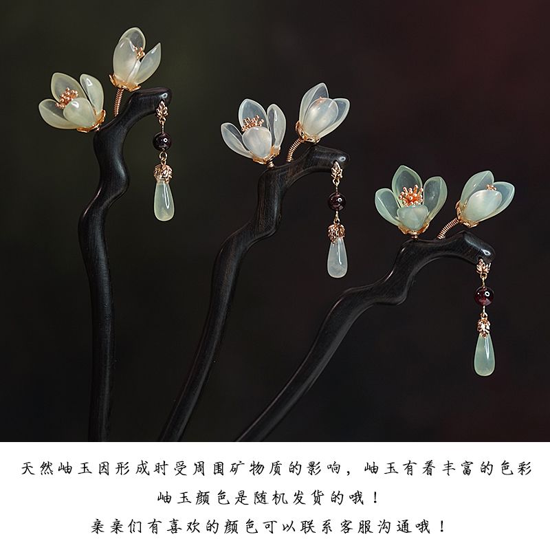 兰花发簪子古风岫玉簪黑檀木簪发钗流苏汉服头饰手工旗袍高级礼盒