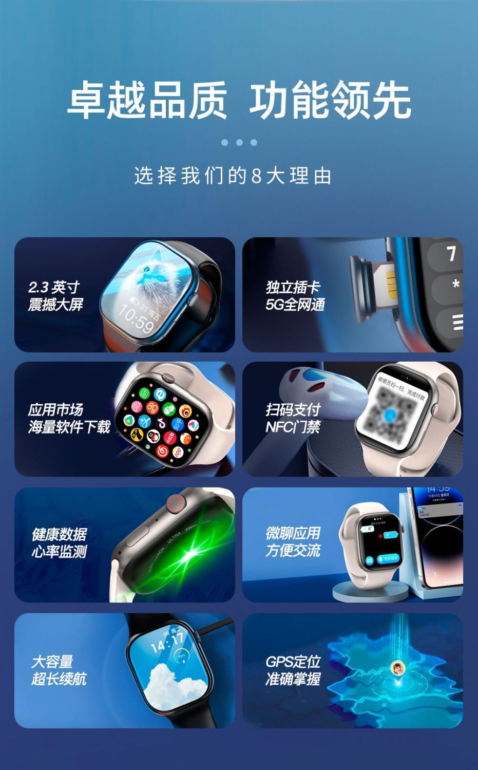 苹果手机适用华强北S9pro顶配版5G智能电话手表可插卡WiFi多功能