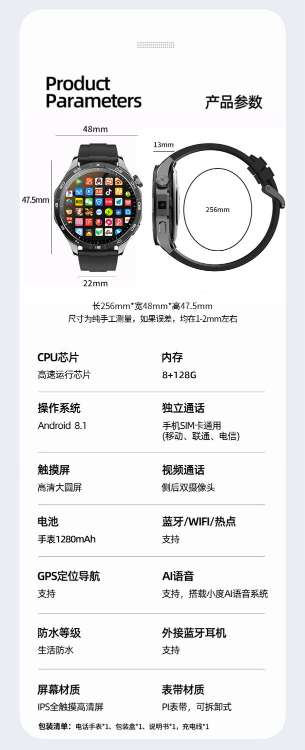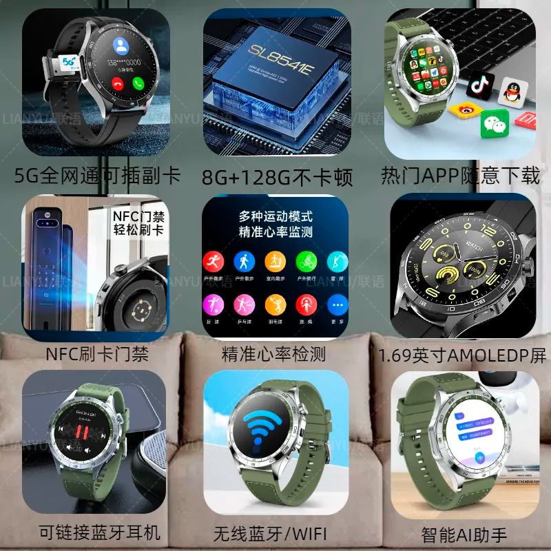 华强北WATCH GT4插卡蜂窝版5G全网通智能手表多功能WIFI下载成人