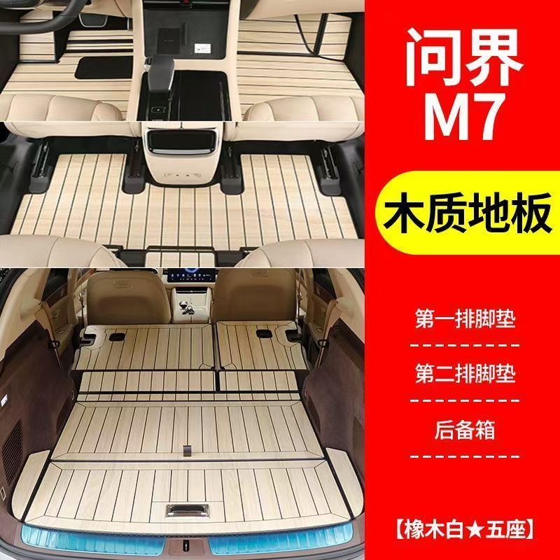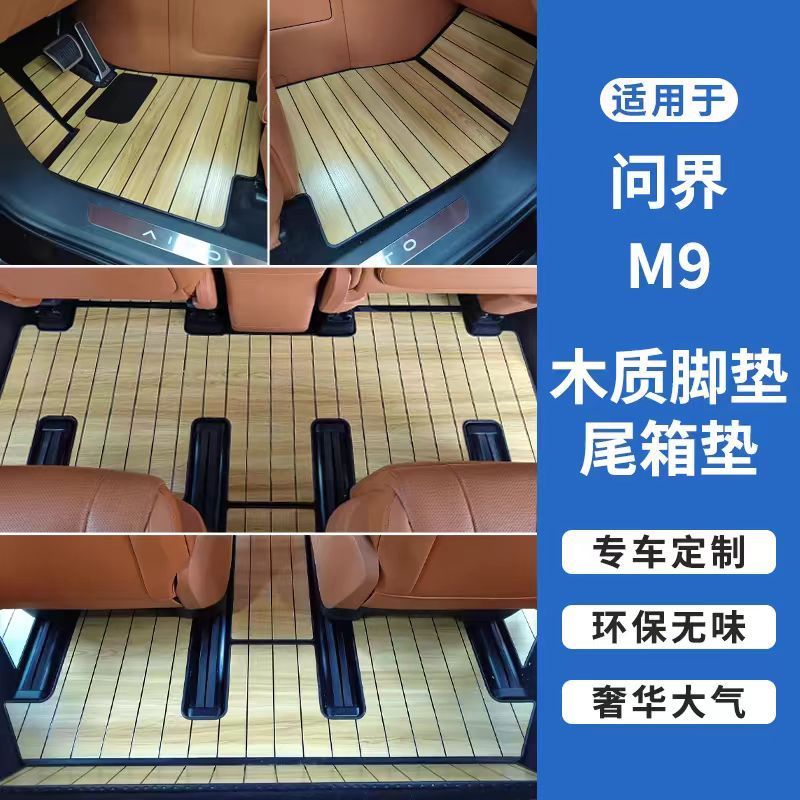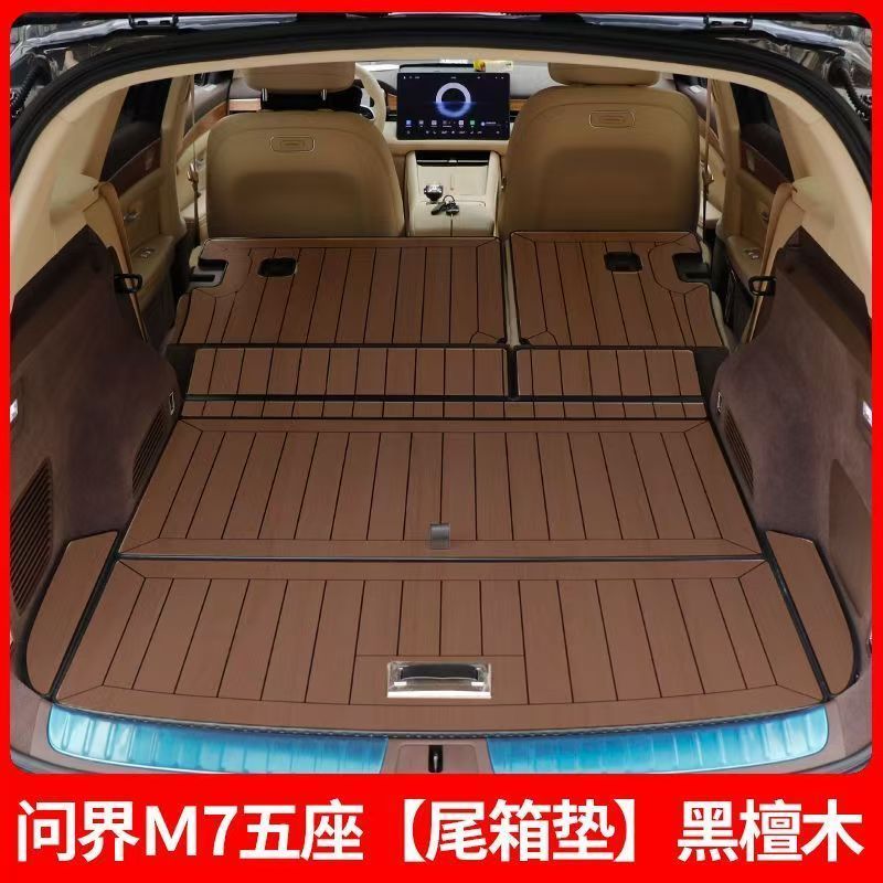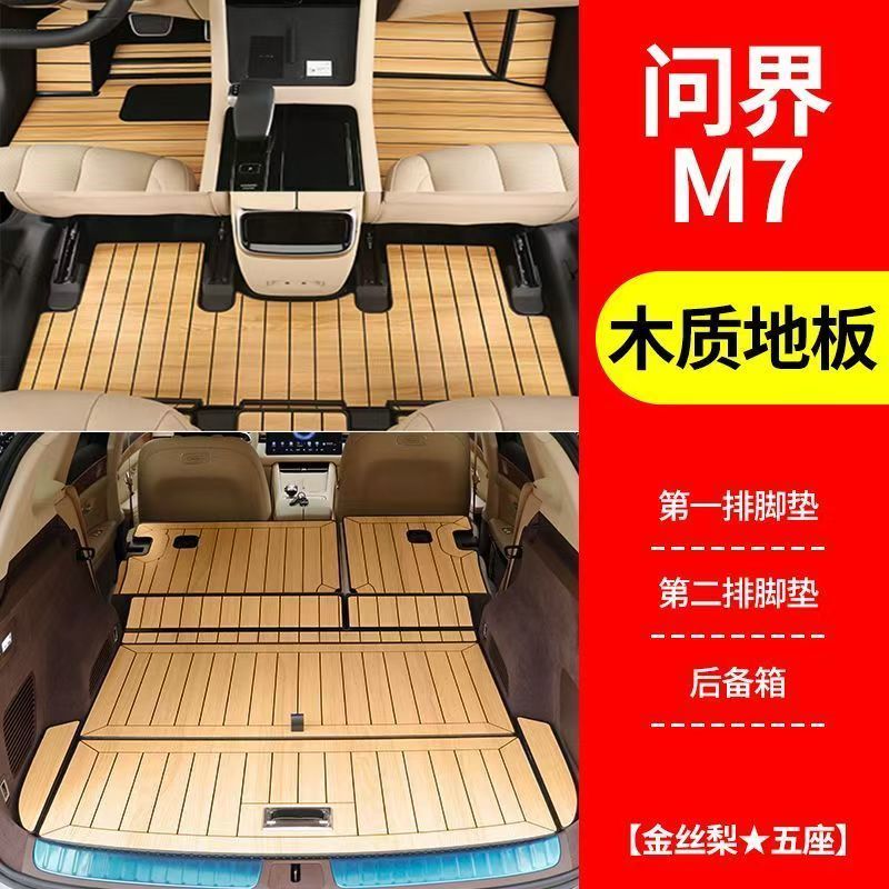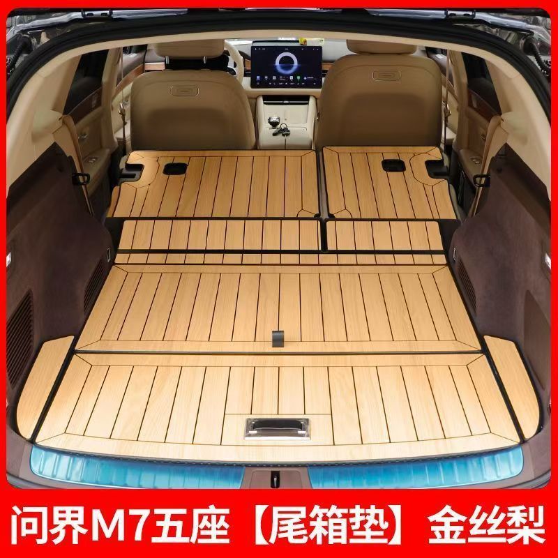 适用于华为问界M5M7M9游艇实木地板脚垫后备箱专车专用汽车改装件