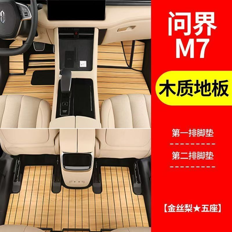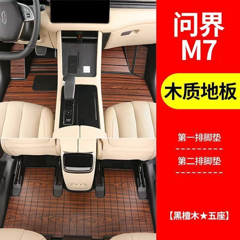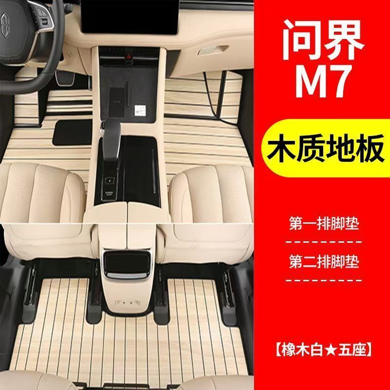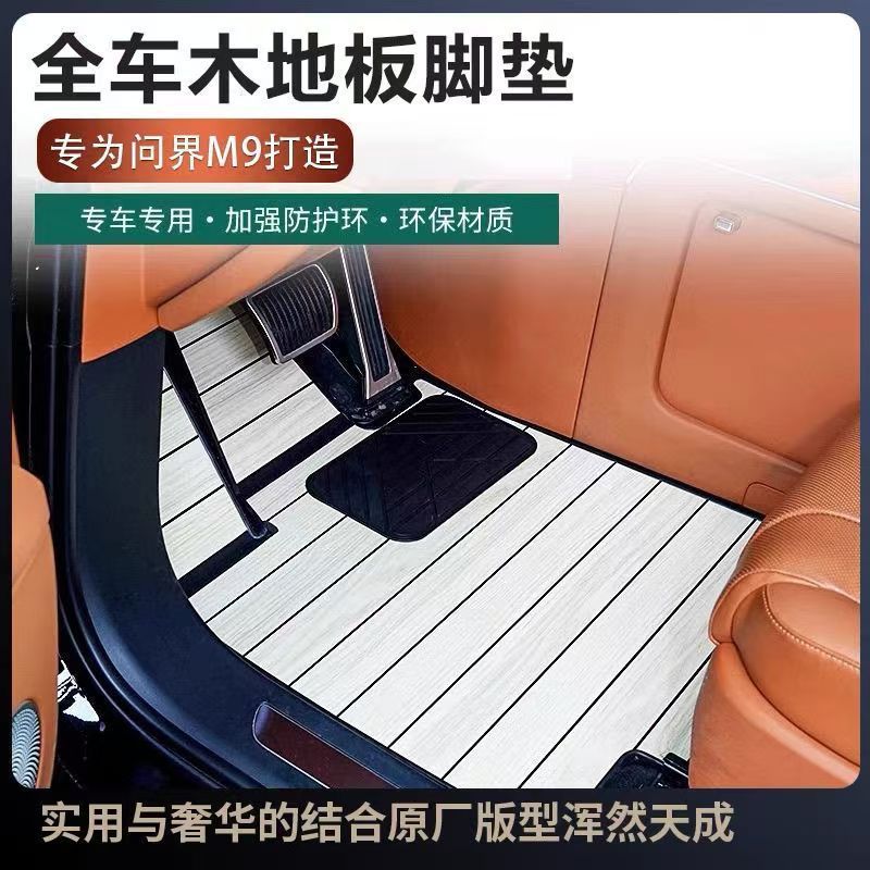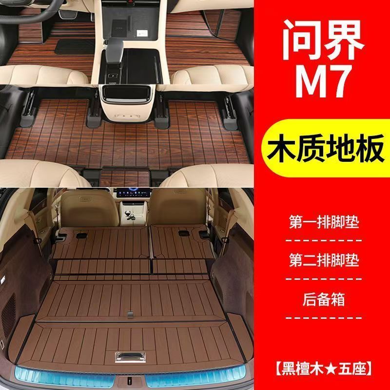 适用于华为问界M5M7M9游艇实木地板脚垫后备箱专车专用汽车改装件