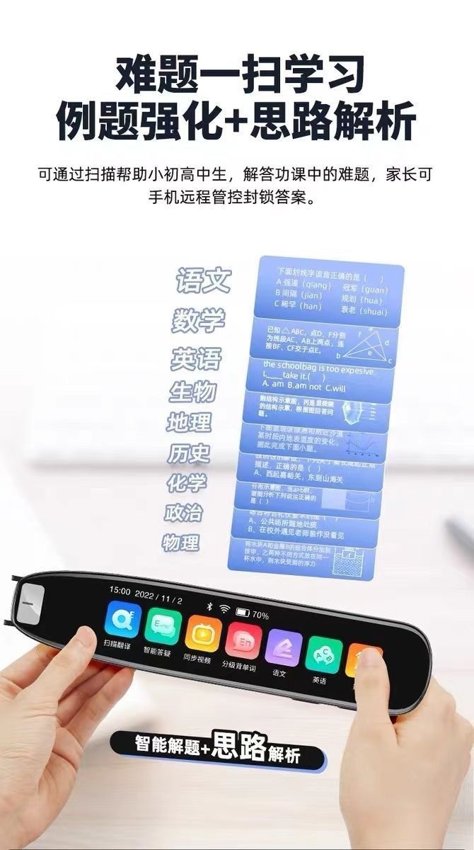 | ship version [white big screen] offline scanning + general practice learning(麒舰版【白色大屏幕】离线扫描+全科学习) | USD $37.71 | 99999 piece available |