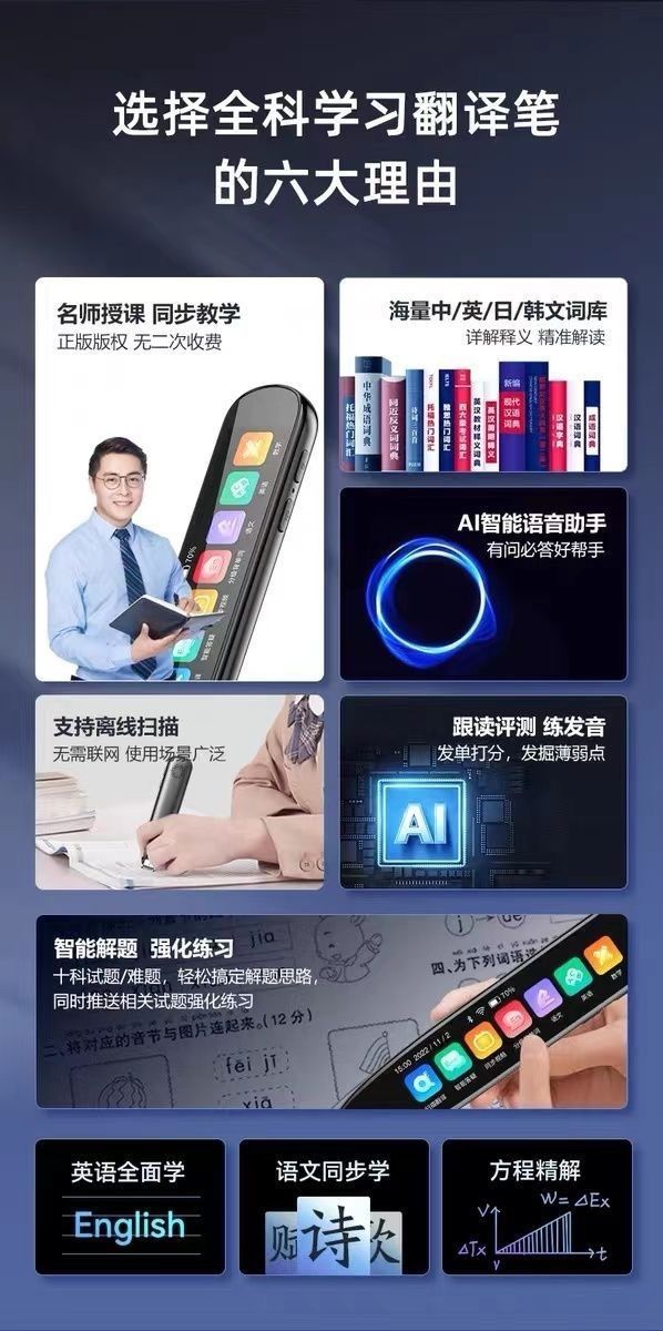 | standard version [black] offline scanning + general practice learning(标配版【黑色】离线扫描+全科学习) | USD $36.42 | 99999 piece available |