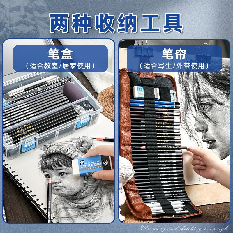 马利素描工具套装全套铅笔炭笔初学者美术生专用铅笔套装绘画工具