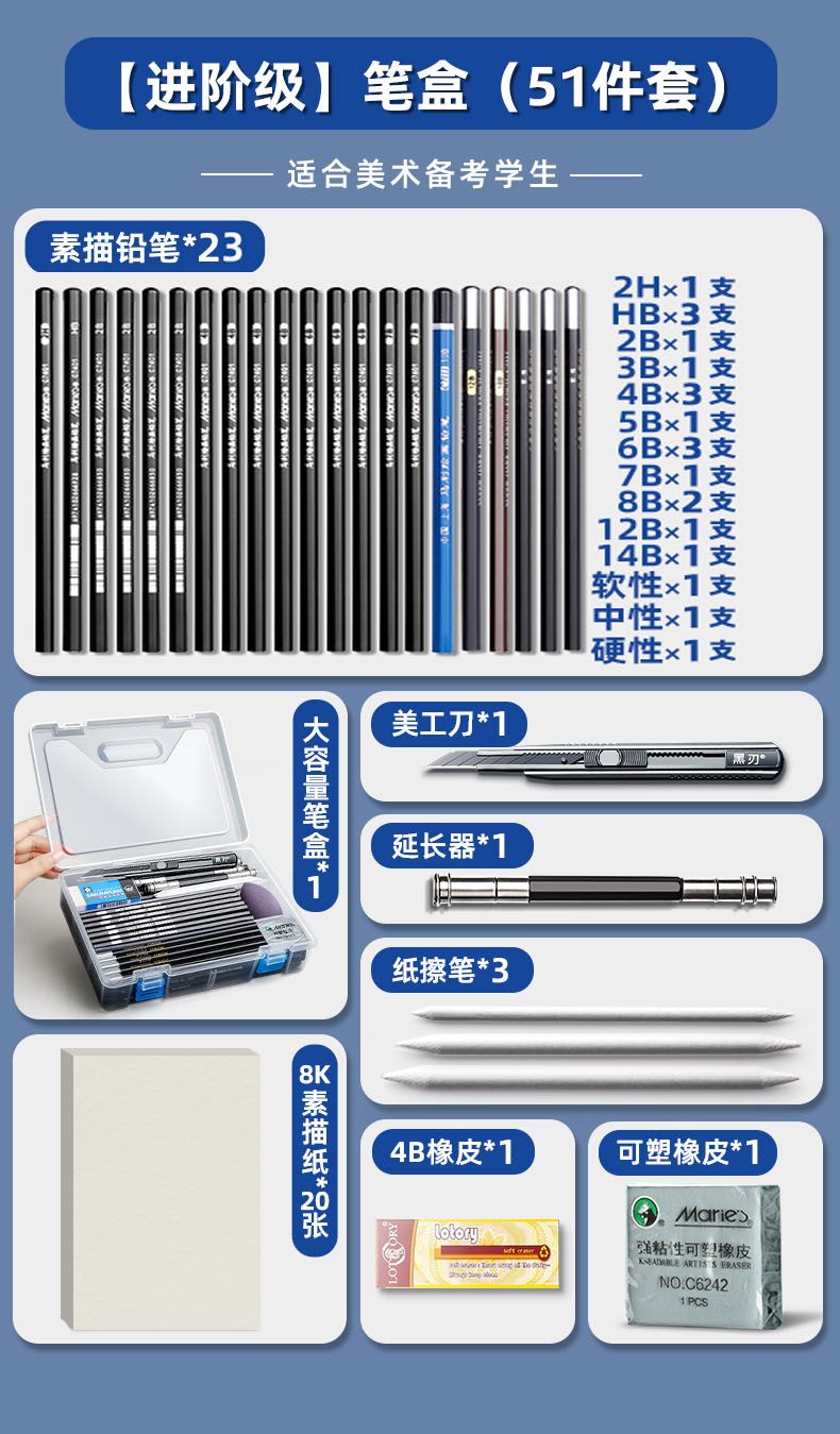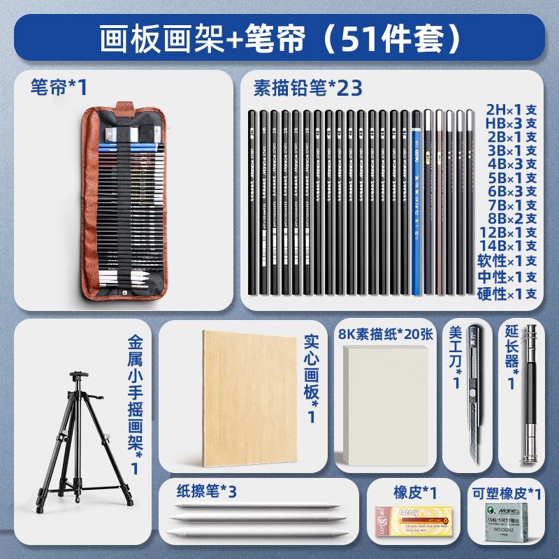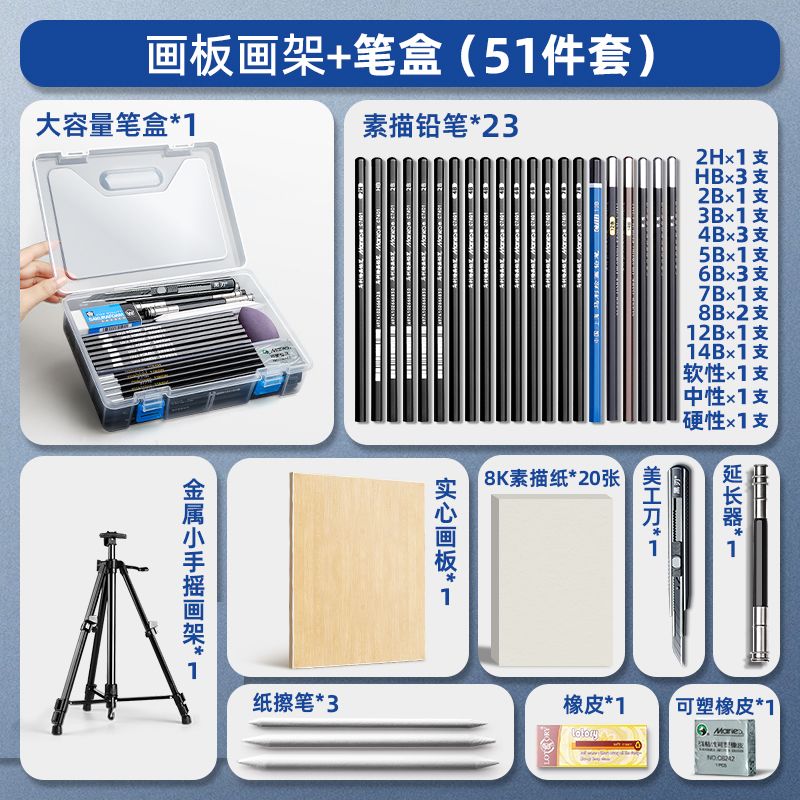 | sketch set [artboard easel + pencil case models/51 pieces]](素描套装【画板画架+笔盒款/51件】) | USD $18.38 | 99999 piece available |