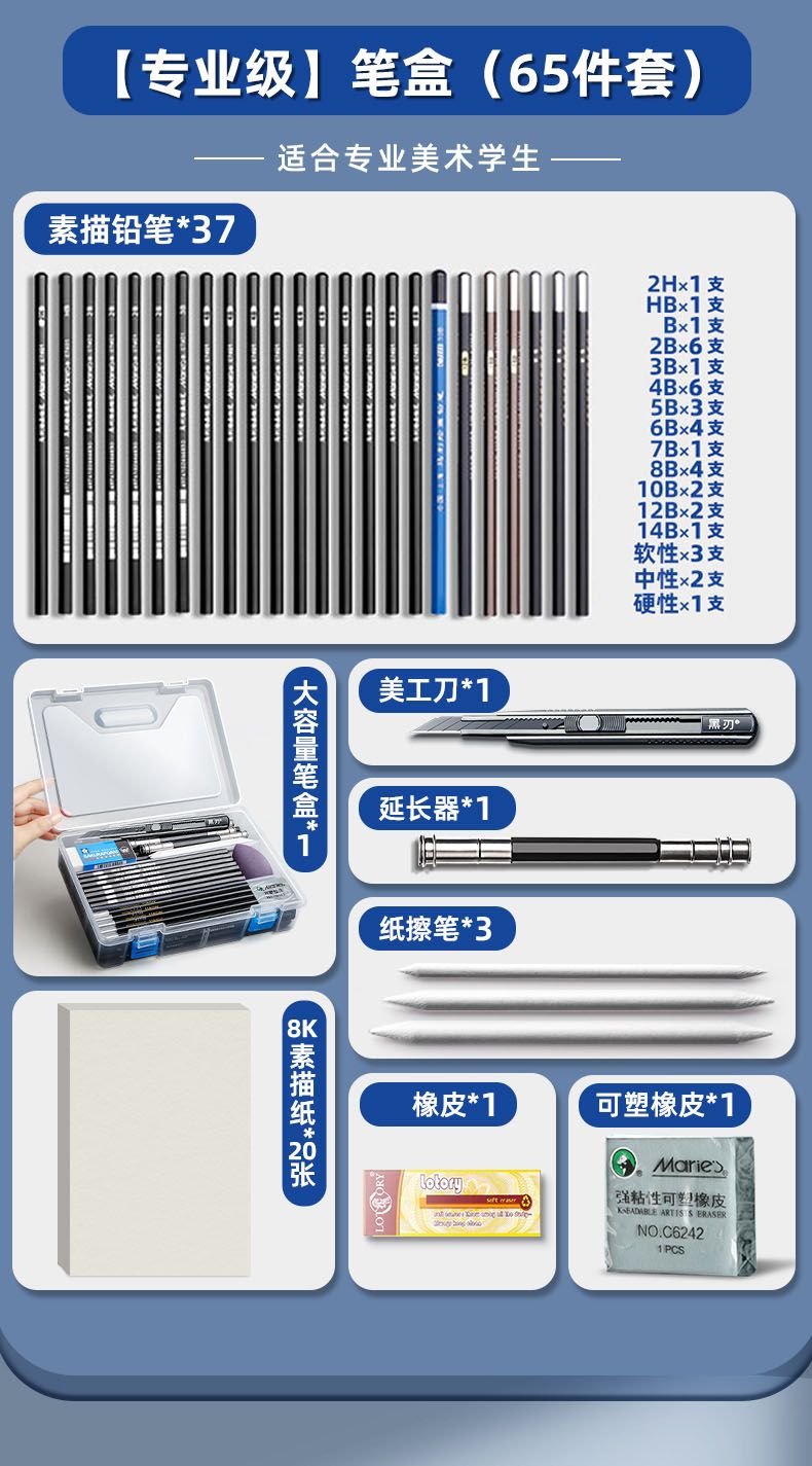 | [professional level] pencil case models/65 pieces suit + pencil shapper(【专业级】笔盒款/65件套装+削笔器) | USD $18.64 | 99999 piece available |