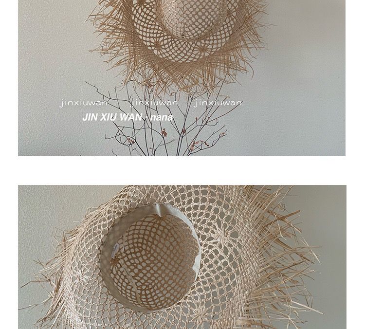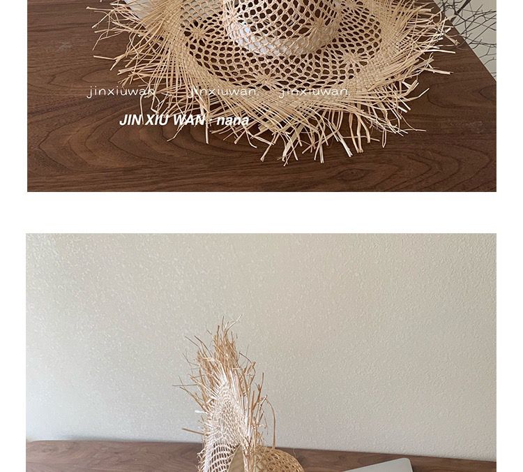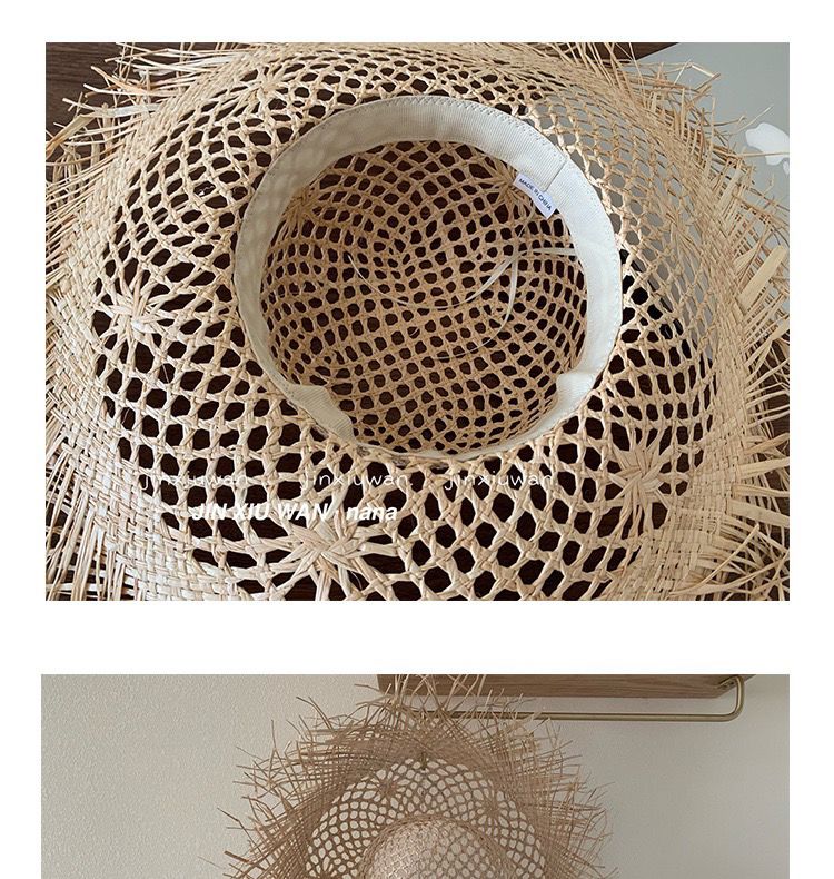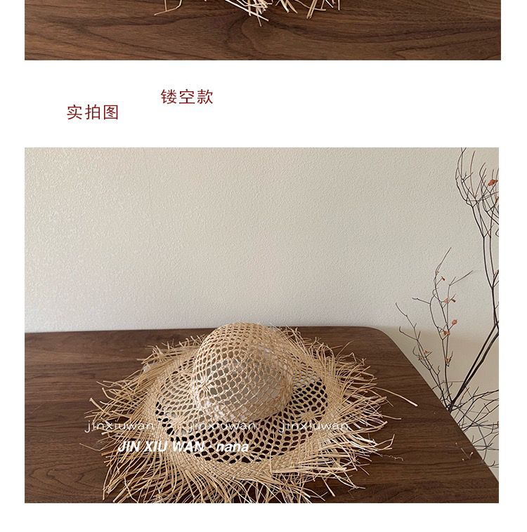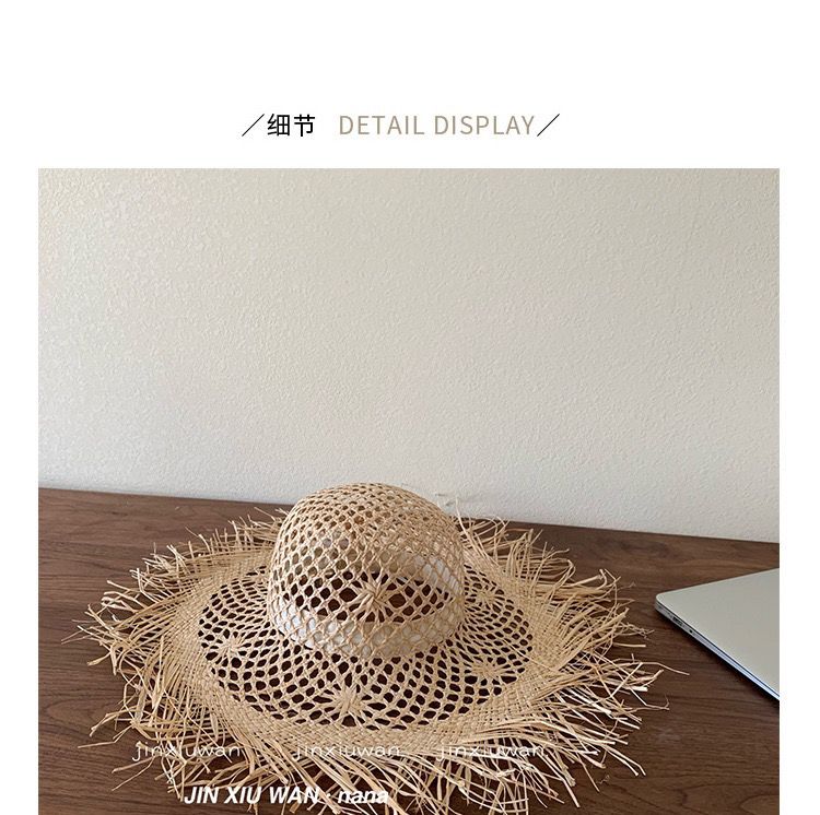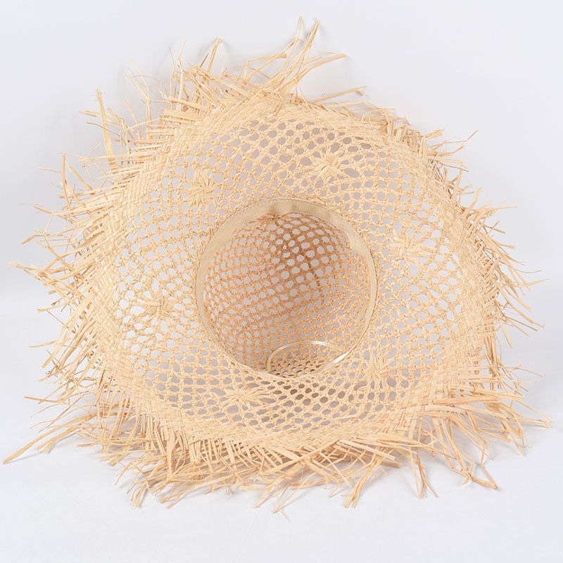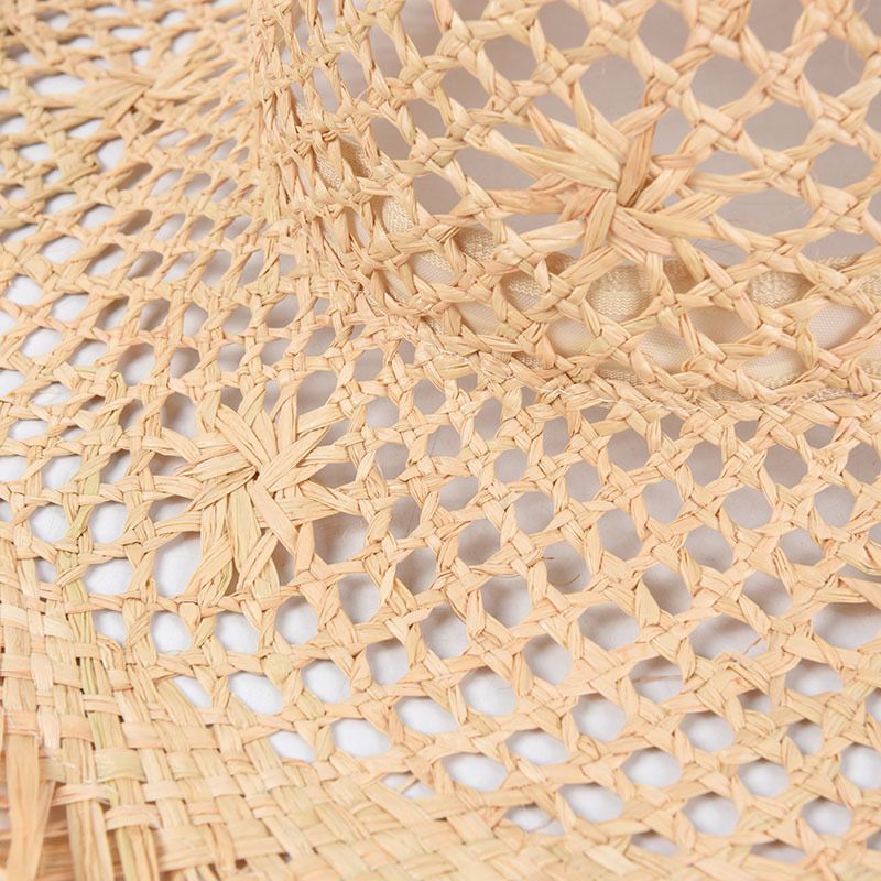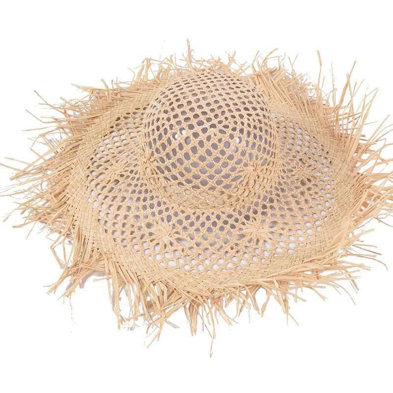 海边度假沙滩镂空夏天拉菲草帽遮阳帽檐防晒毛边出游帽子