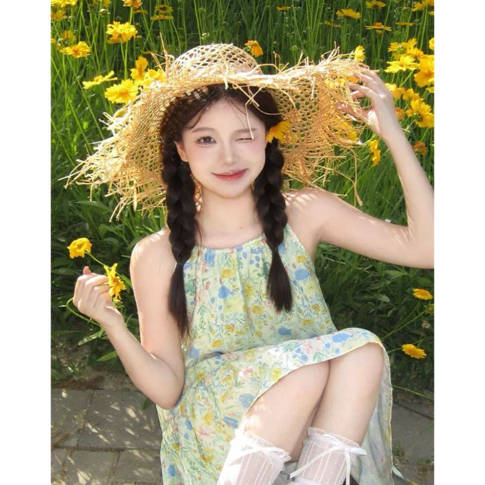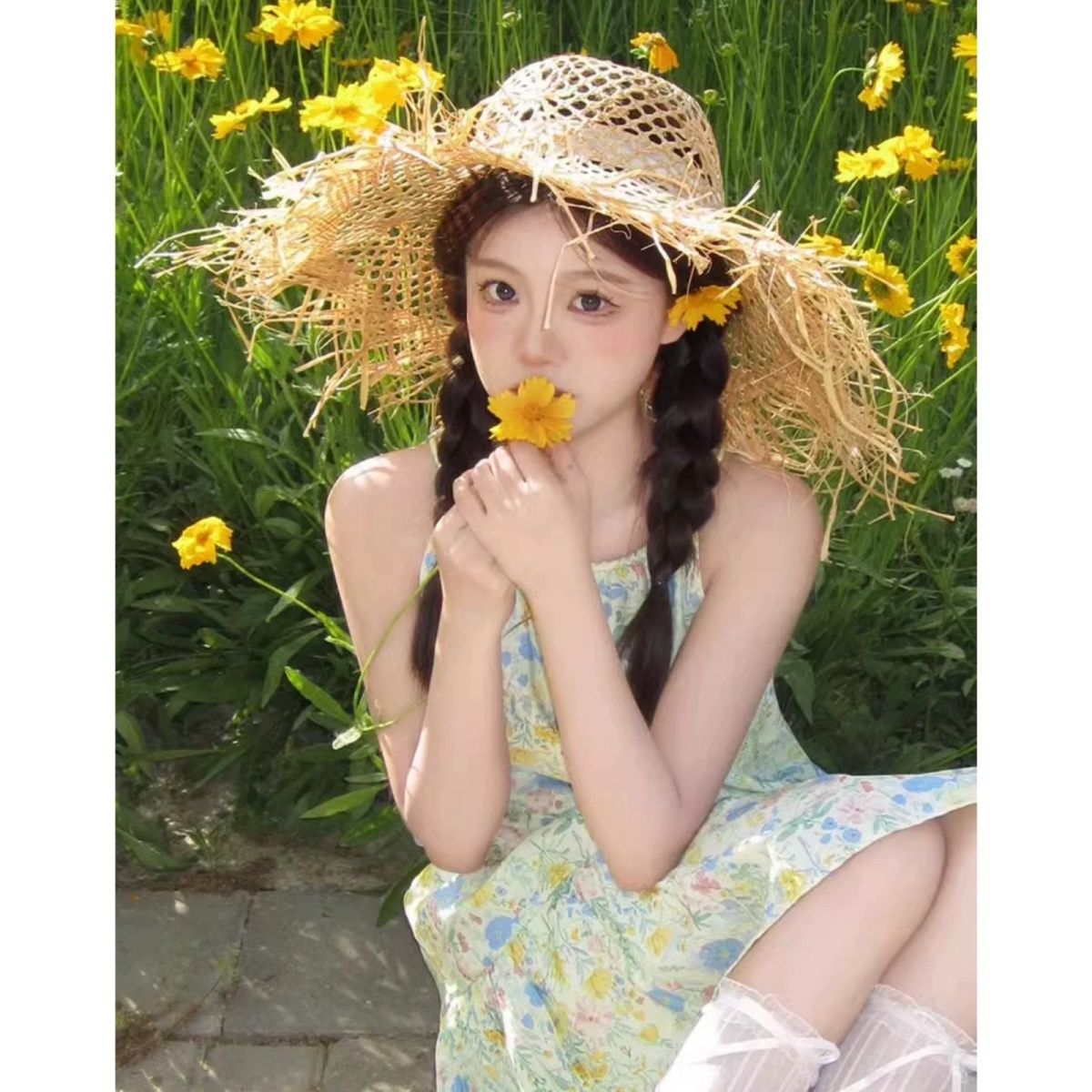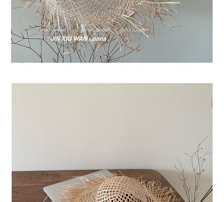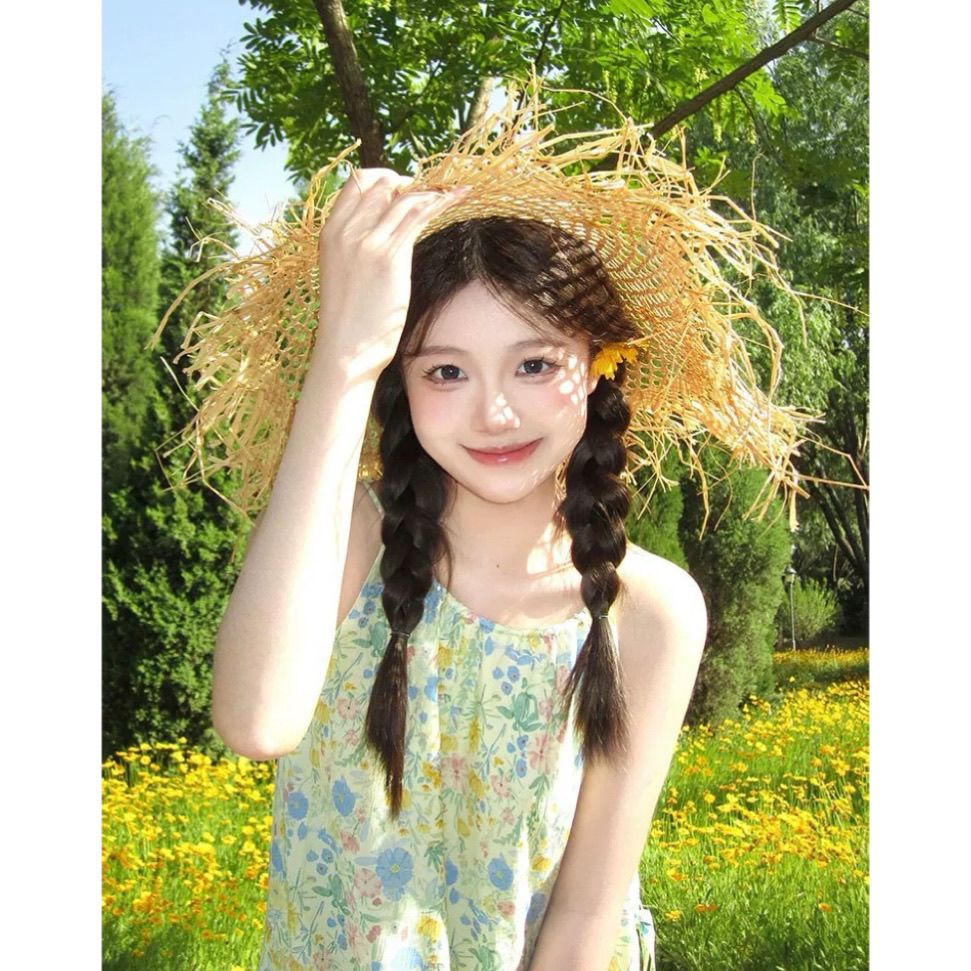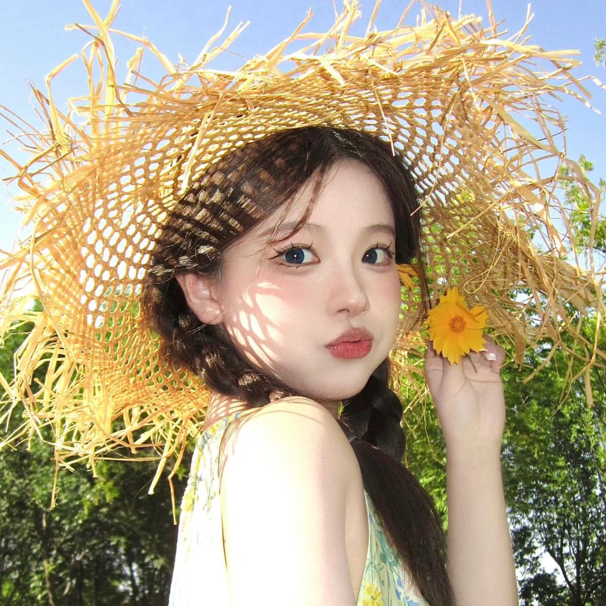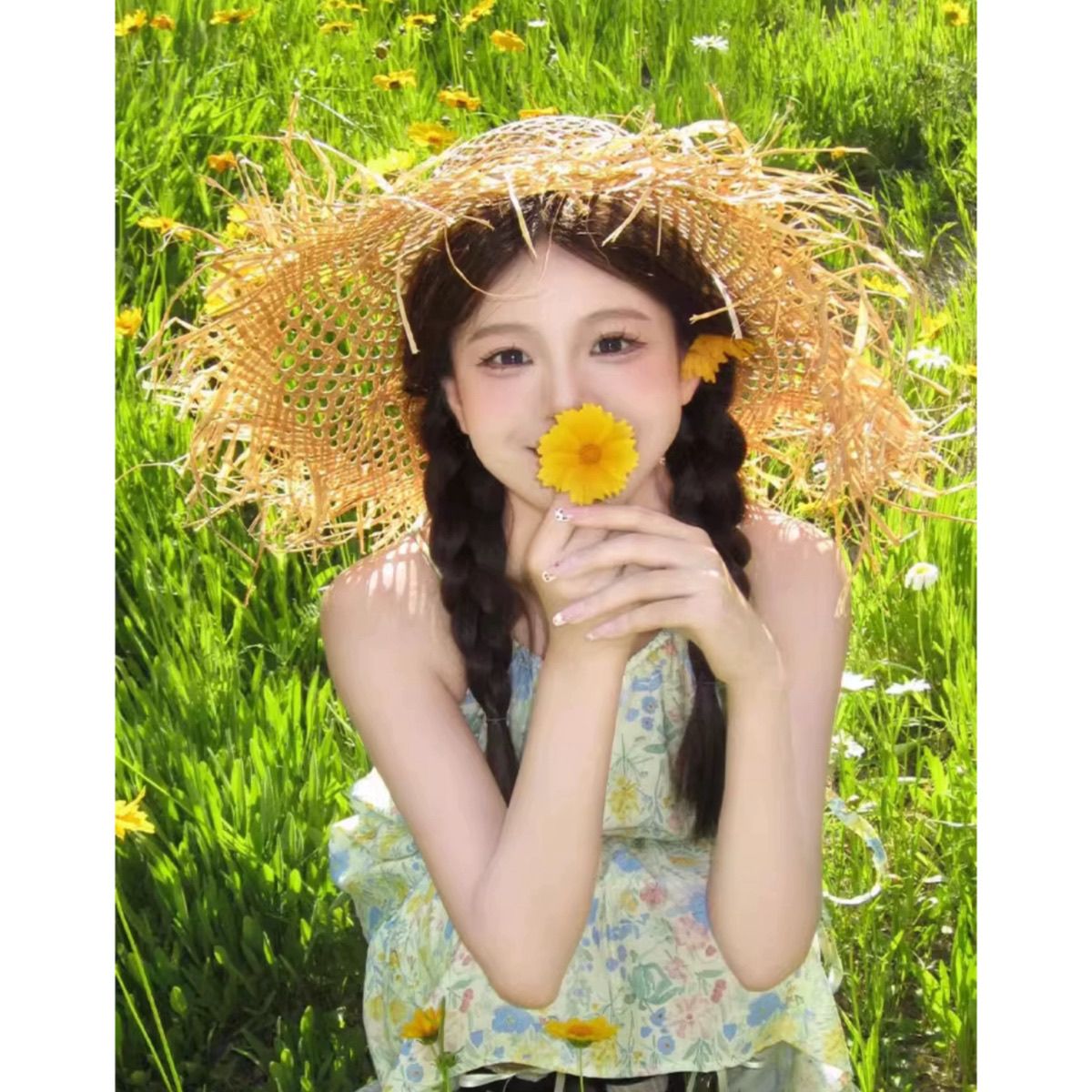 海边度假沙滩镂空夏天拉菲草帽遮阳帽檐防晒毛边出游帽子