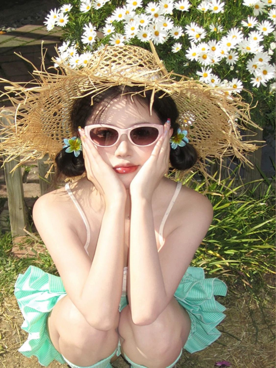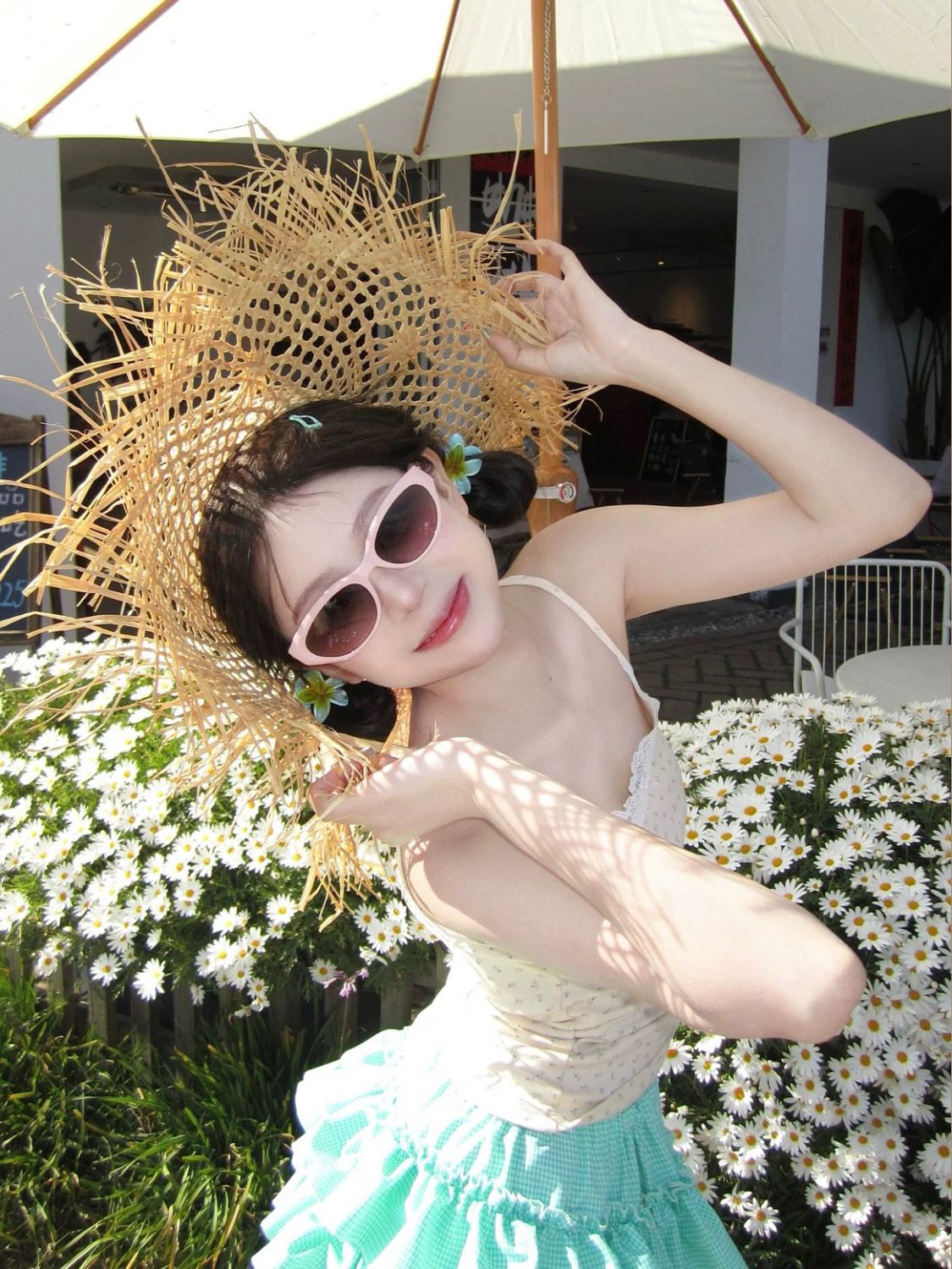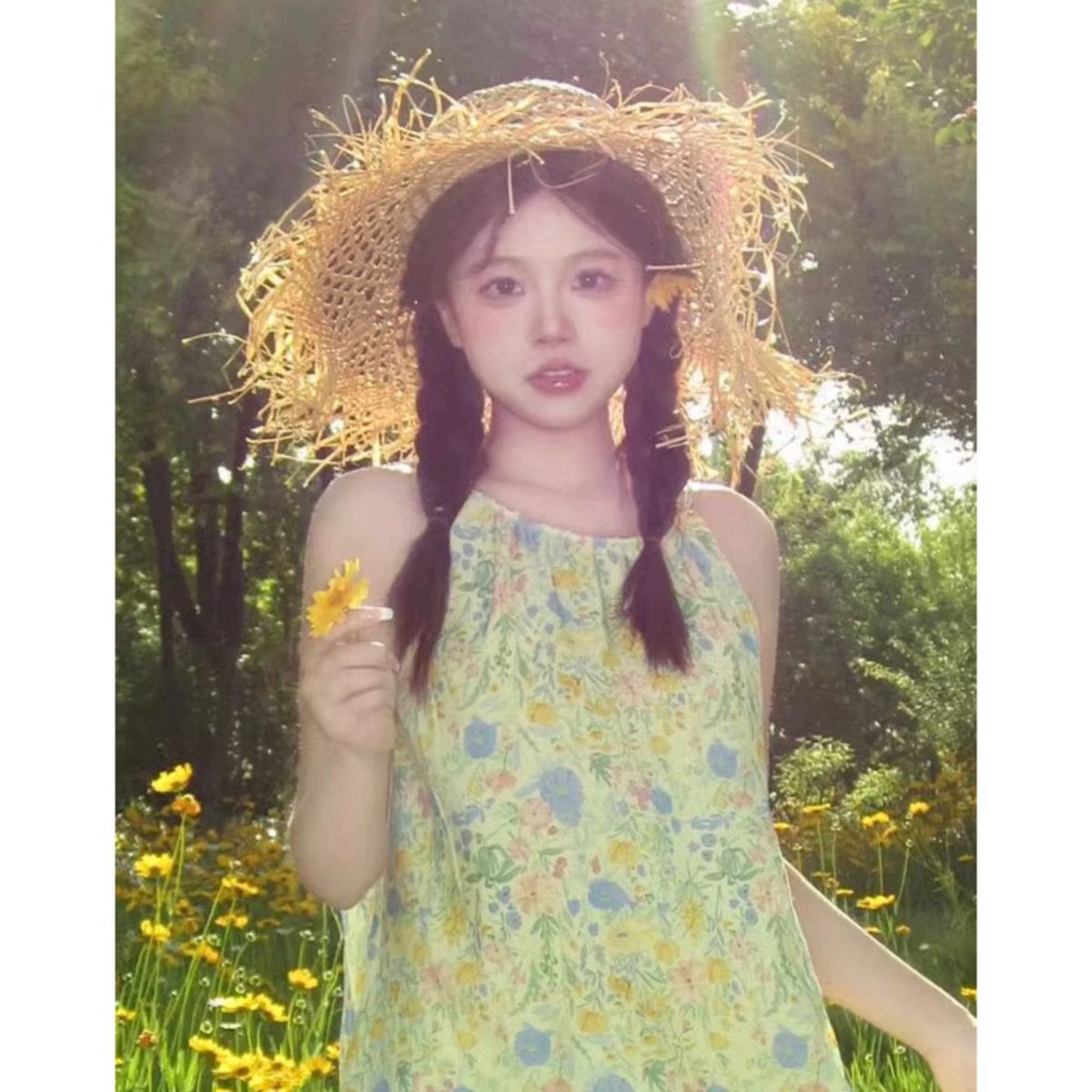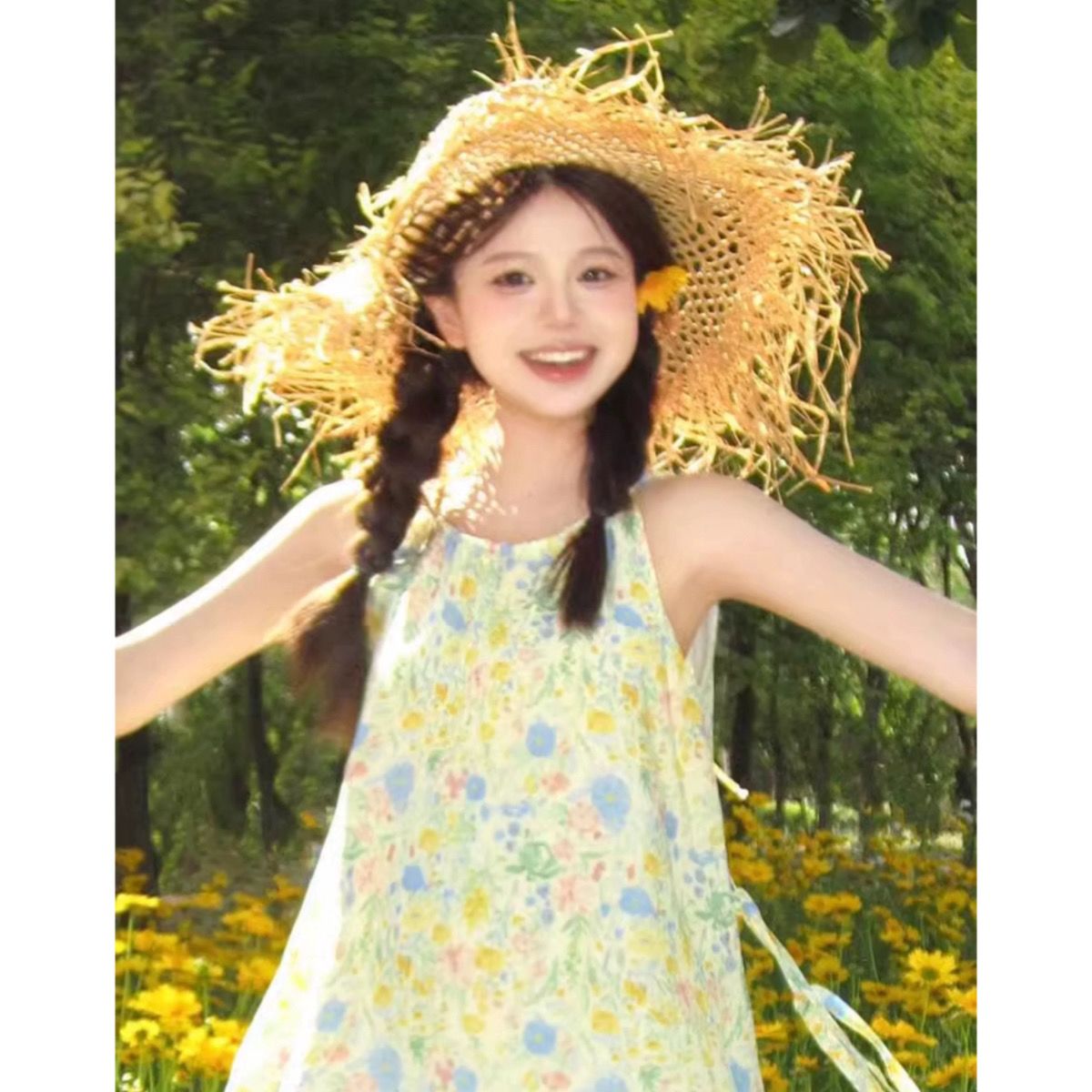 海边度假沙滩镂空夏天拉菲草帽遮阳帽檐防晒毛边出游帽子