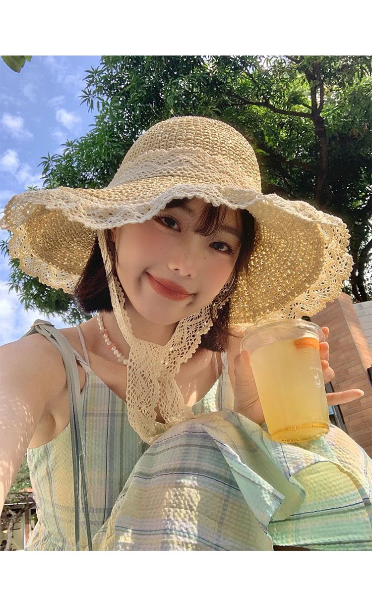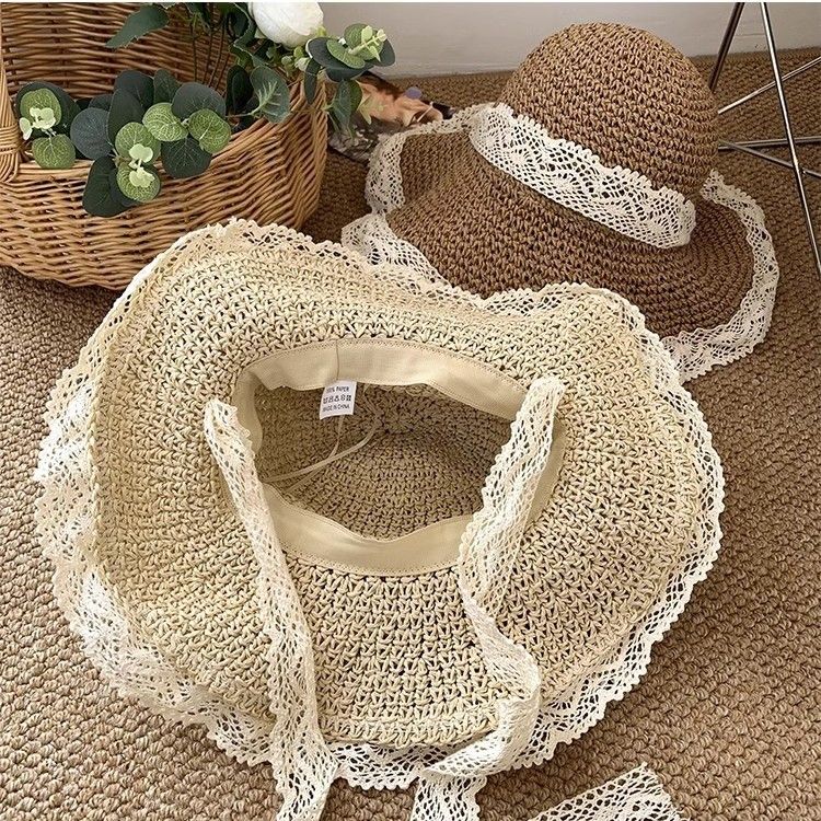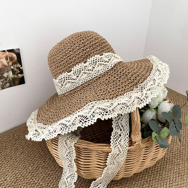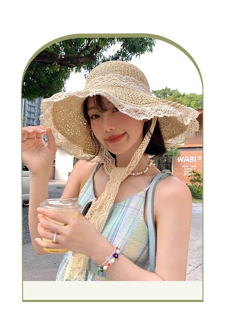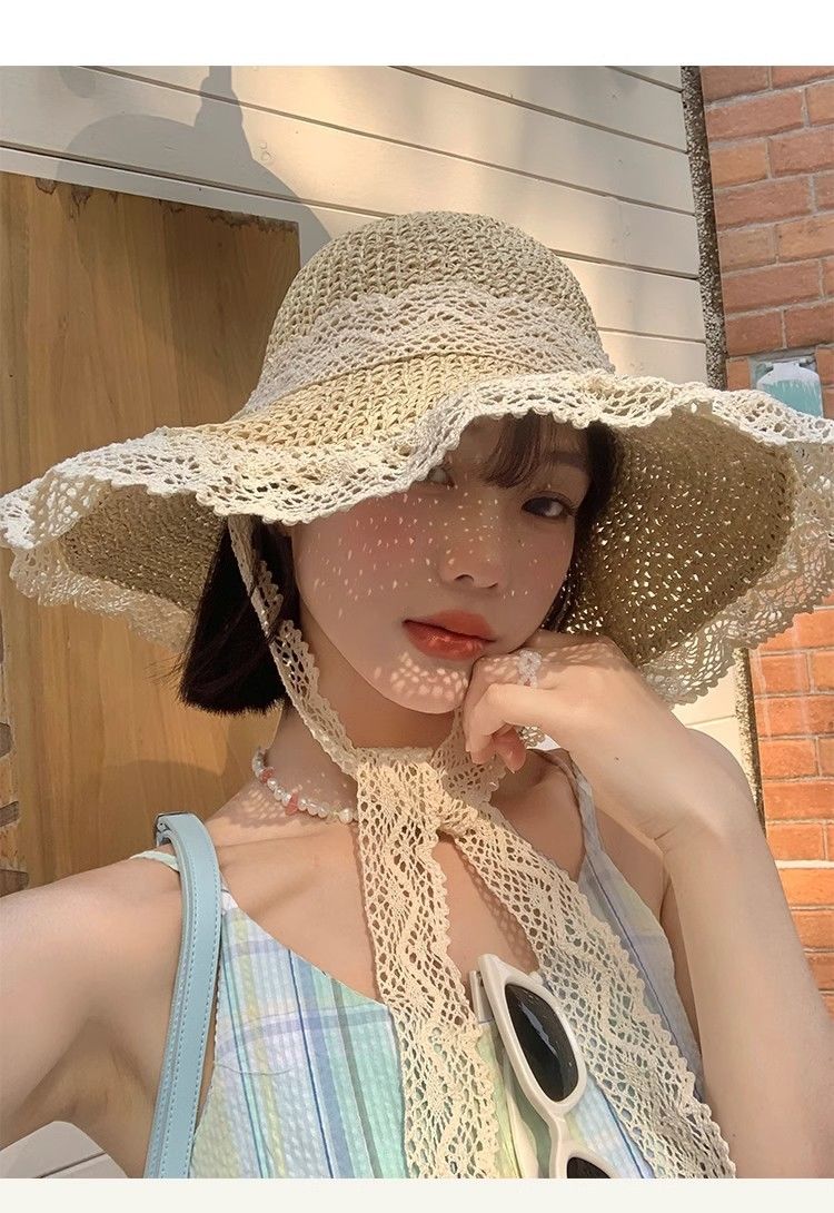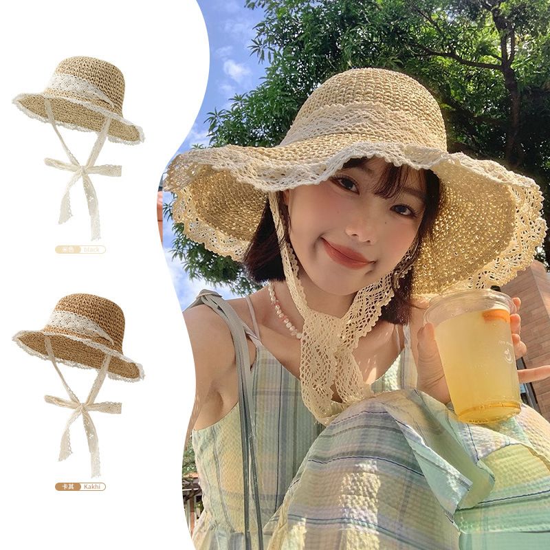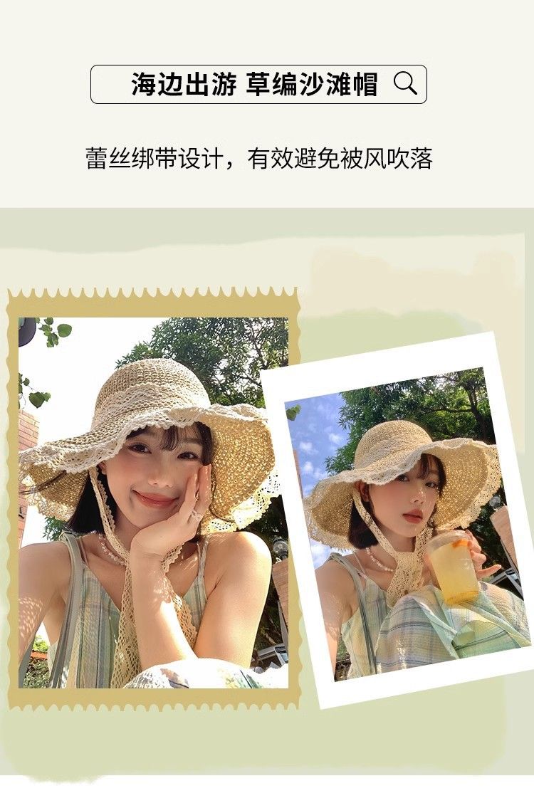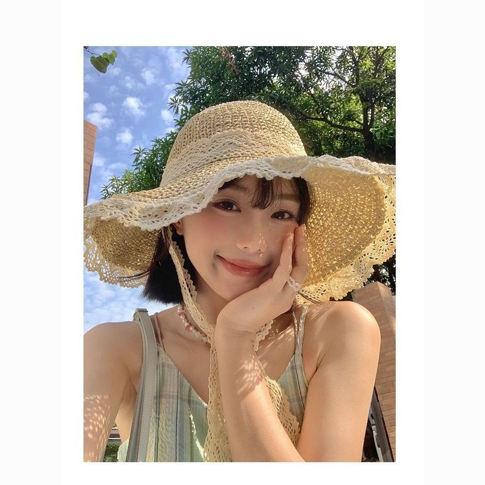 夏季防晒防紫外线遮阳帽大檐海边沙滩薄款花边遮阳草帽