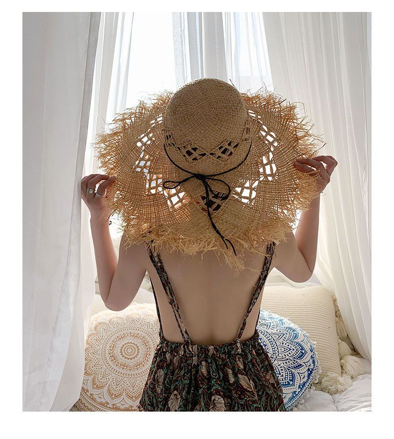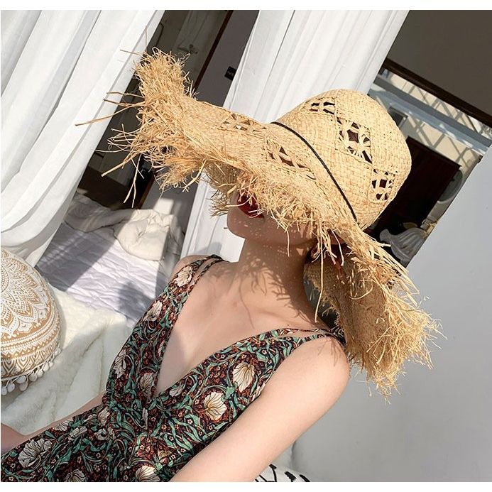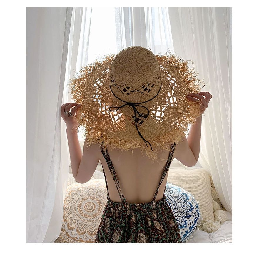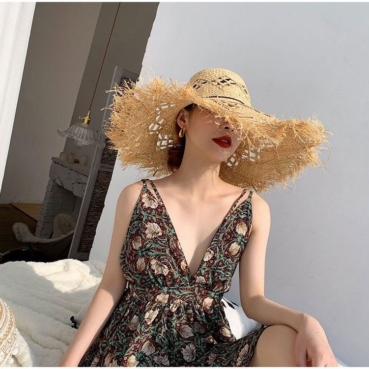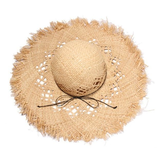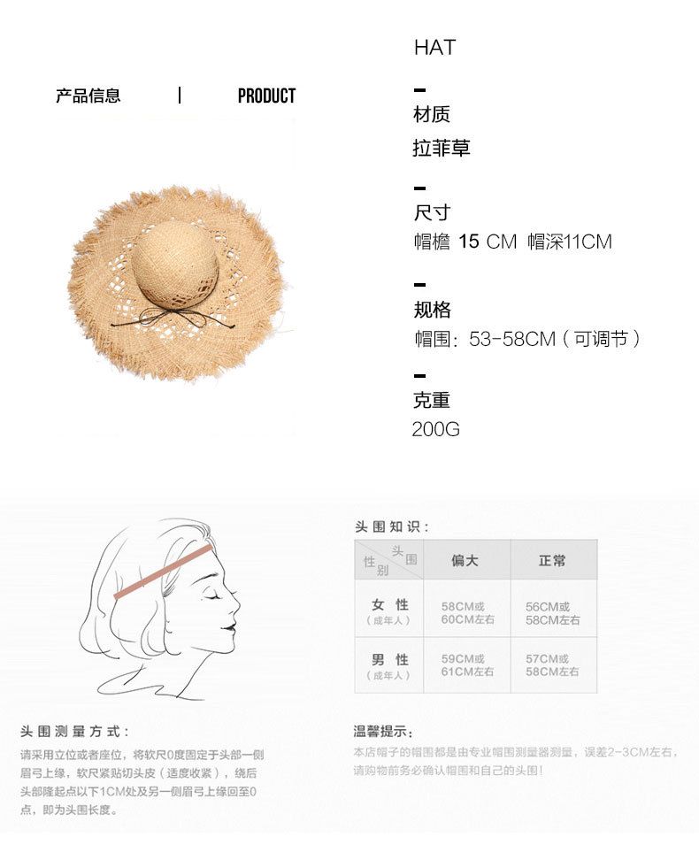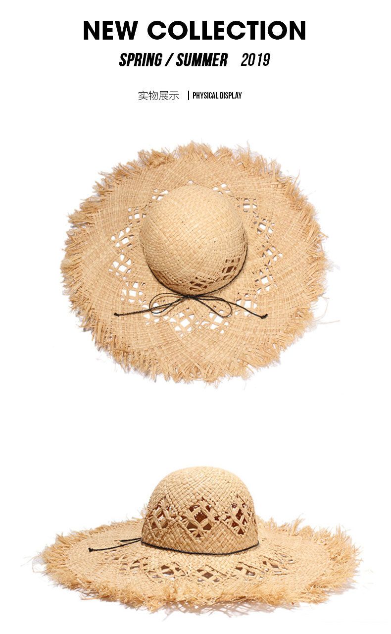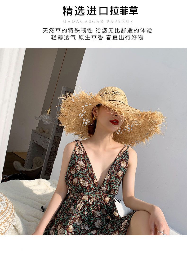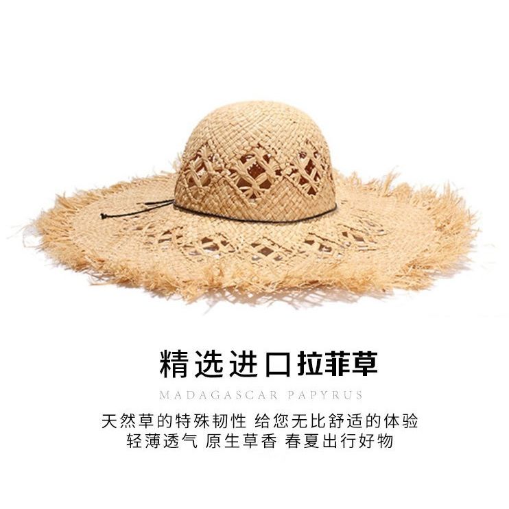 春夏新款毛边大檐拉菲草帽女夏季潮搭沙滩帽海边度假防晒遮阳帽潮