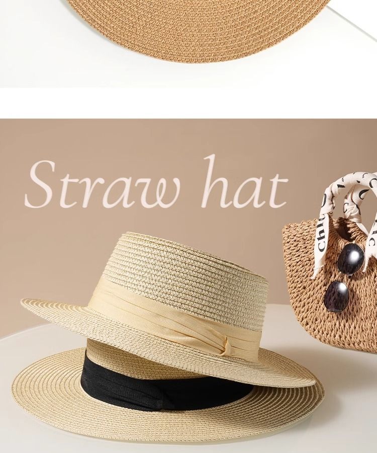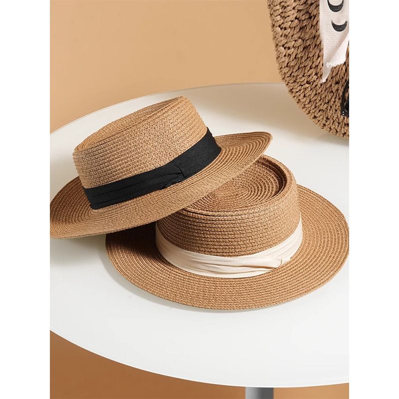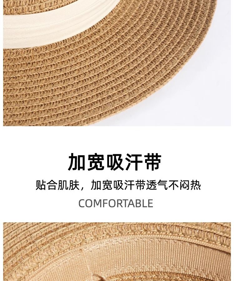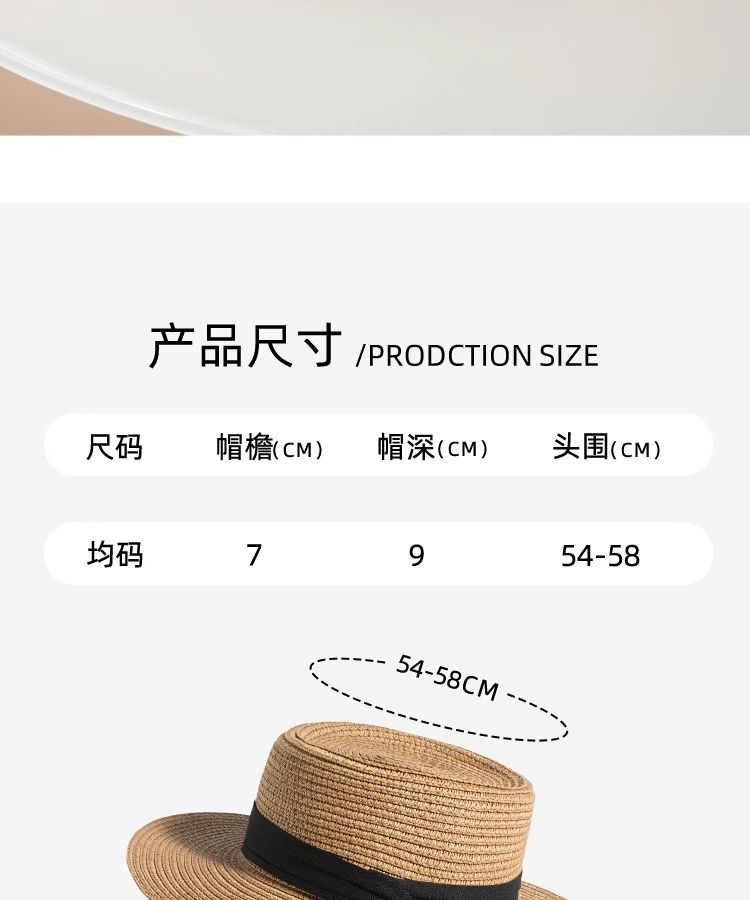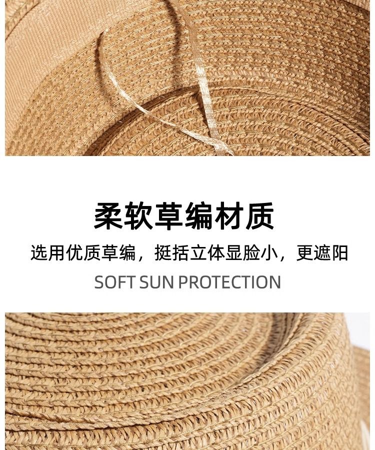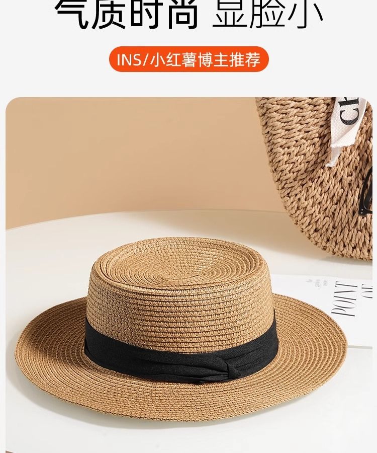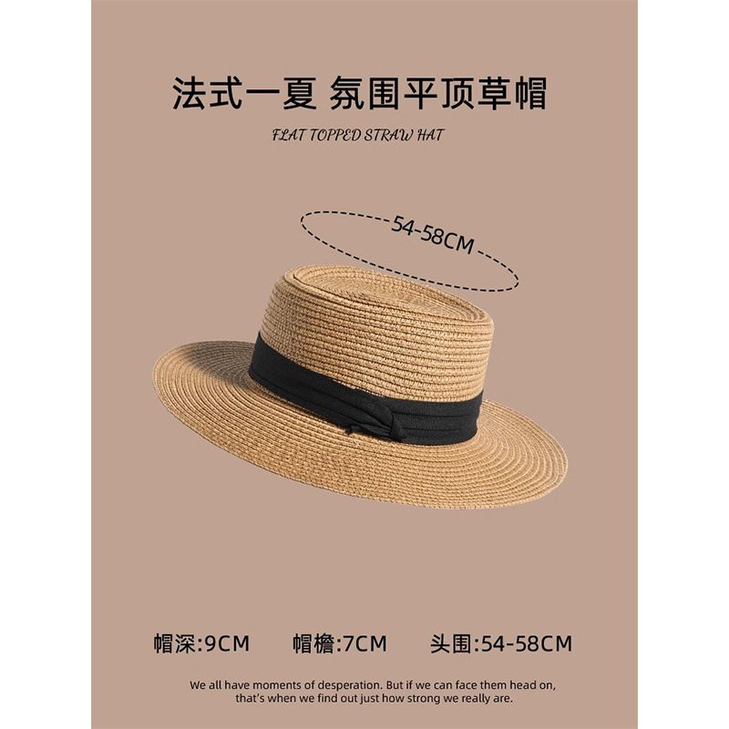 2024新款夏季遮阳法式平顶草帽女大头围海边沙滩礼帽防晒编织帽子