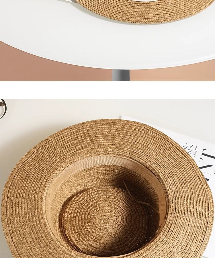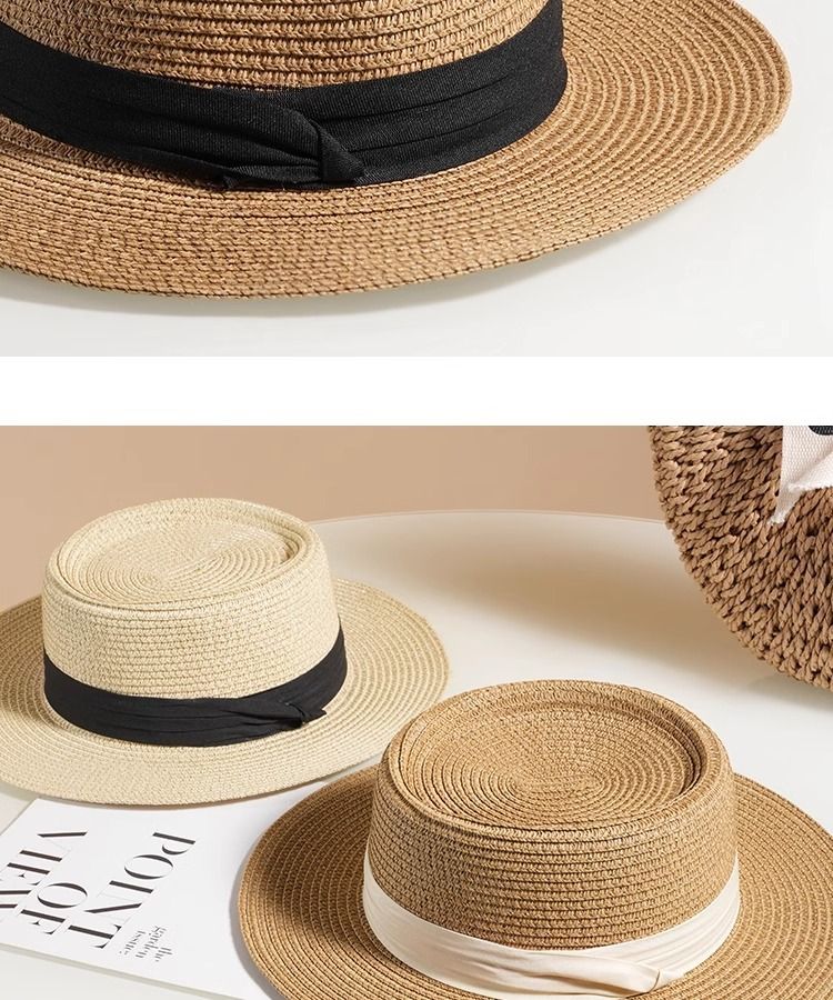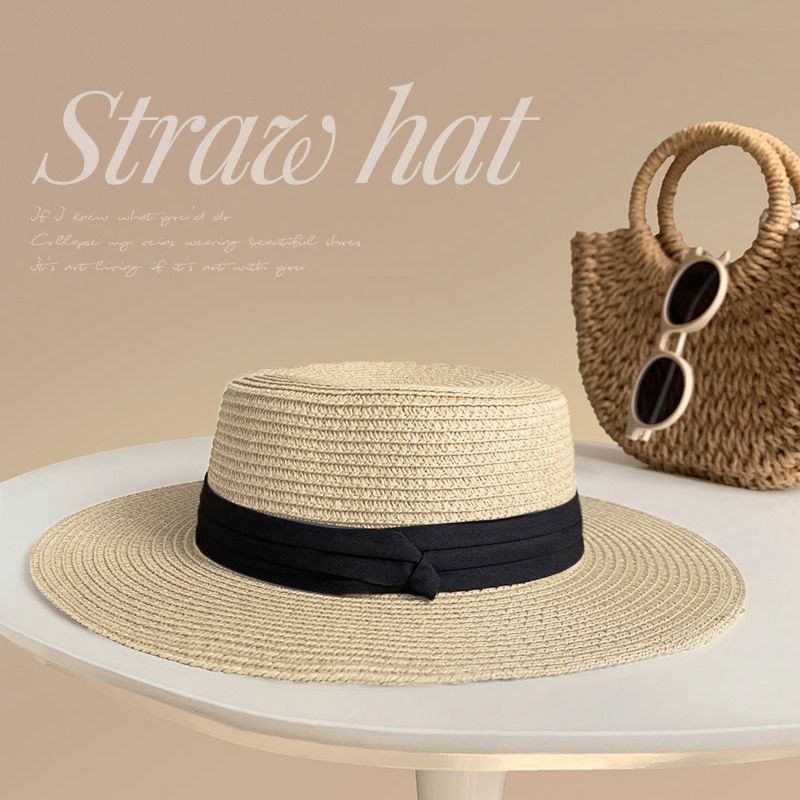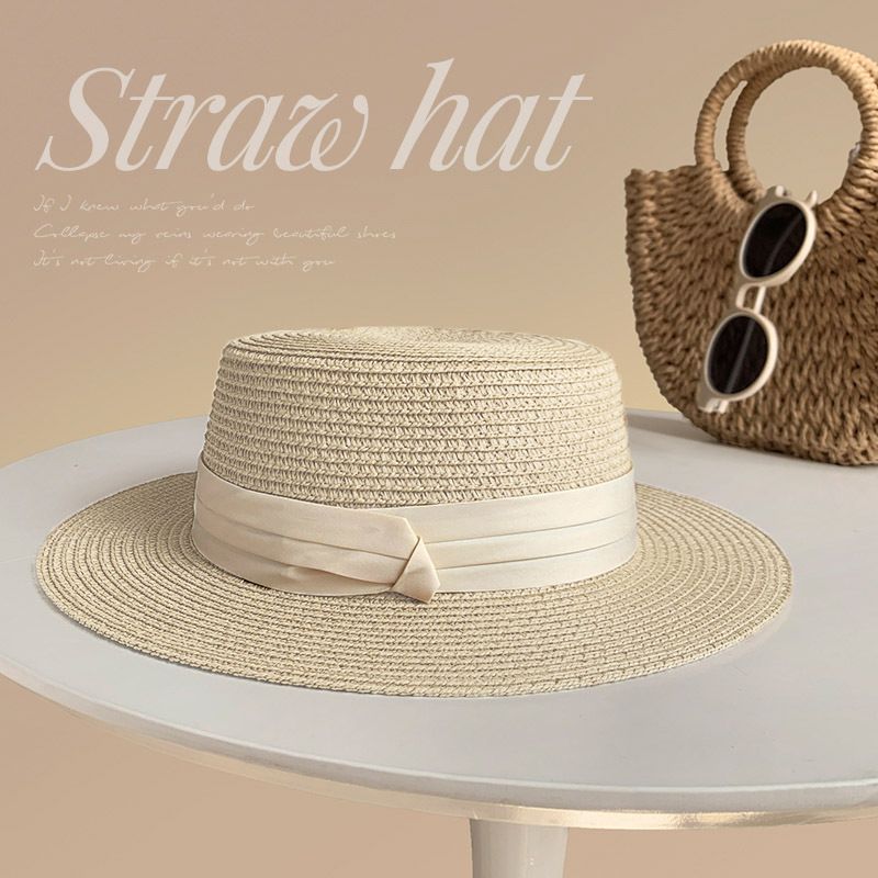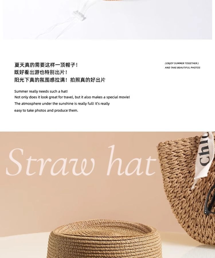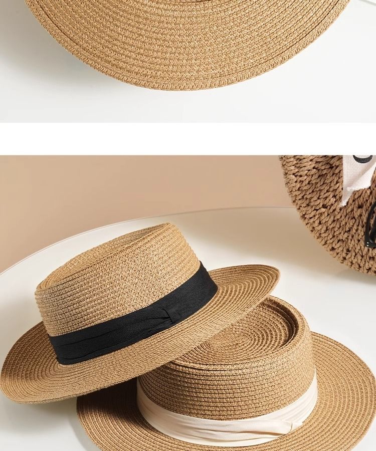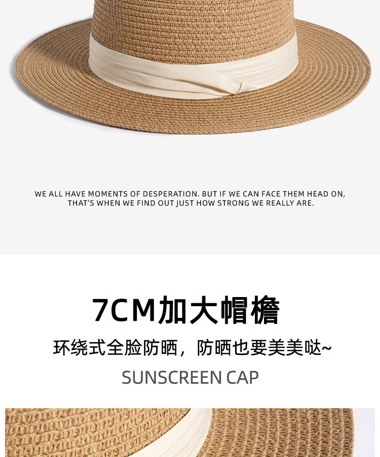 2024新款夏季遮阳法式平顶草帽女大头围海边沙滩礼帽防晒编织帽子