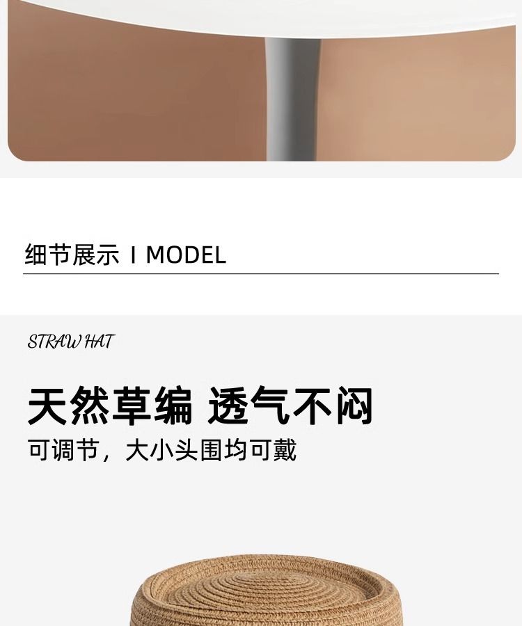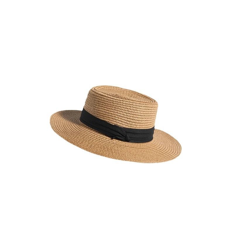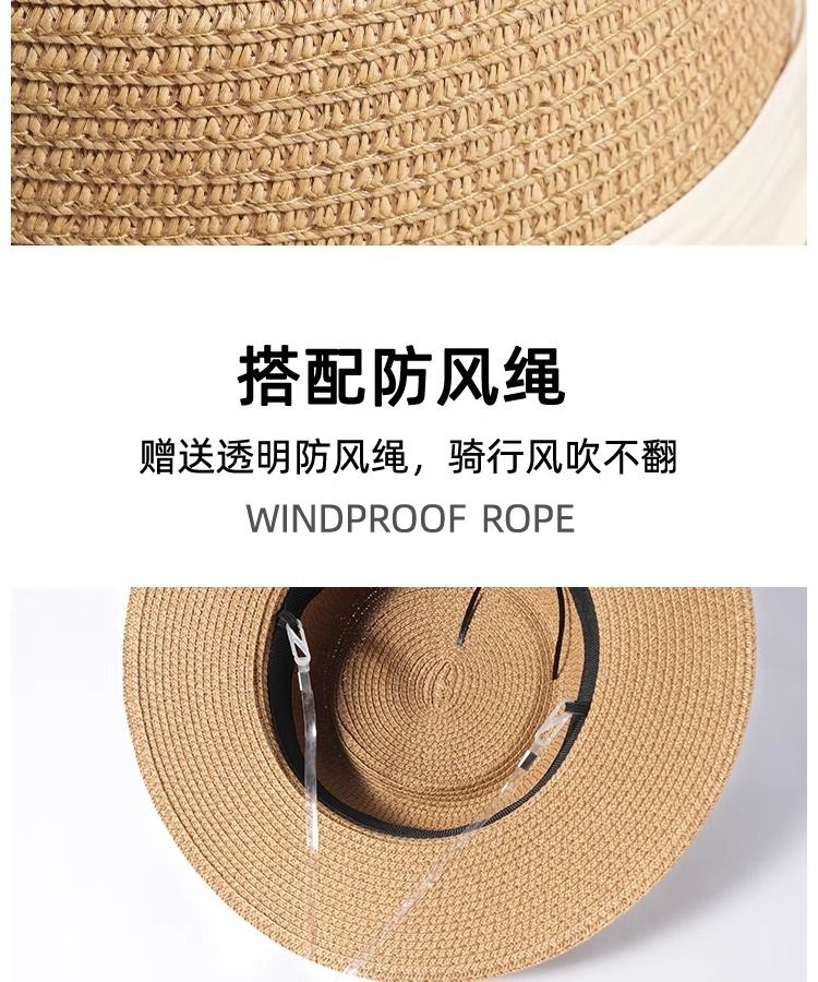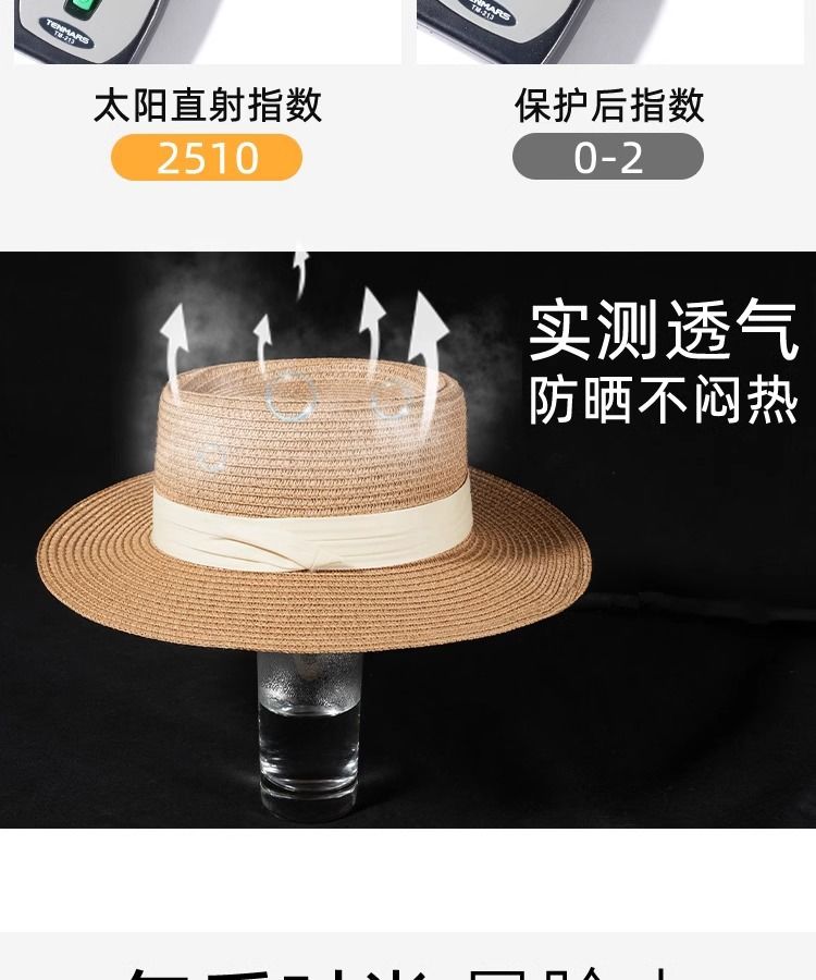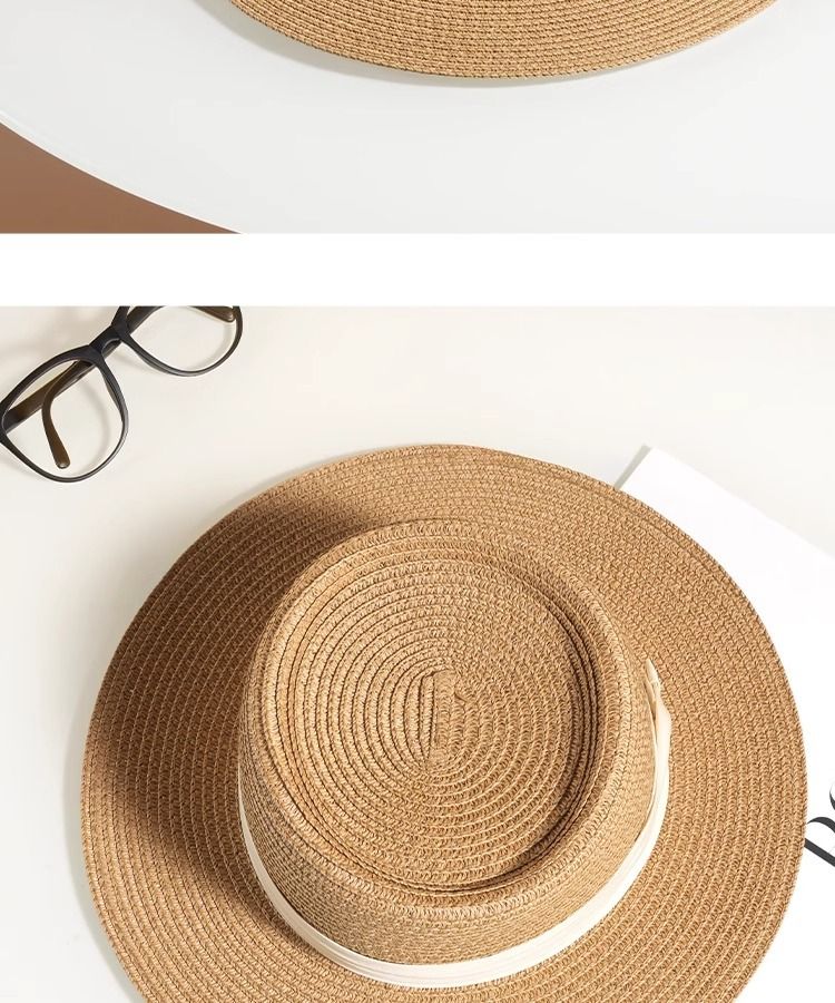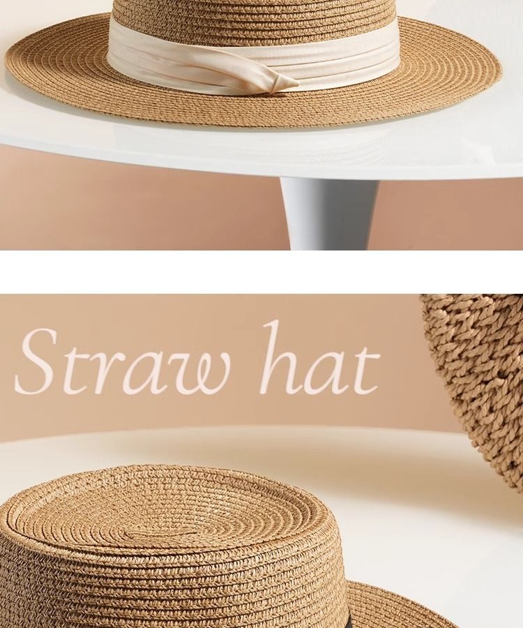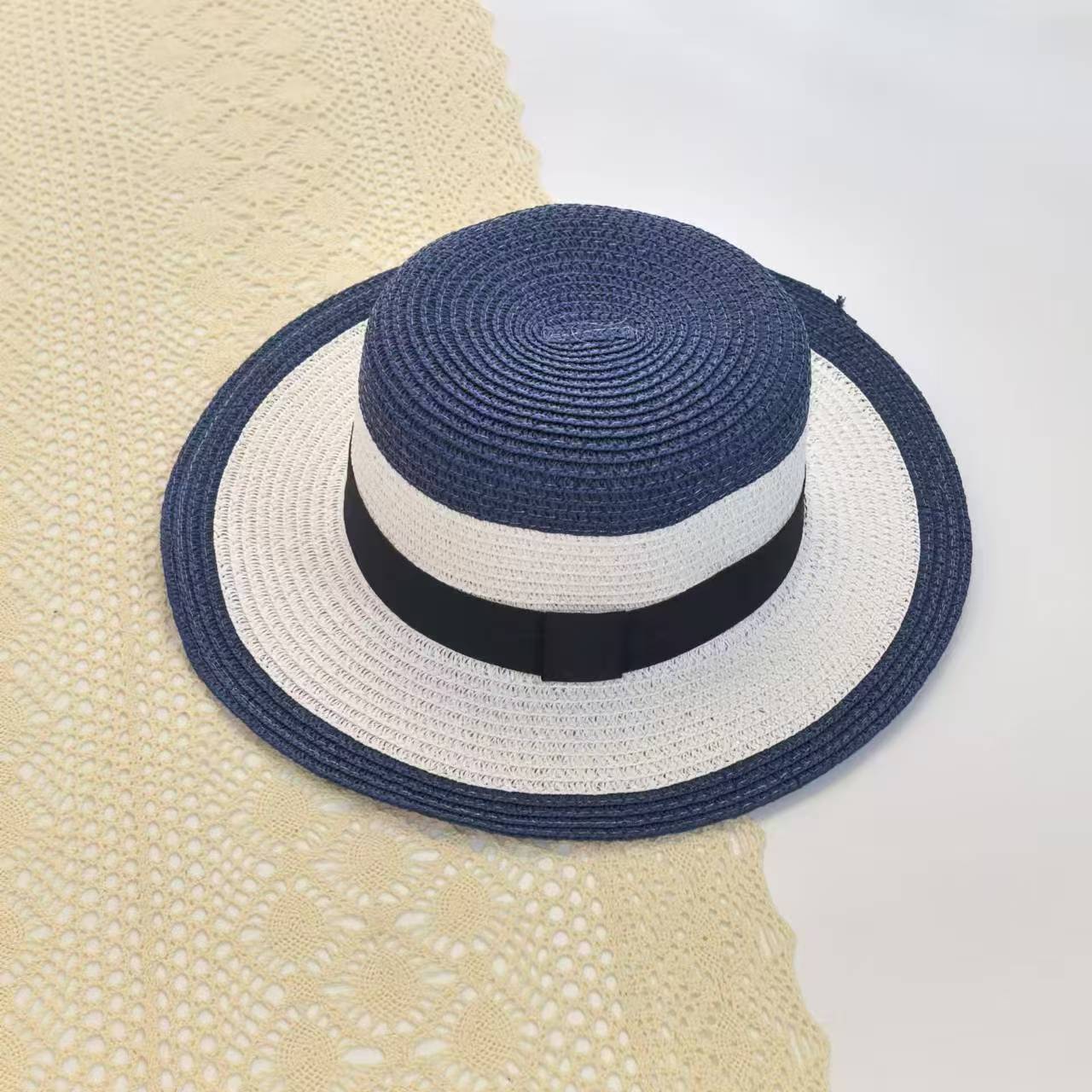 2024新款夏季遮阳法式平顶草帽女大头围海边沙滩礼帽防晒编织帽子