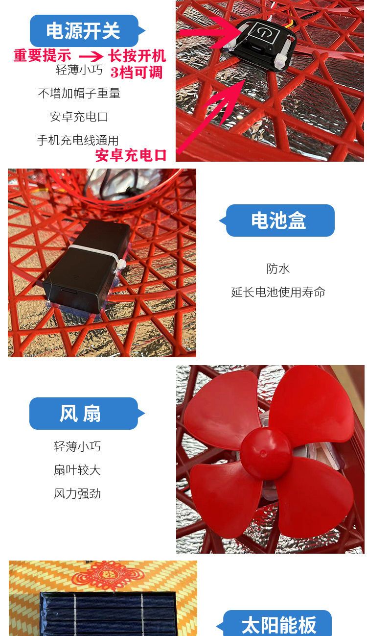 | 6th generation cap thickened solar + lithium automatic charging 3 fans(第6代帽加厚太阳能+锂电自动充3风扇) | USD $36.55 | 99999 piece available |
