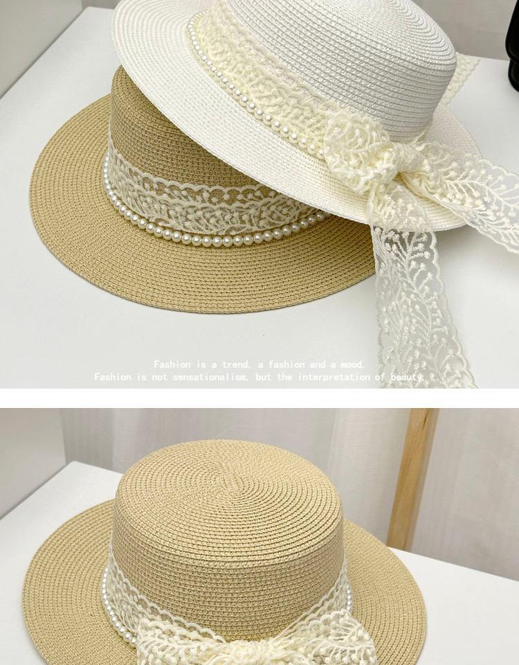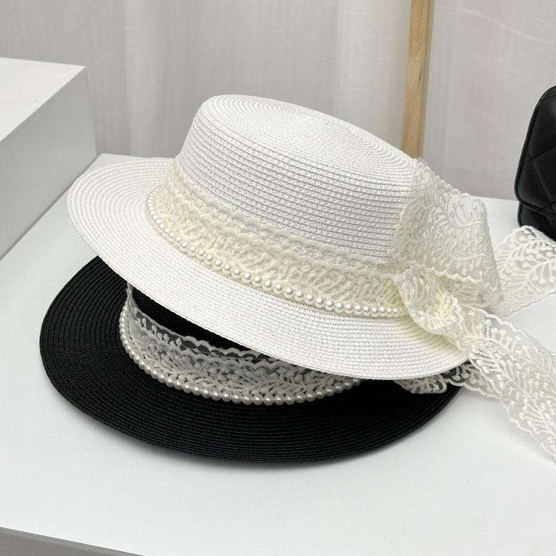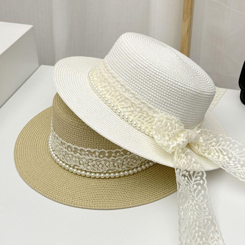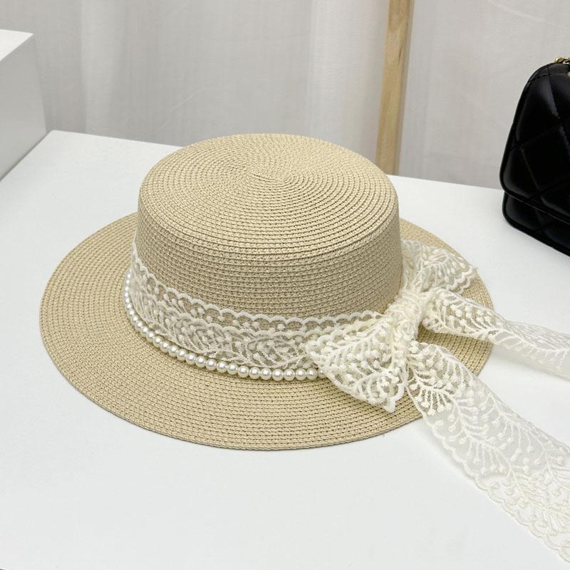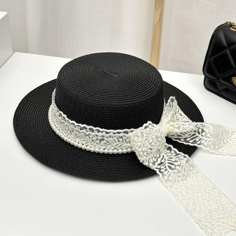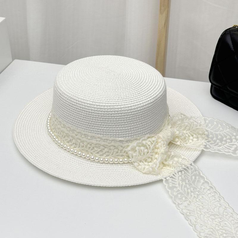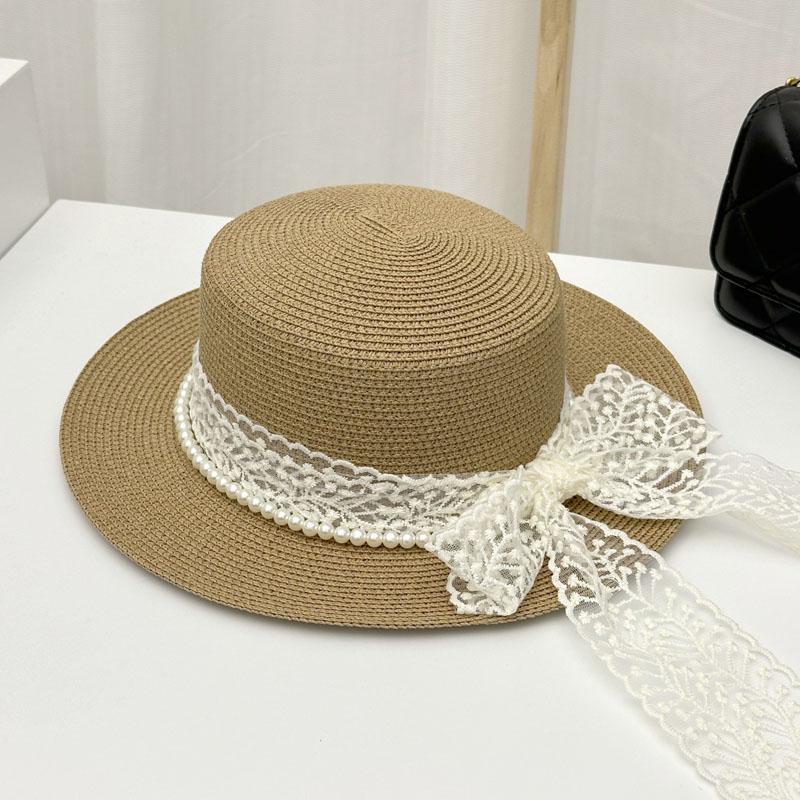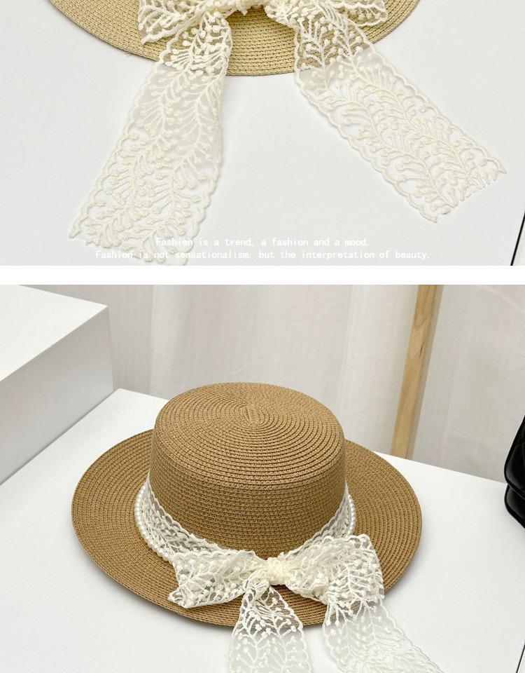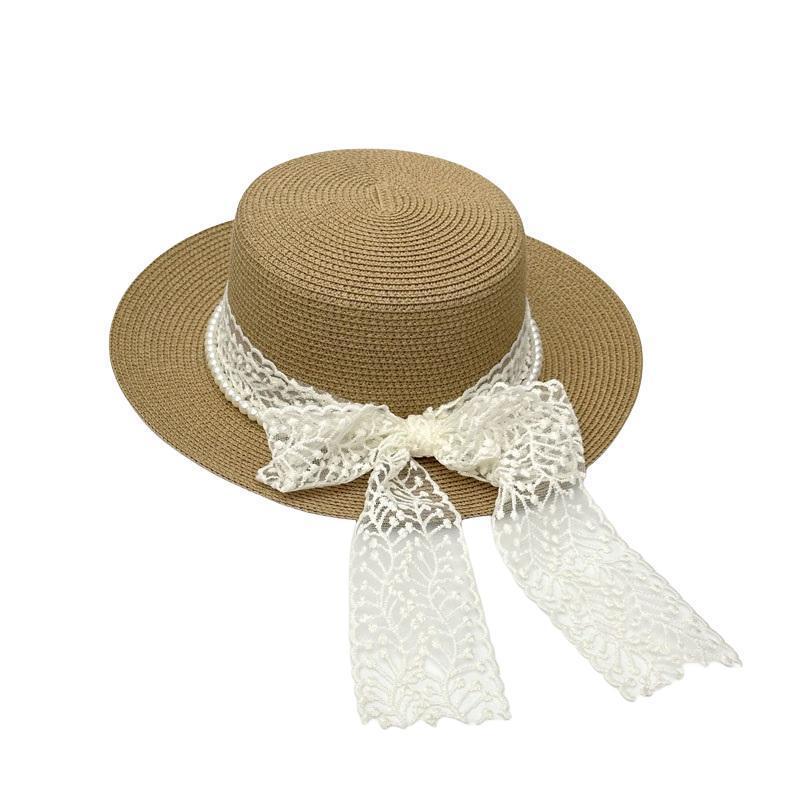 柏雅图百搭蕾丝绑带蝴蝶结平顶草帽夏出游遮阳防晒礼帽休闲