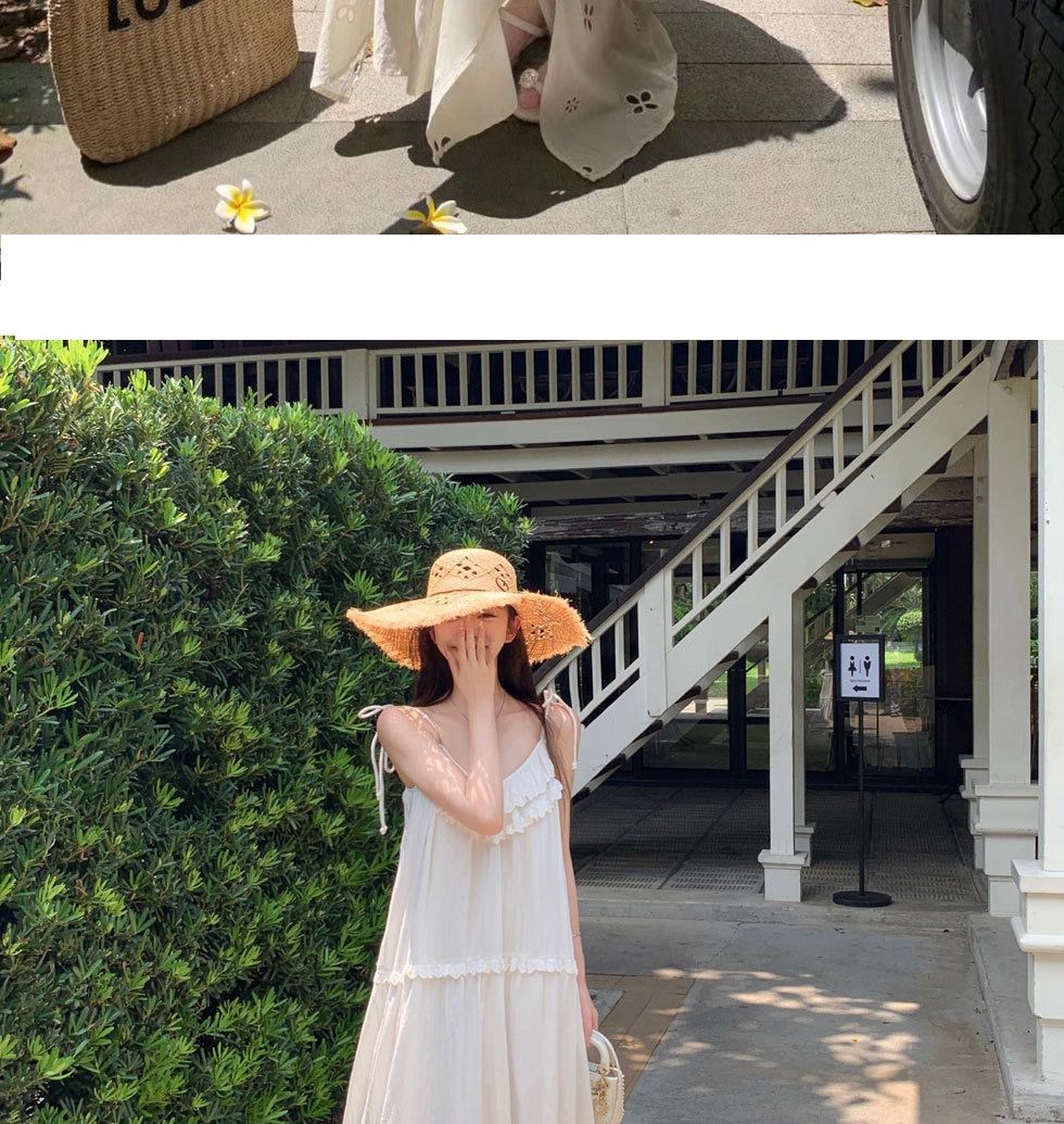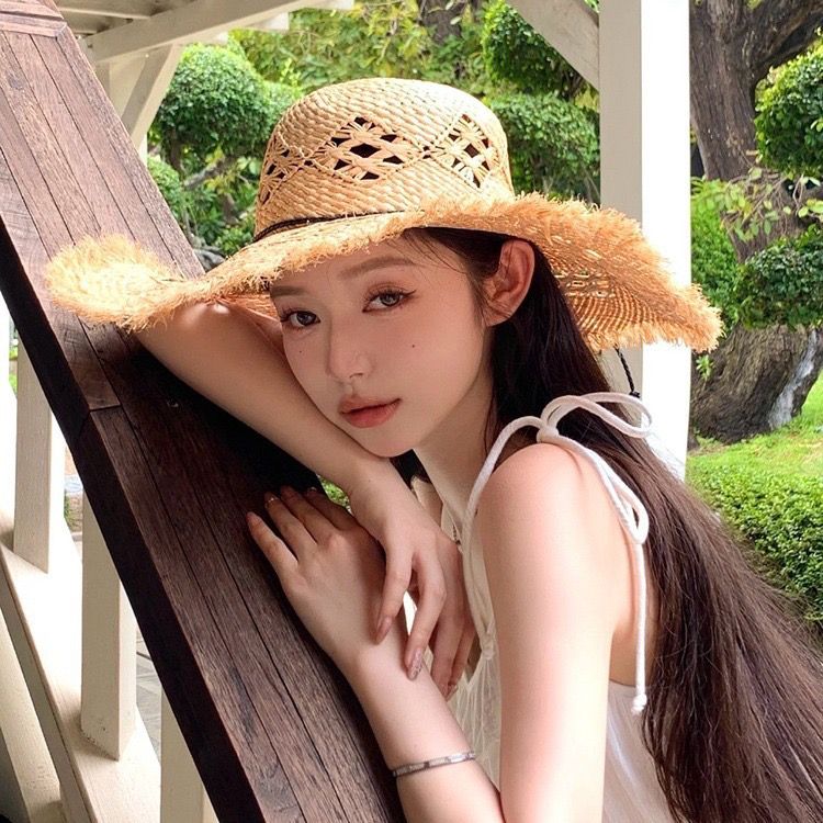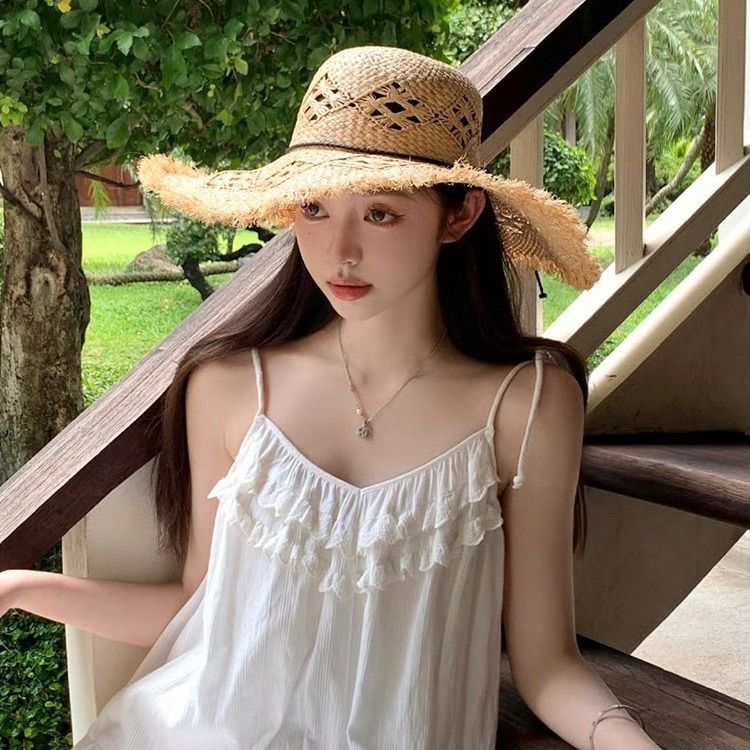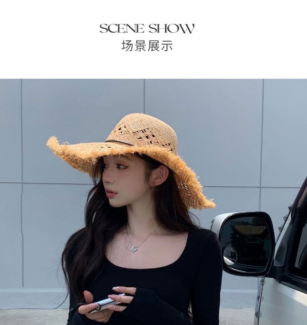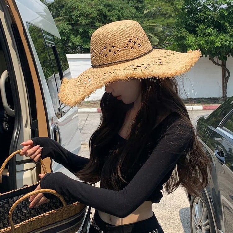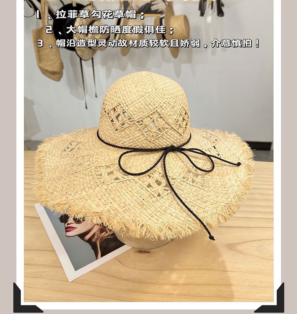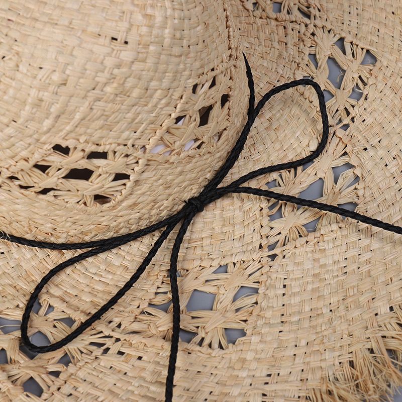 拉菲帽檐夏季蕾丝沙滩遮阳帽出游镂空海边度假防晒太阳帽草帽帽子