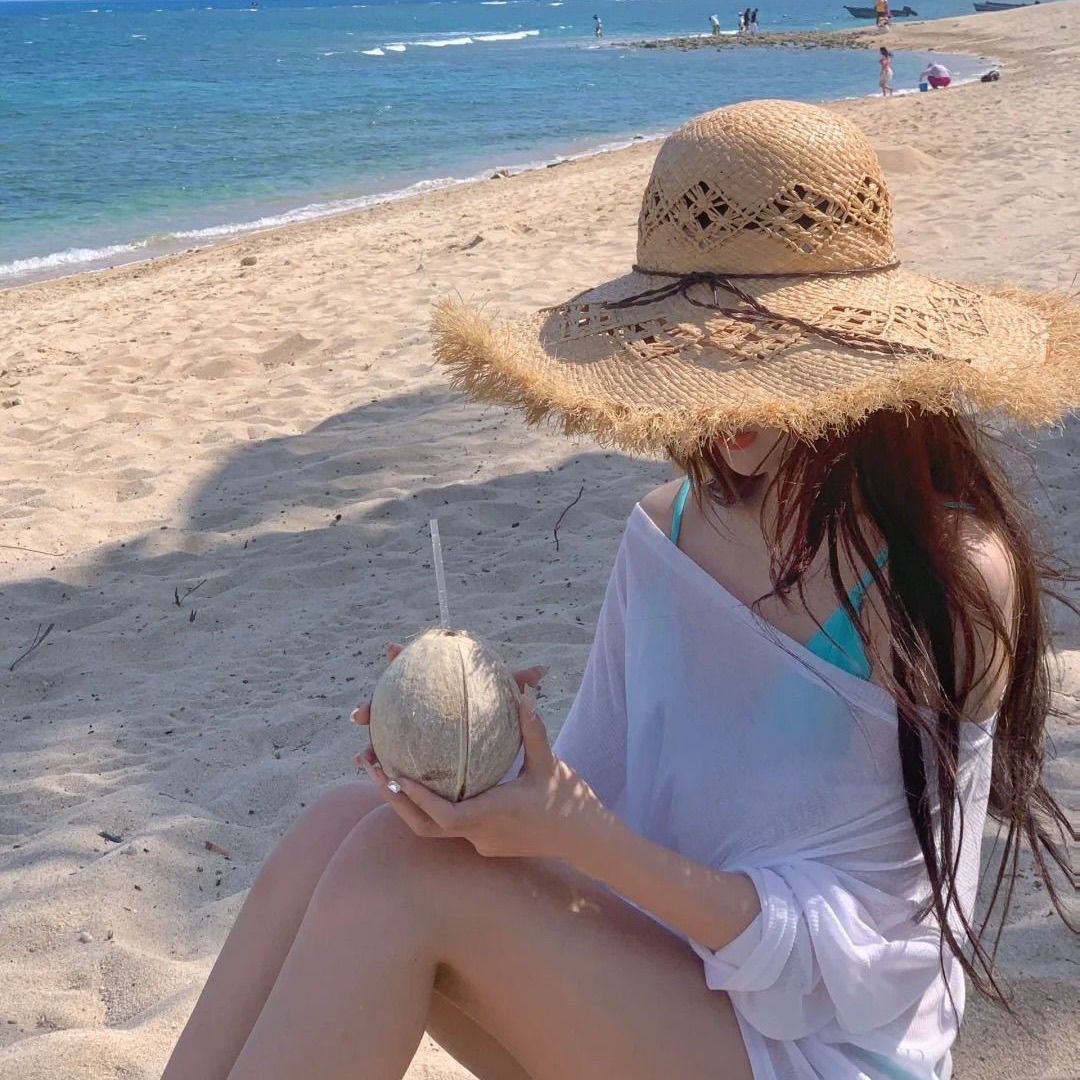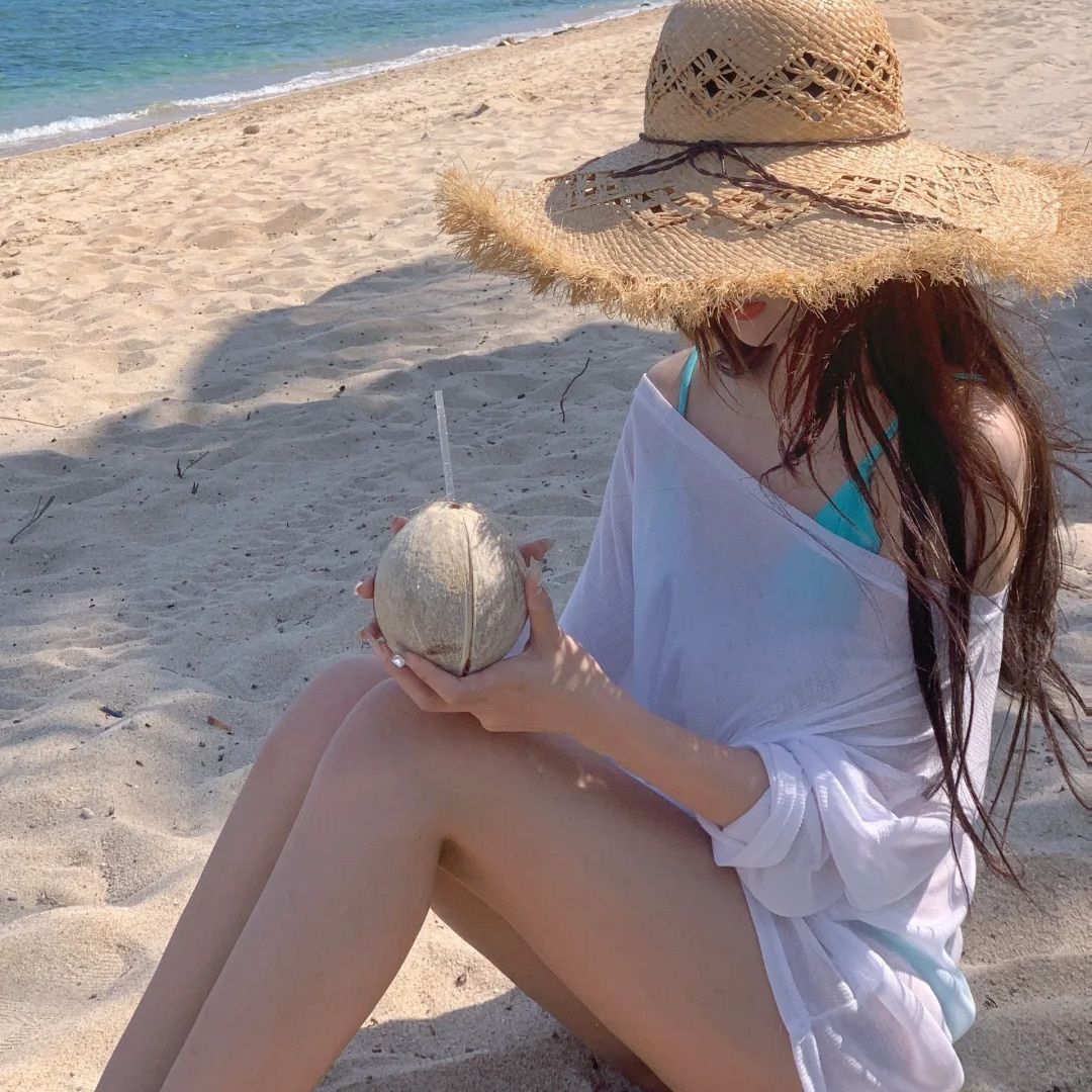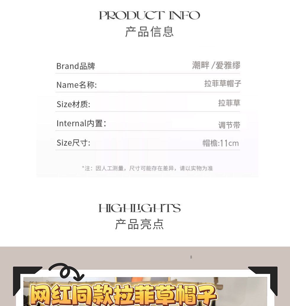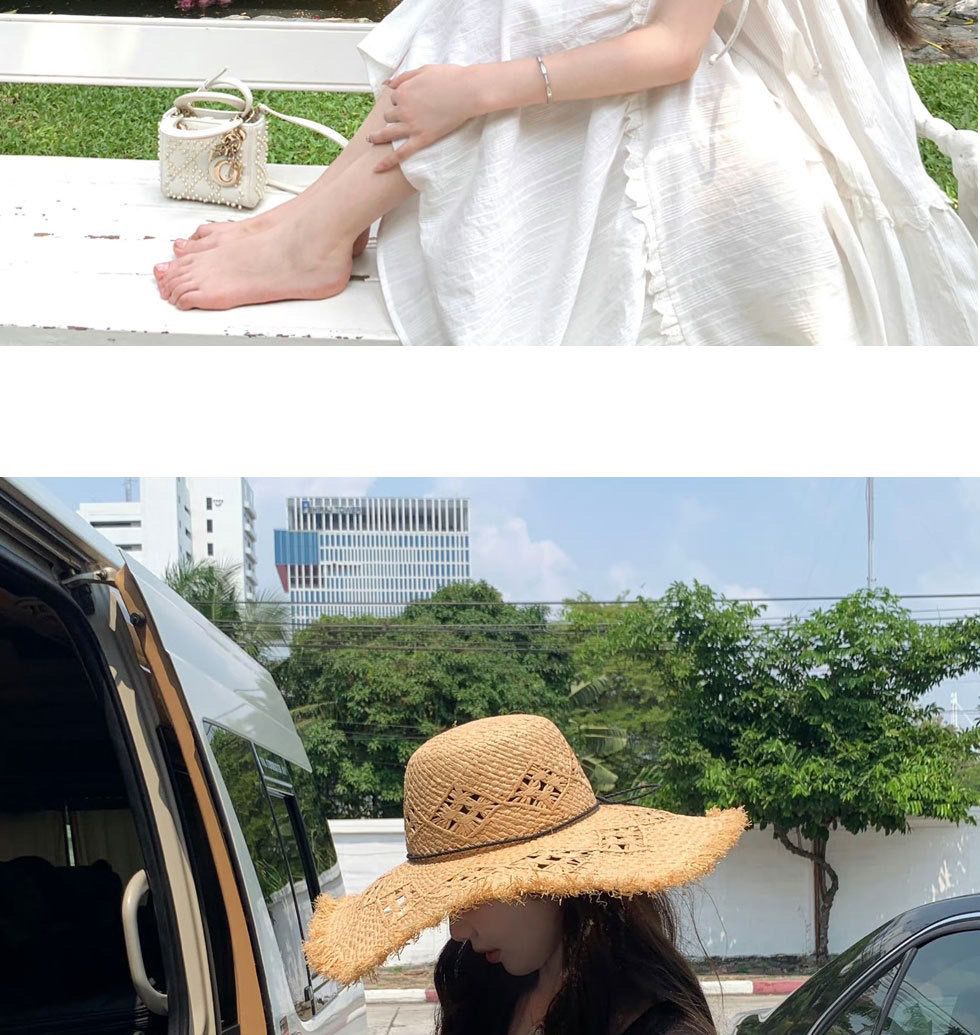 拉菲帽檐夏季蕾丝沙滩遮阳帽出游镂空海边度假防晒太阳帽草帽帽子