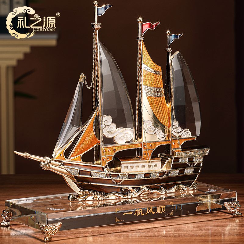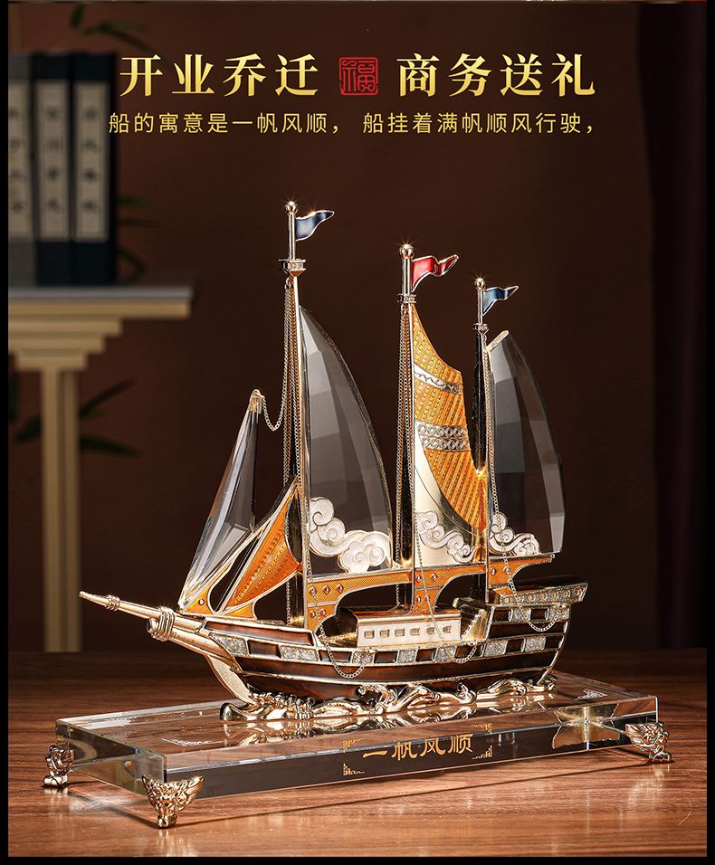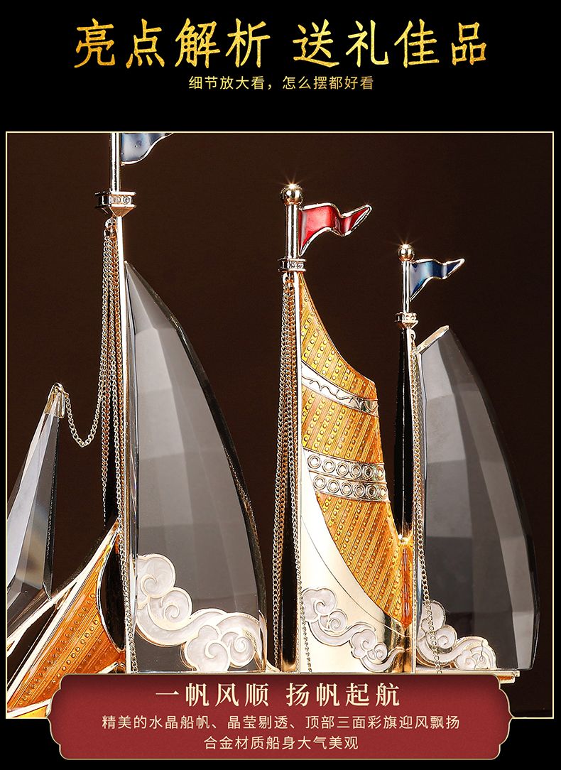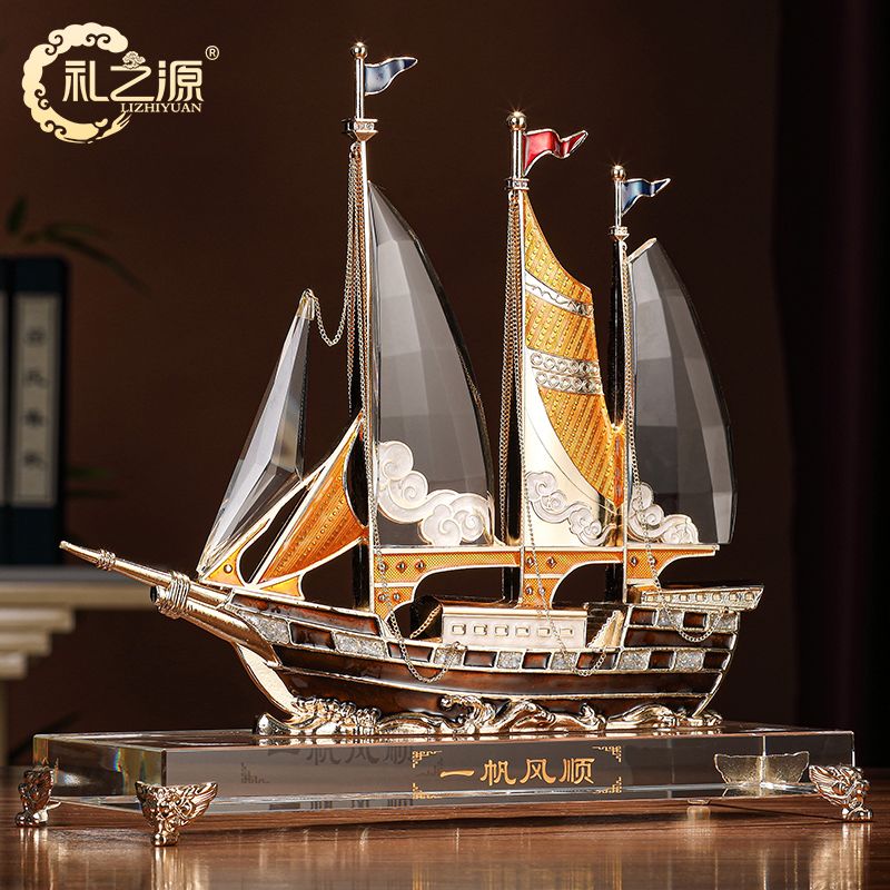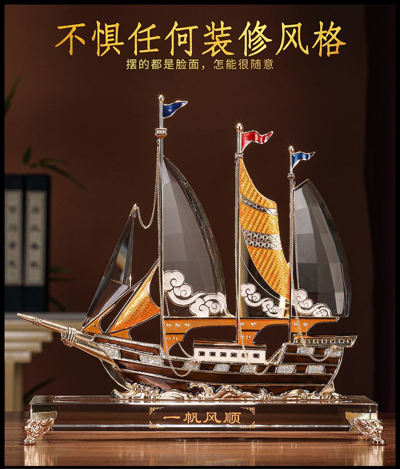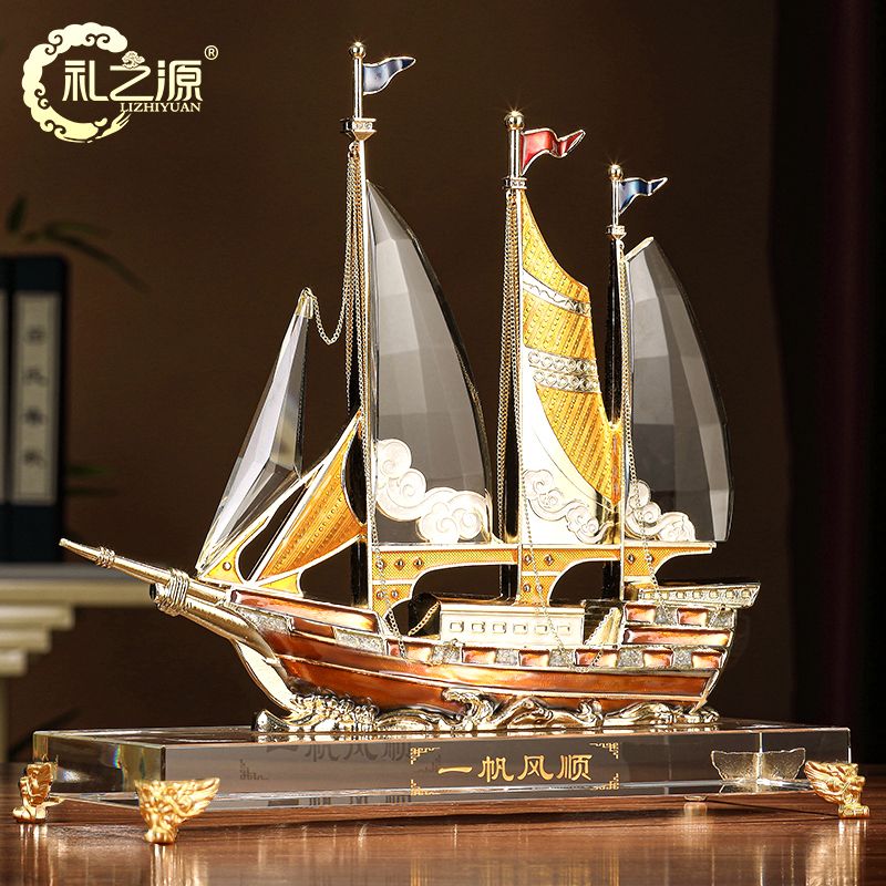 礼之源一帆风顺水晶帆船摆件客厅酒柜玄关电视柜装饰乔迁开业礼品