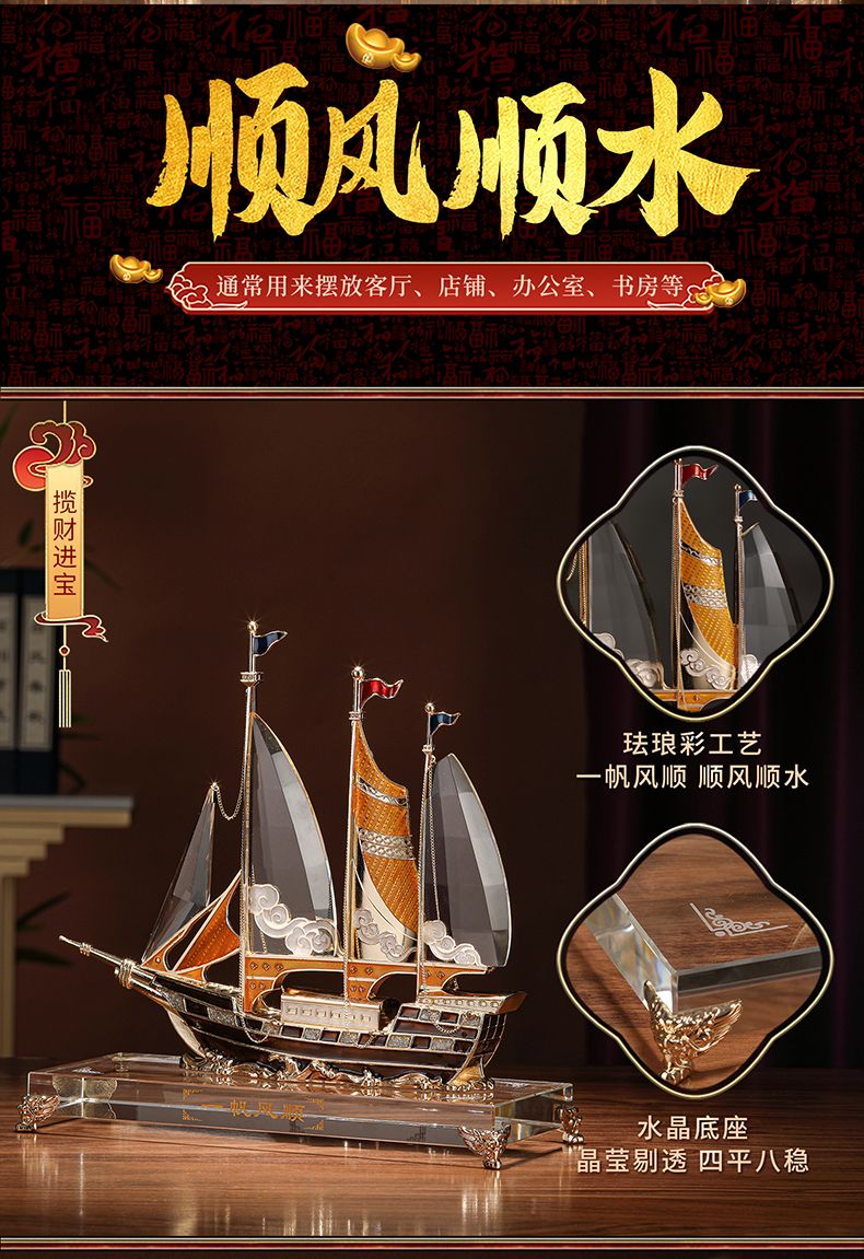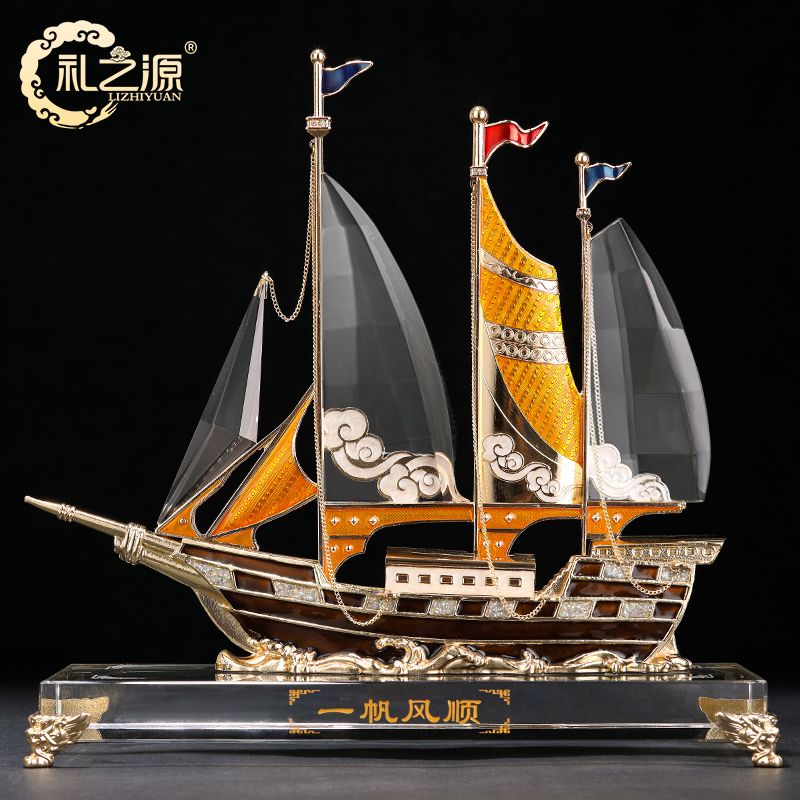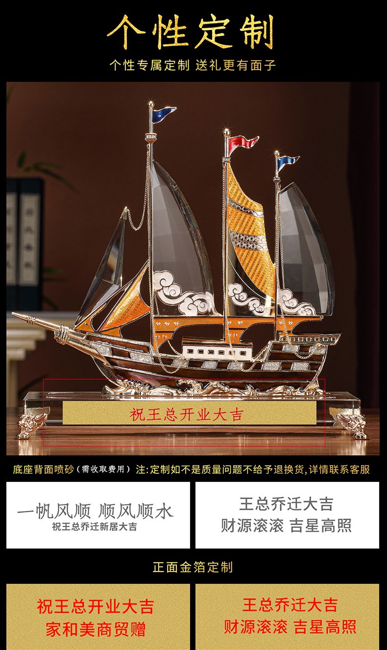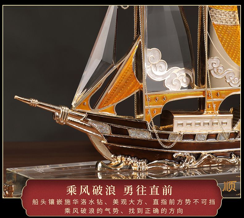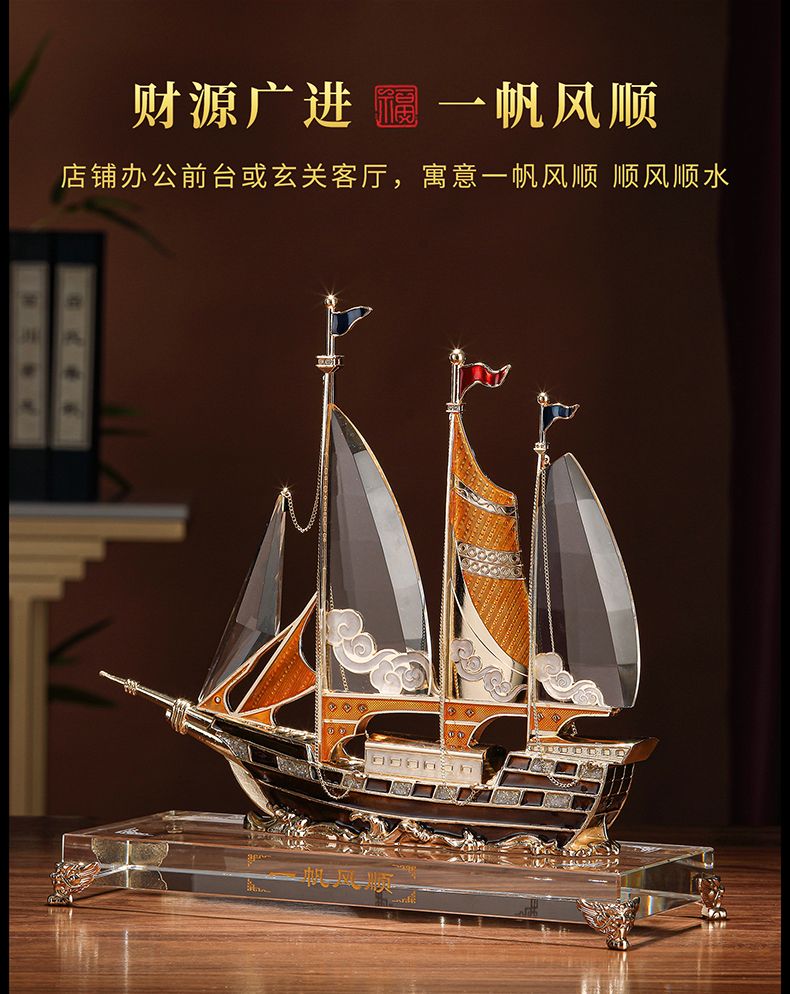 礼之源一帆风顺水晶帆船摆件客厅酒柜玄关电视柜装饰乔迁开业礼品