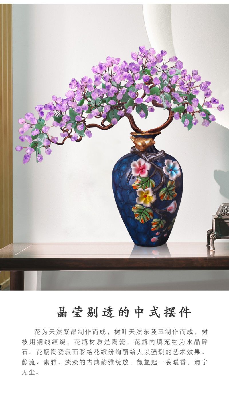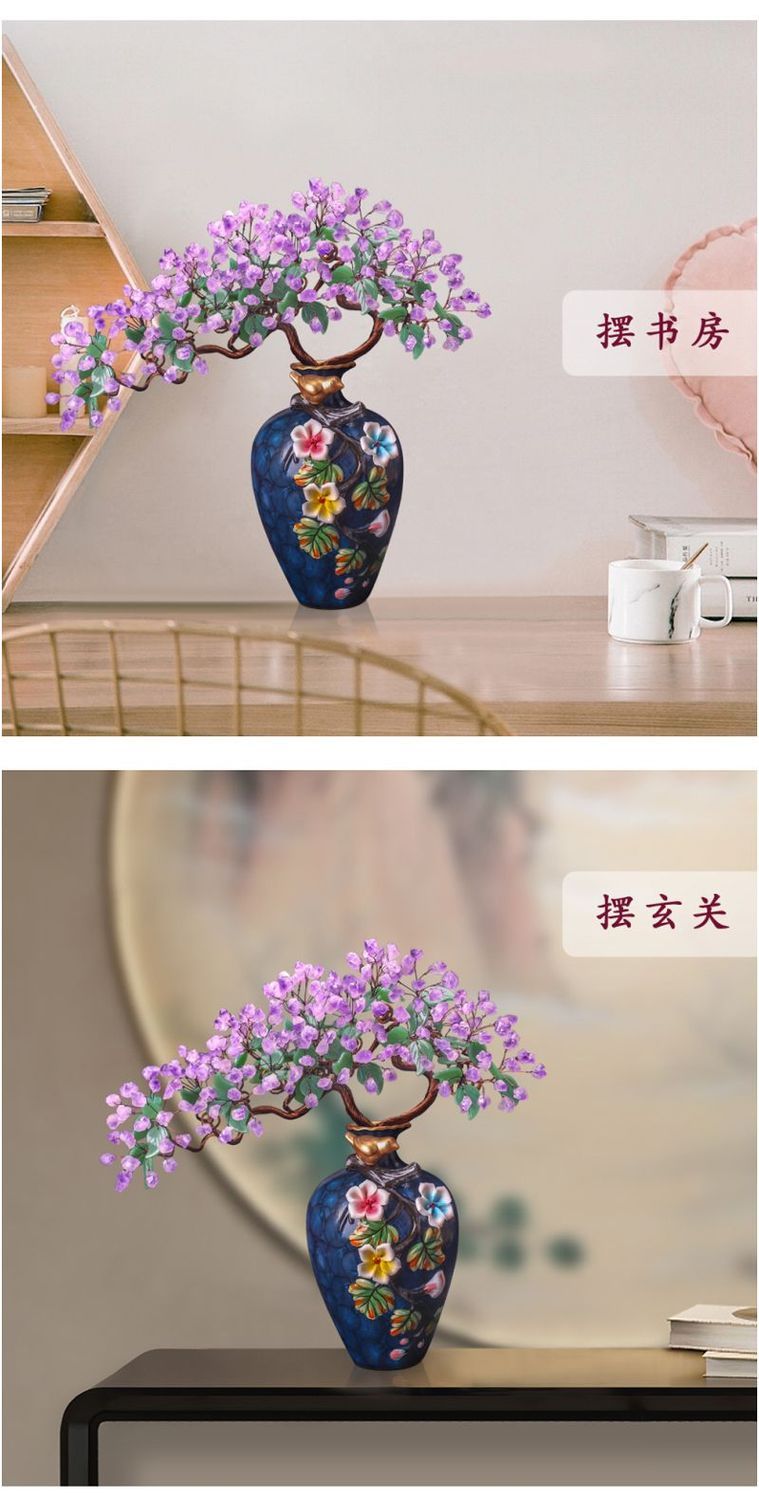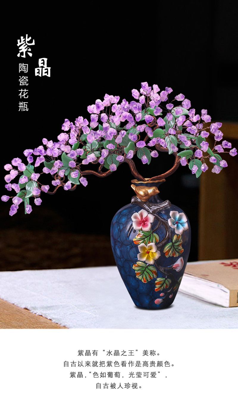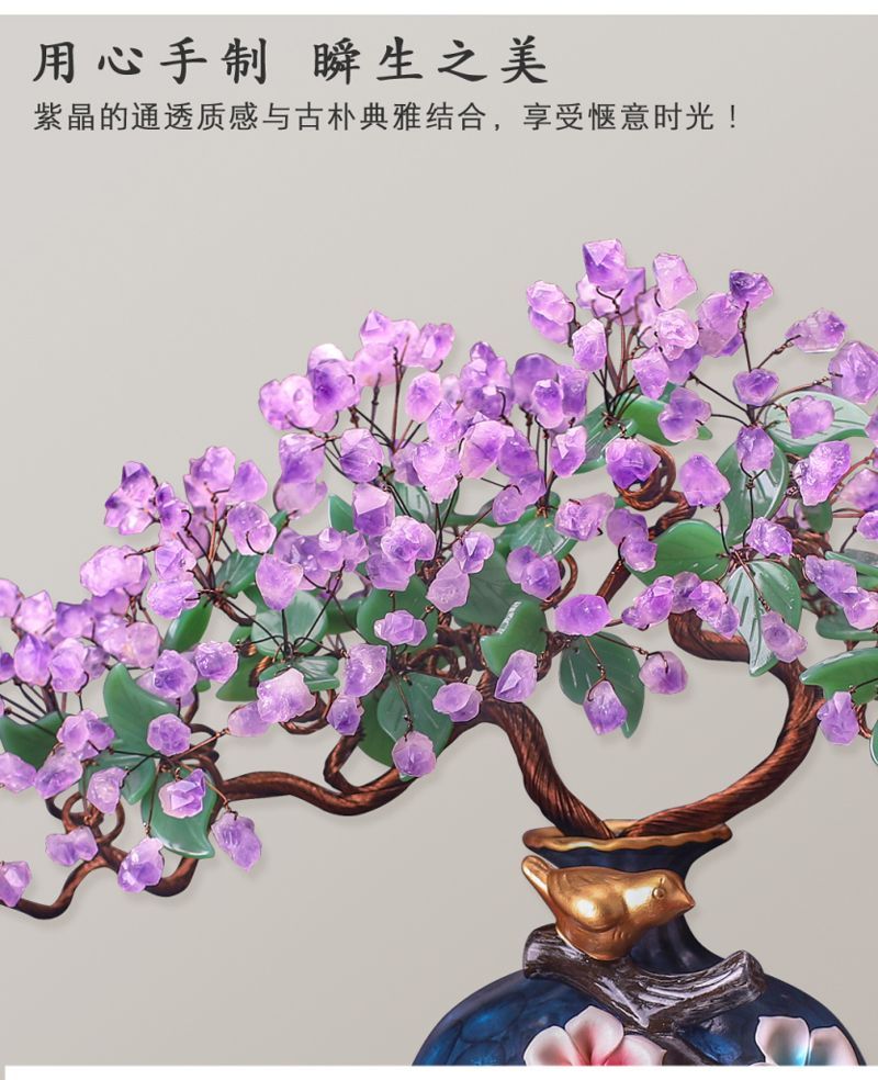 天然玉石高档简约紫水晶工艺品盆栽创意梳妆台餐桌玉器摆件