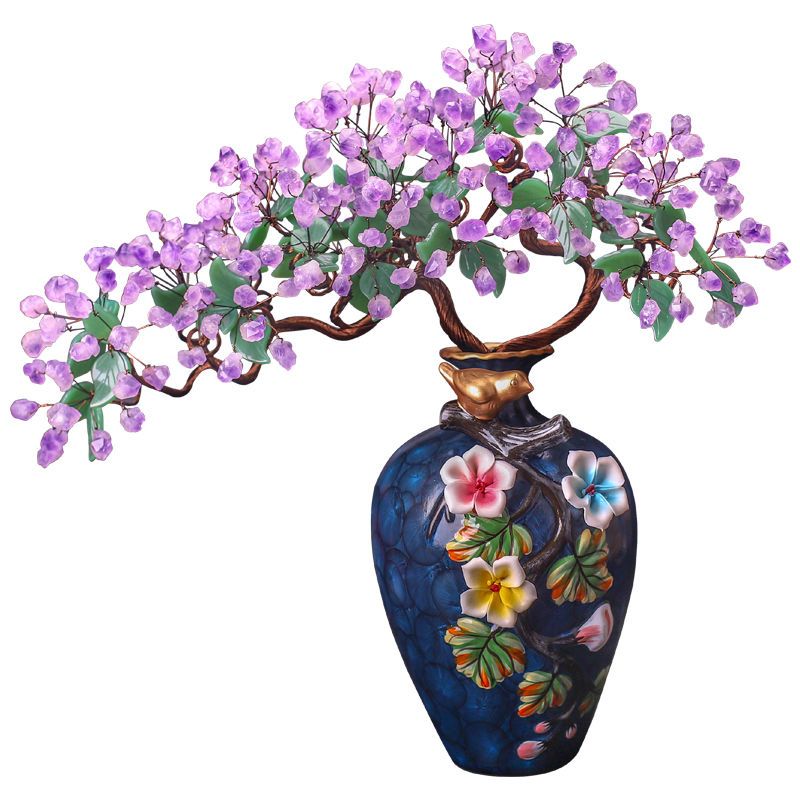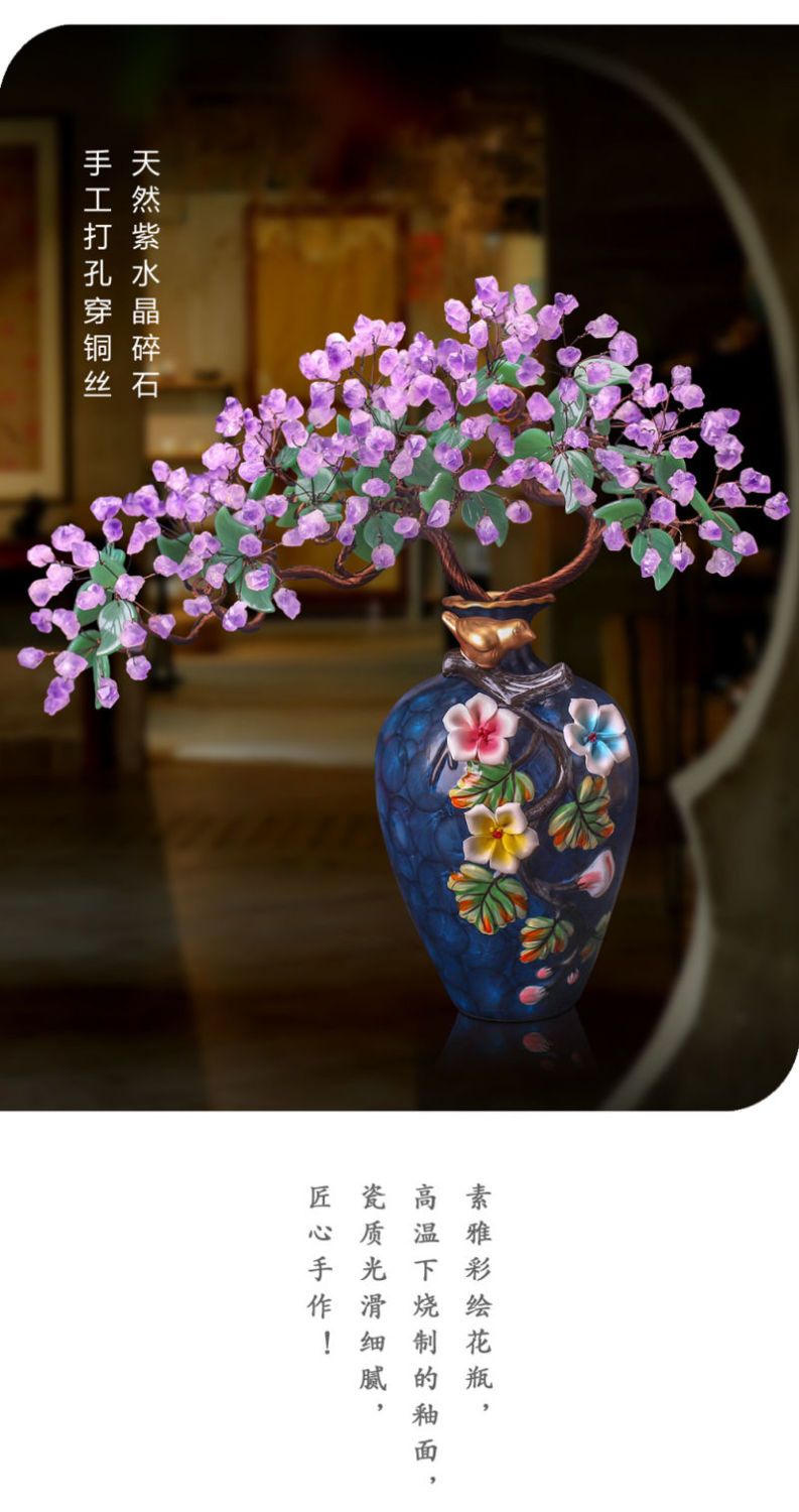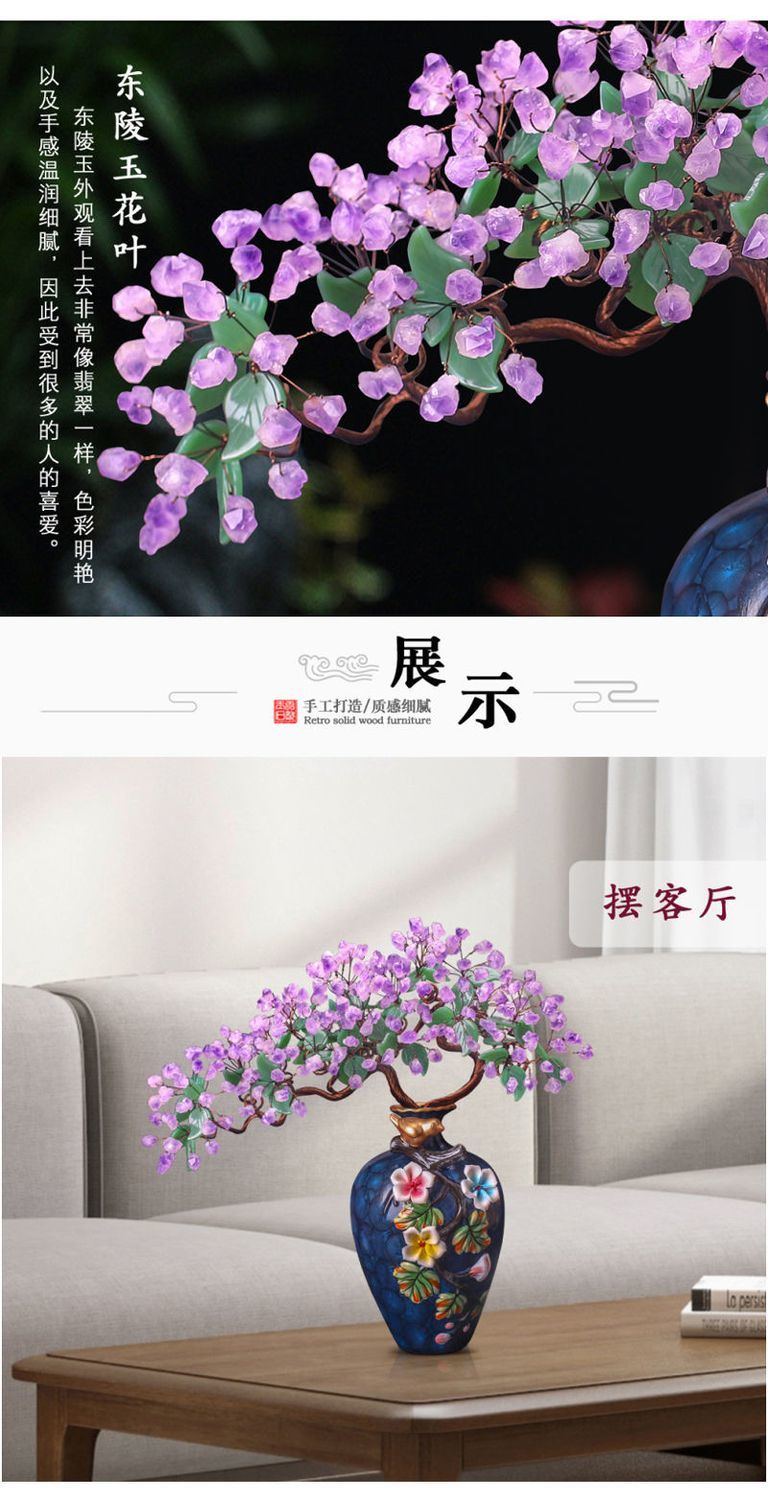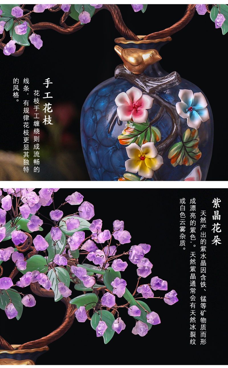 天然玉石高档简约紫水晶工艺品盆栽创意梳妆台餐桌玉器摆件