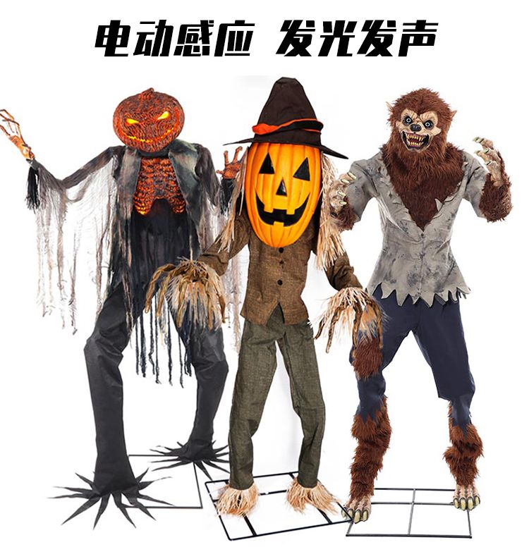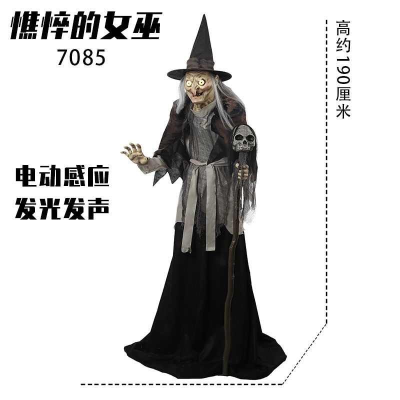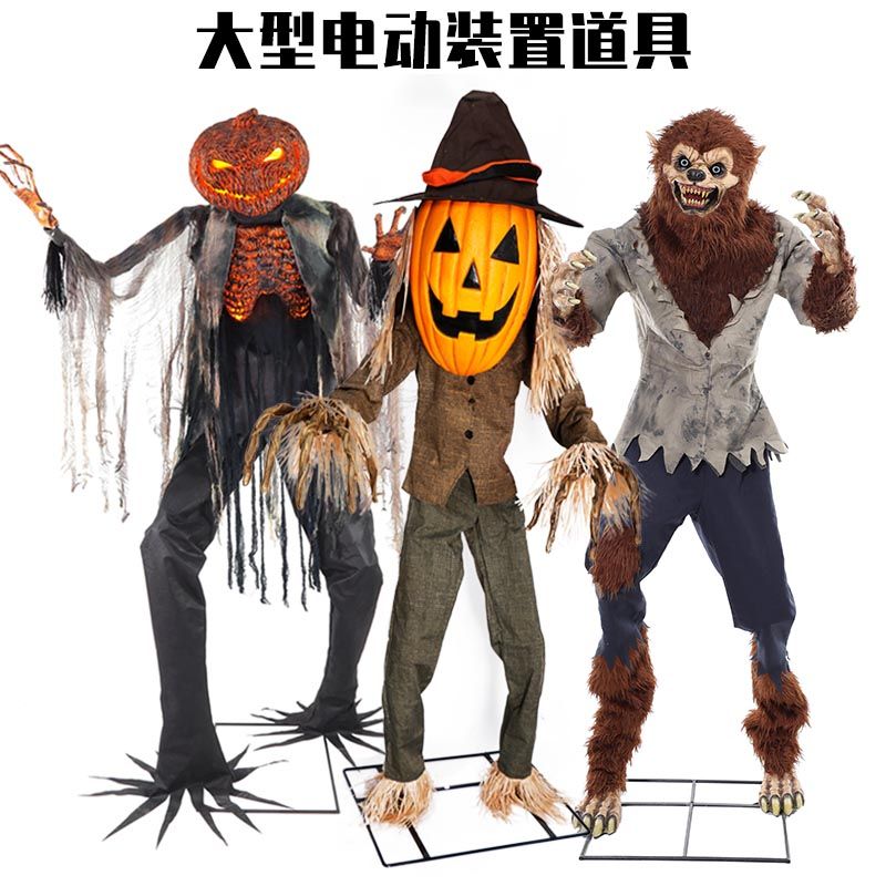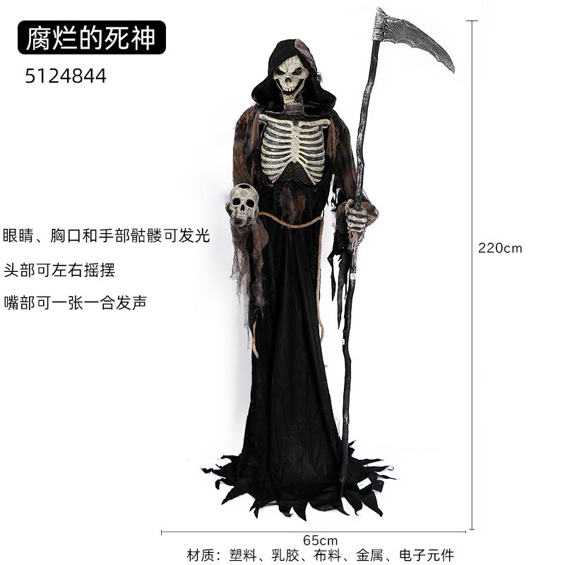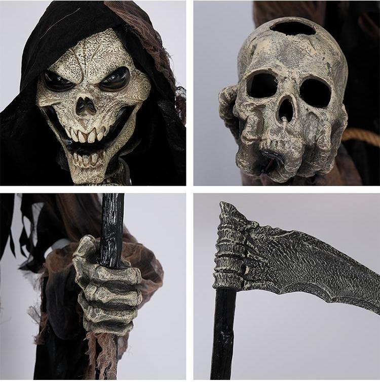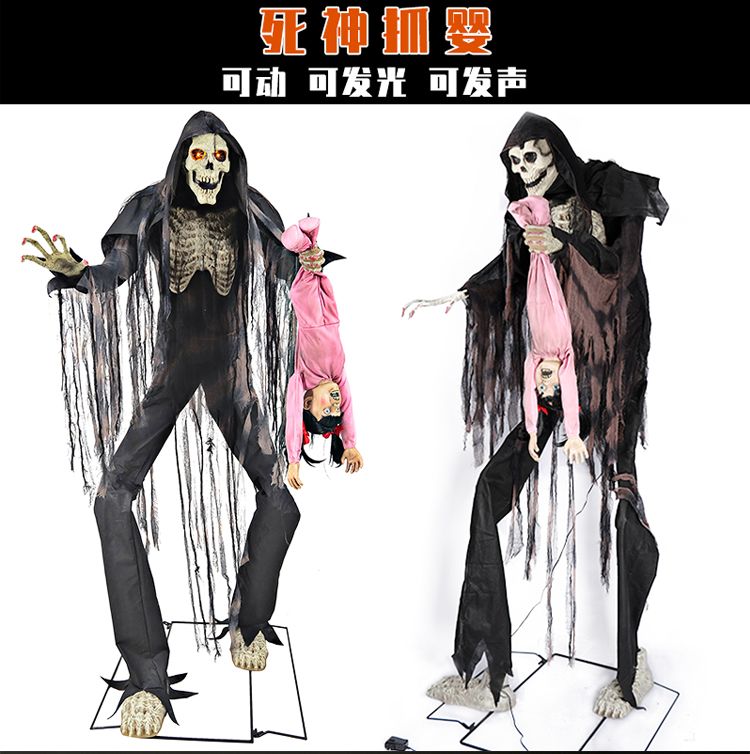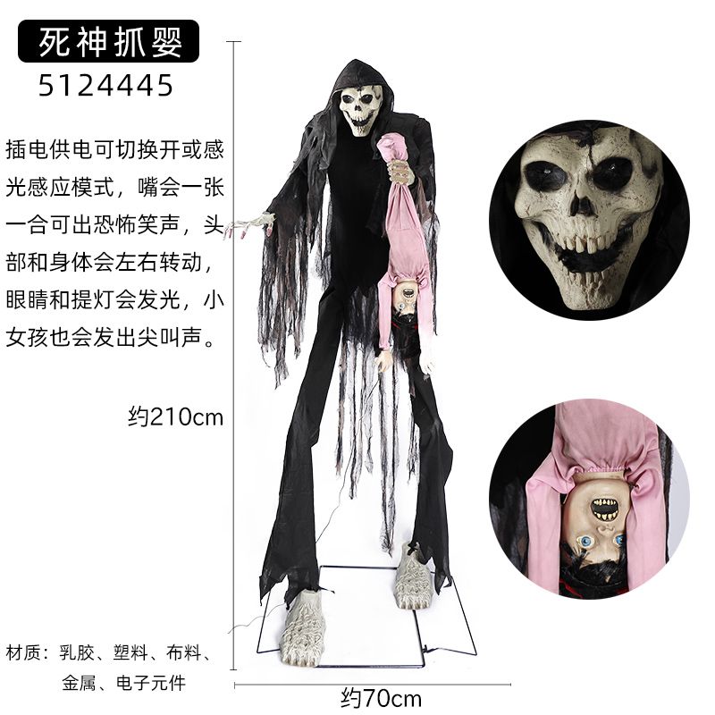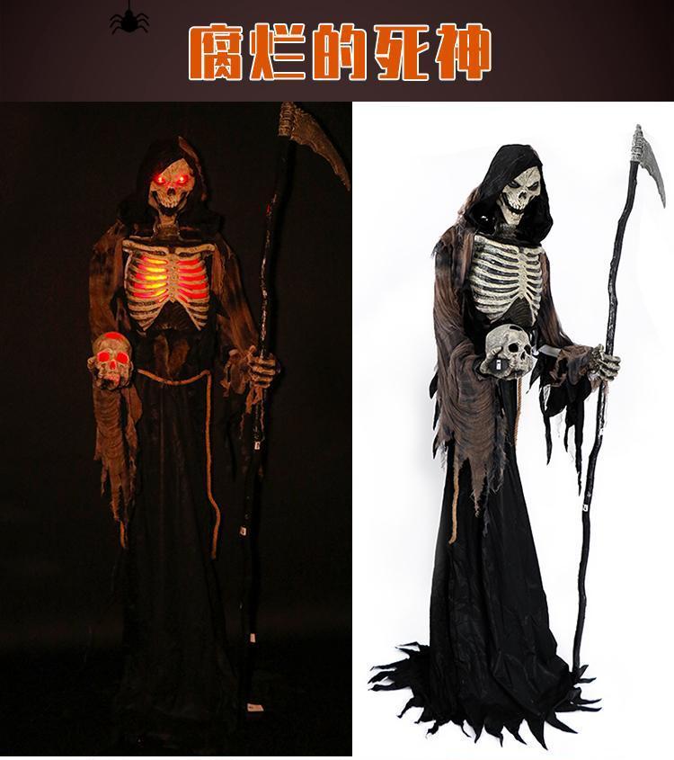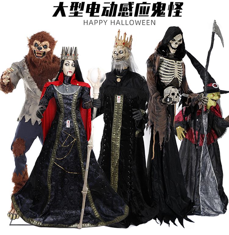 万圣节大鬼恐怖屋装饰道具镰刀死神幽灵巫婆南瓜感应发声骷髅摆件