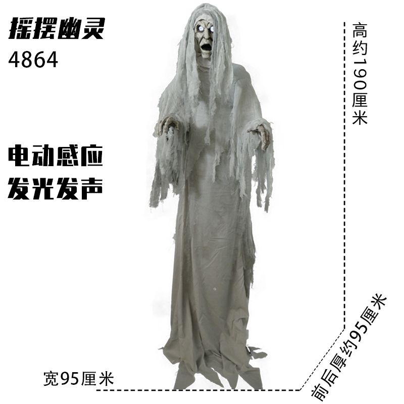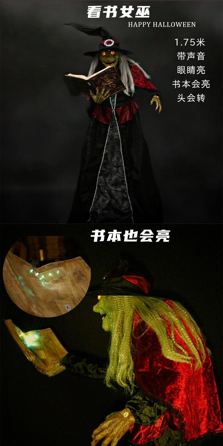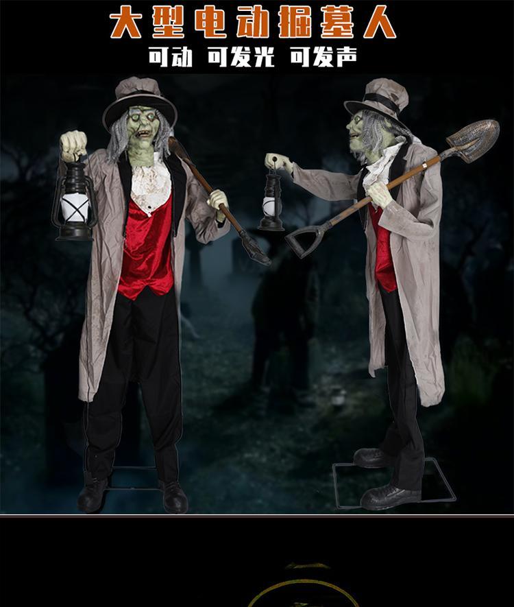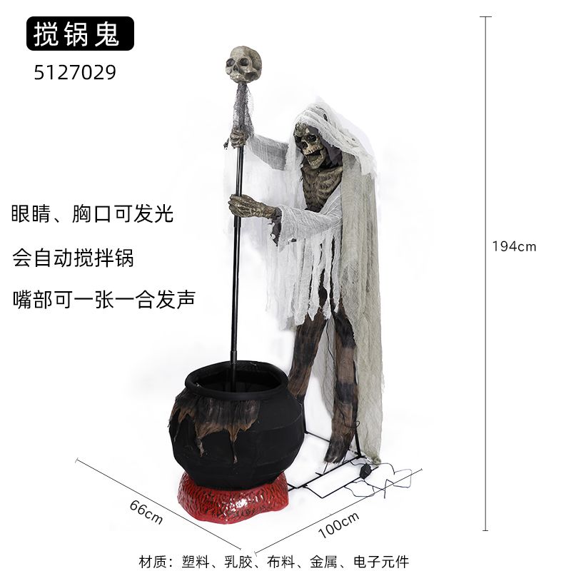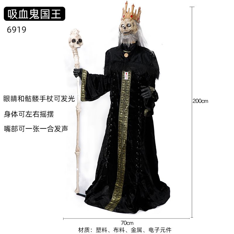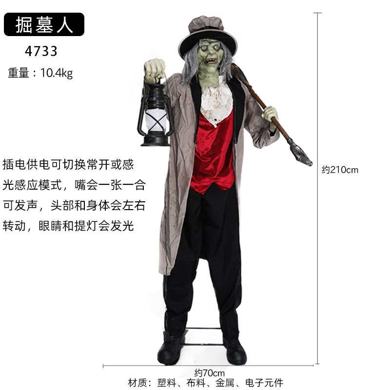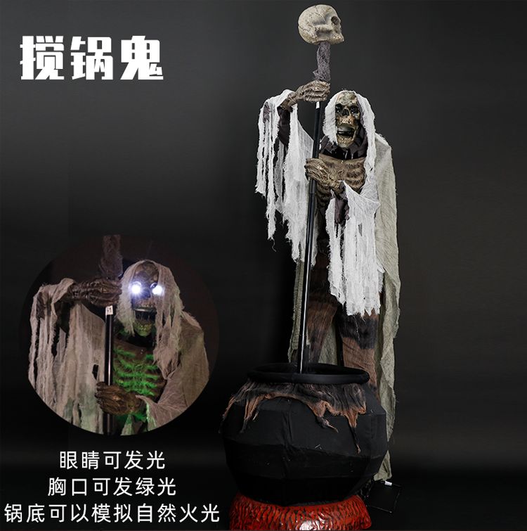 万圣节大鬼恐怖屋装饰道具镰刀死神幽灵巫婆南瓜感应发声骷髅摆件