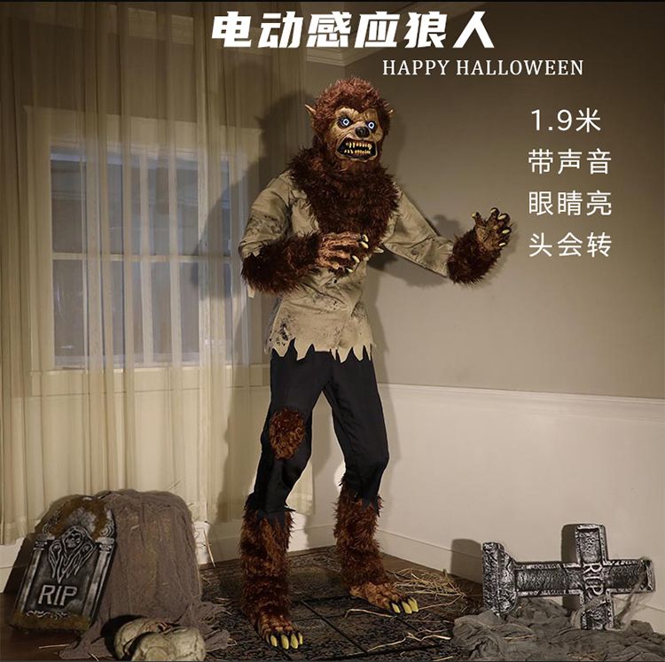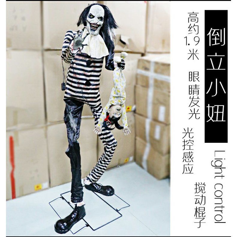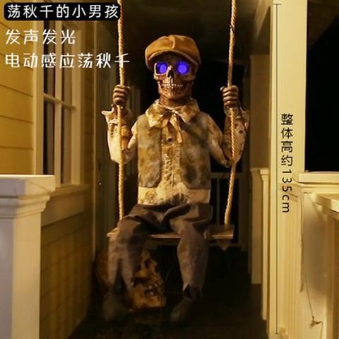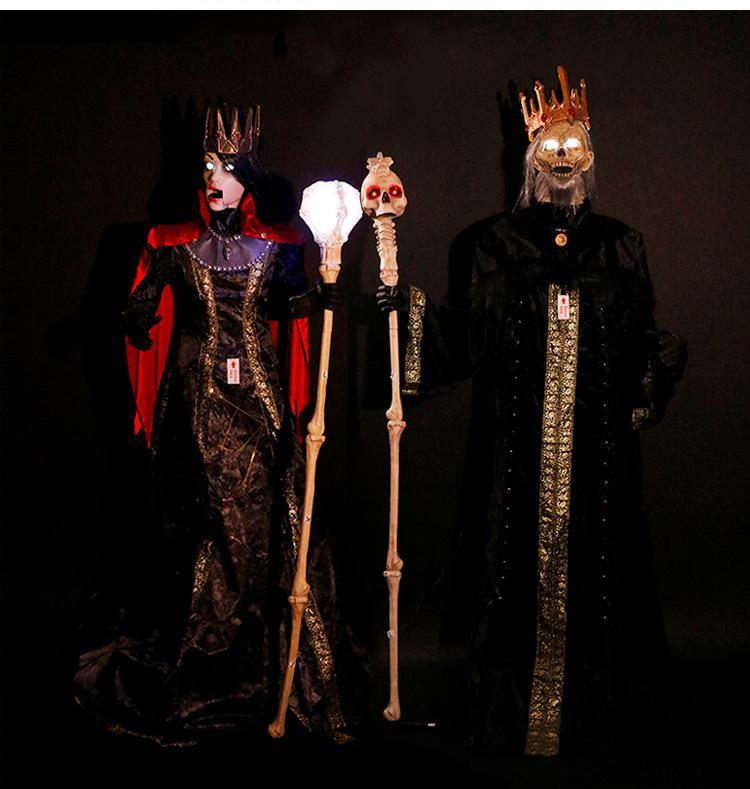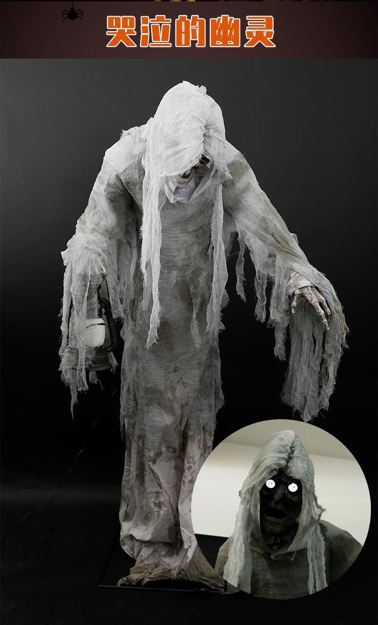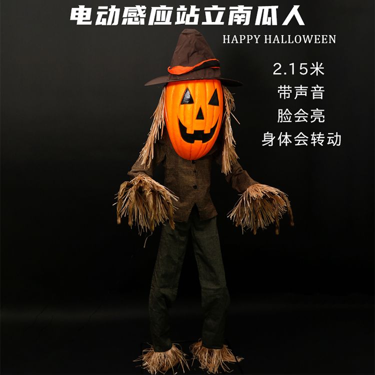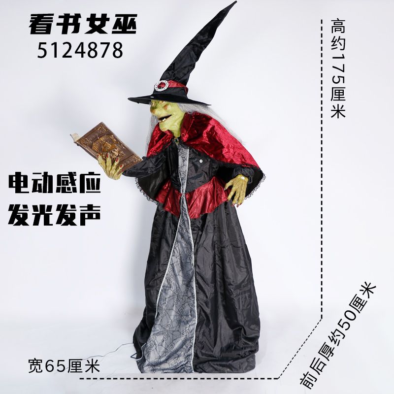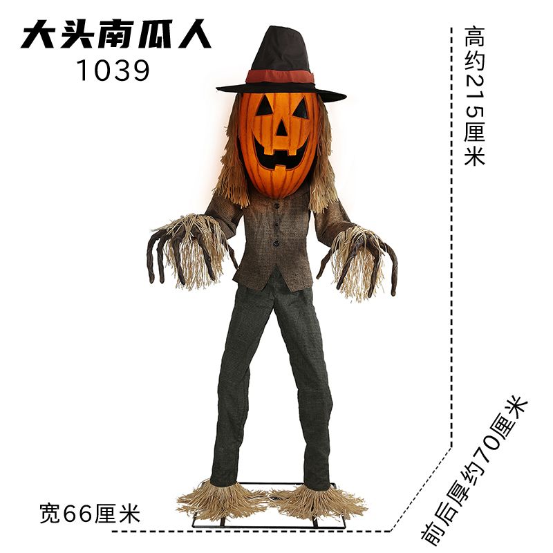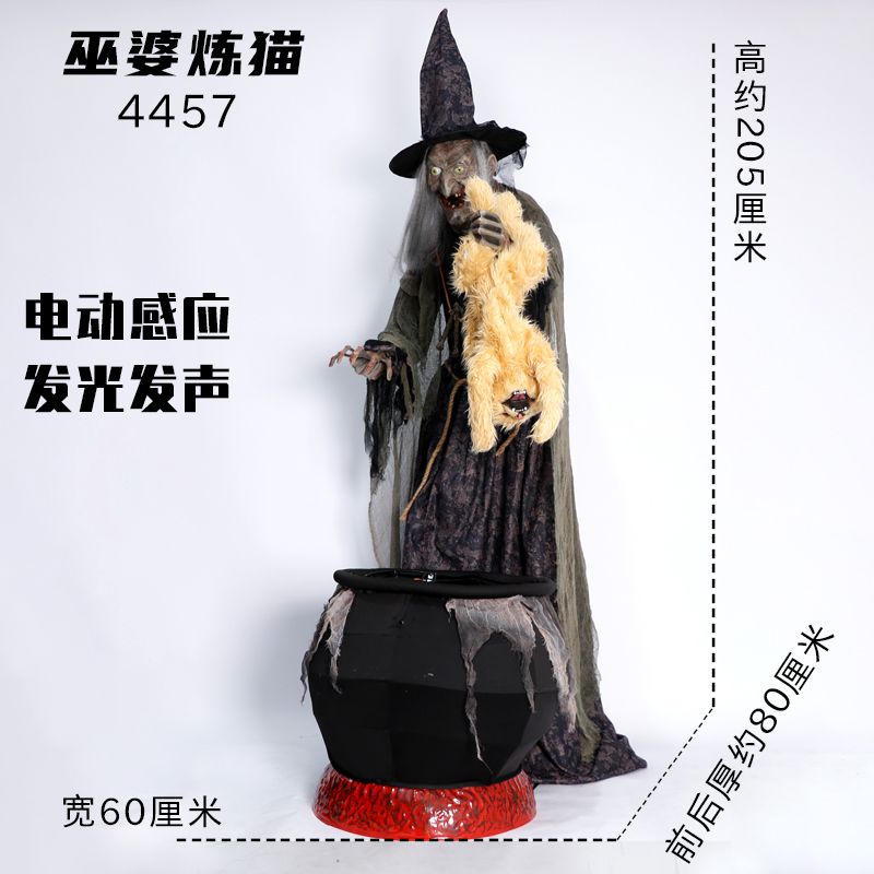 万圣节大鬼恐怖屋装饰道具镰刀死神幽灵巫婆南瓜感应发声骷髅摆件