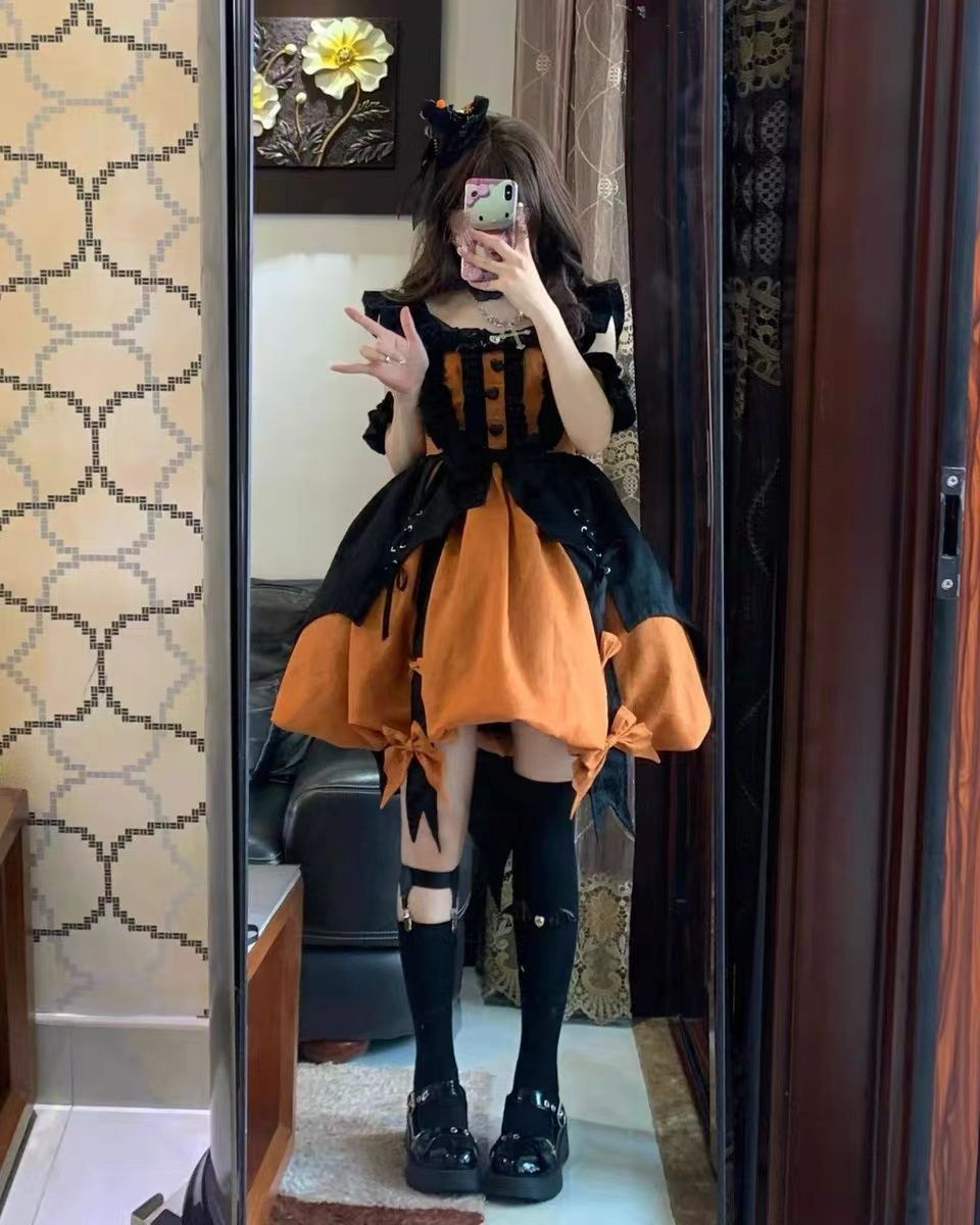 万圣节女巫南瓜黑暗小魔女jsk连衣裙可爱甜美luolita公主裙