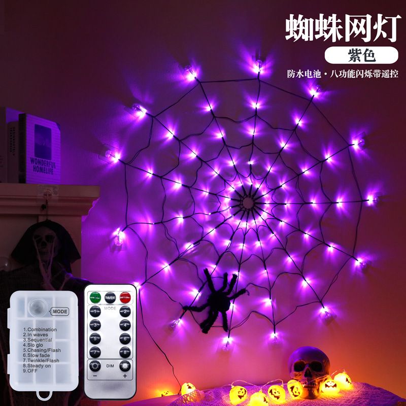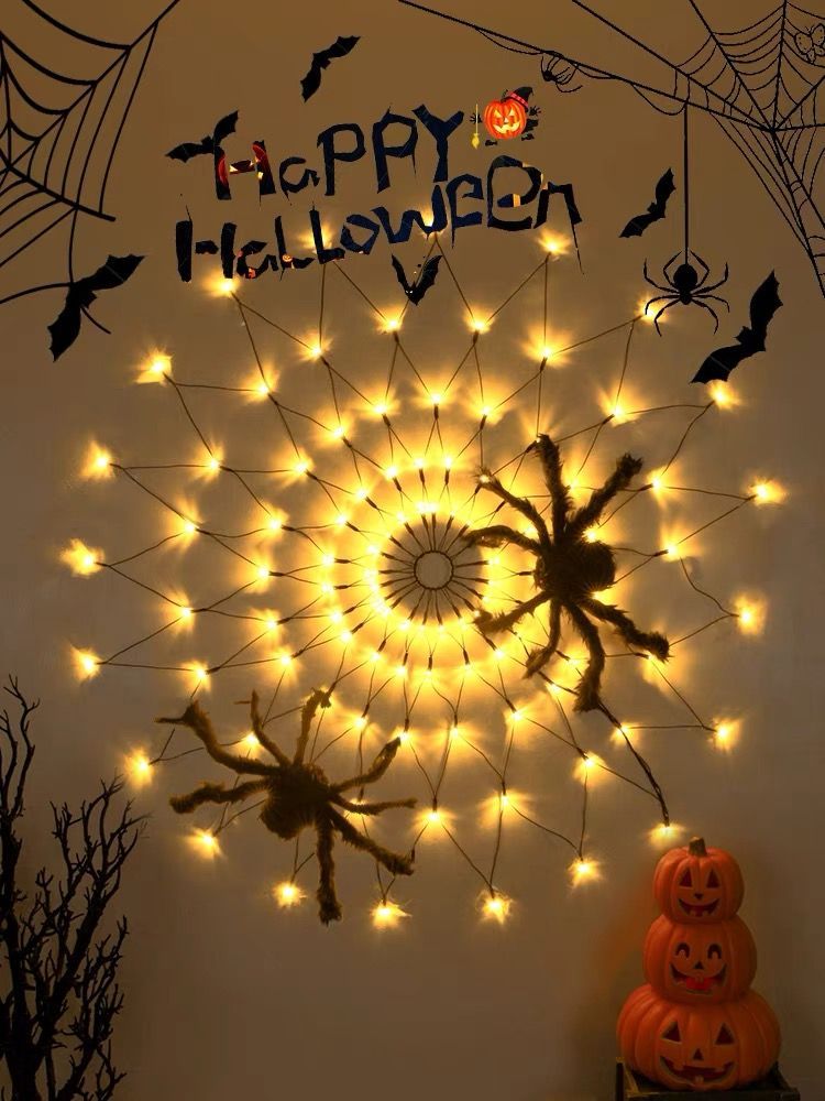 万圣节装饰LED蜘蛛网灯鬼节发光蜘蛛搞怪灯光房间氛围灯卧室网红