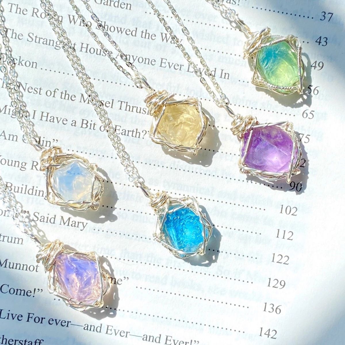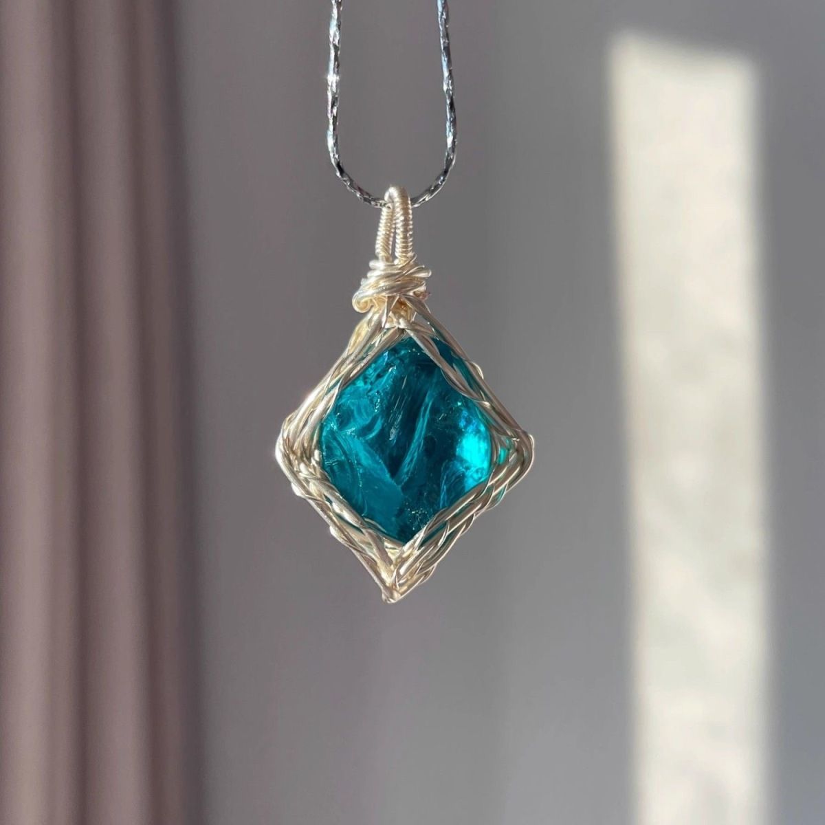 退潮原创手作天然水晶绕线吊坠项链海蓝宝仙本那湖蓝送女友闺蜜