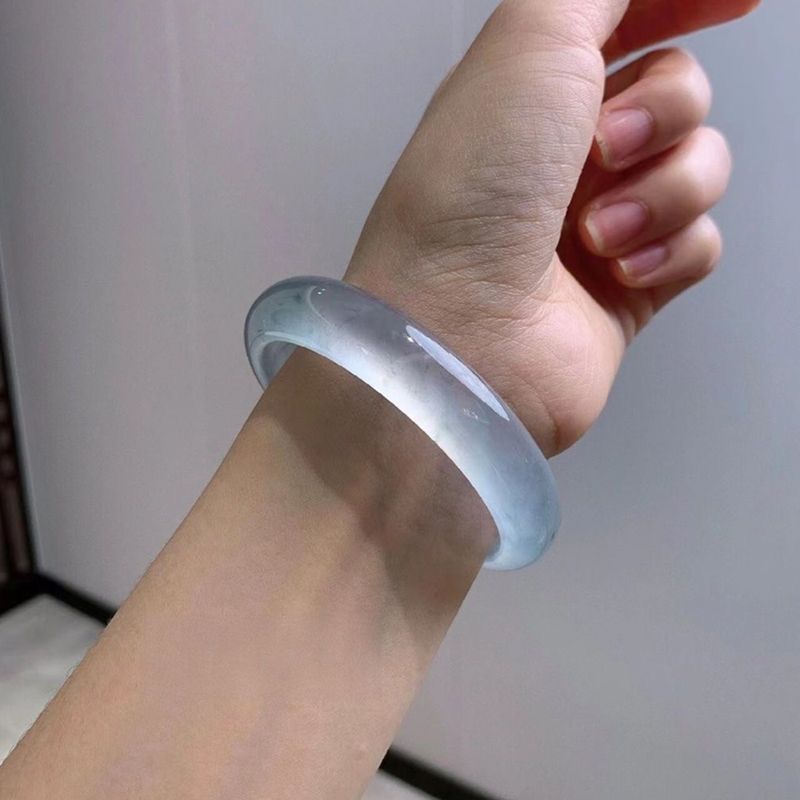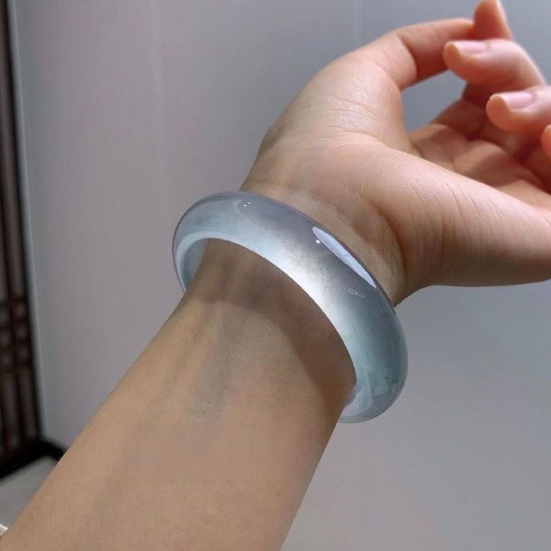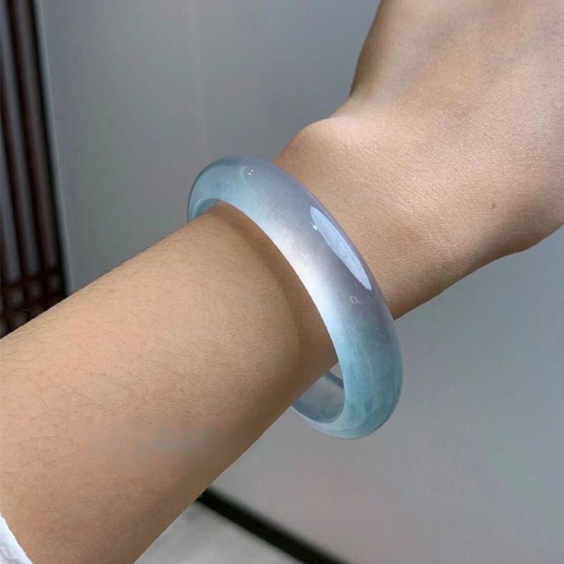 蓝水冰种海蓝宝玉镯晴水底天青冻镯天空蓝翡翠色石英岩玉手镯女款
