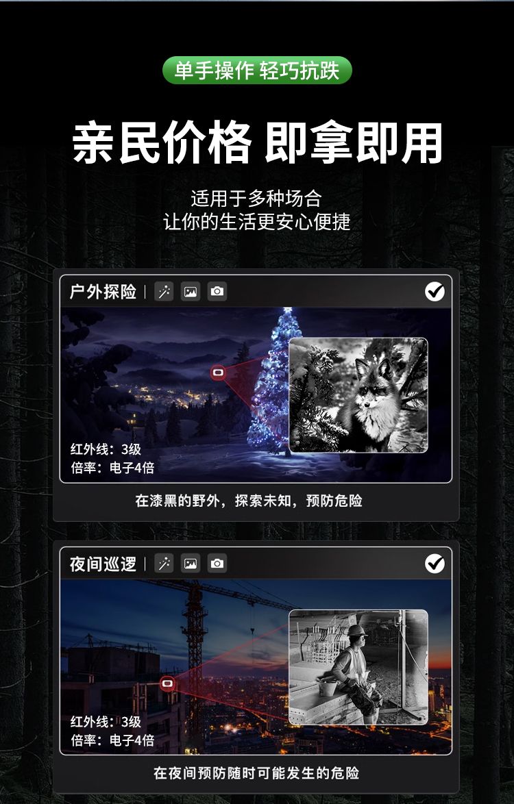 【黑白一体瞄具】高清户外手持红外夜视仪可拍照录像观鸟镜捕鱼