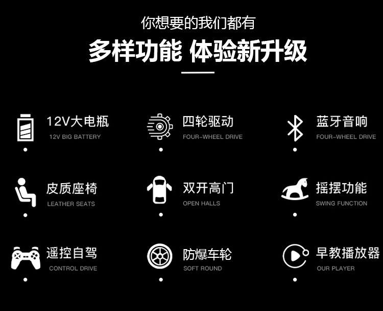 | black + 12v10ah + ordinary tire seat(黑色+12V10ah+普通轮胎座椅) | USD $365.61 | 99999 piece available |