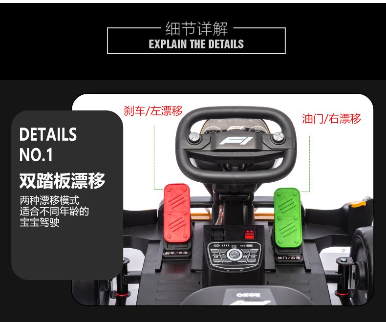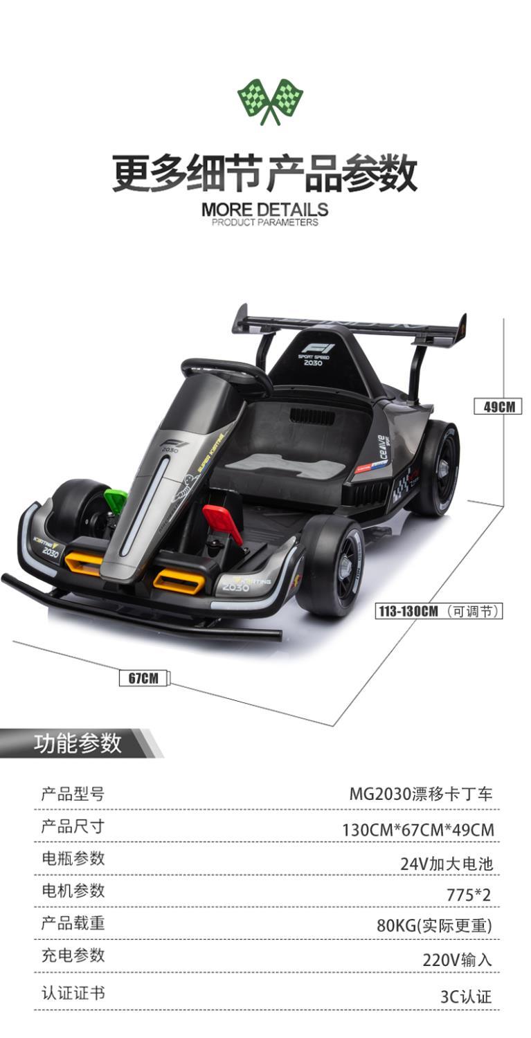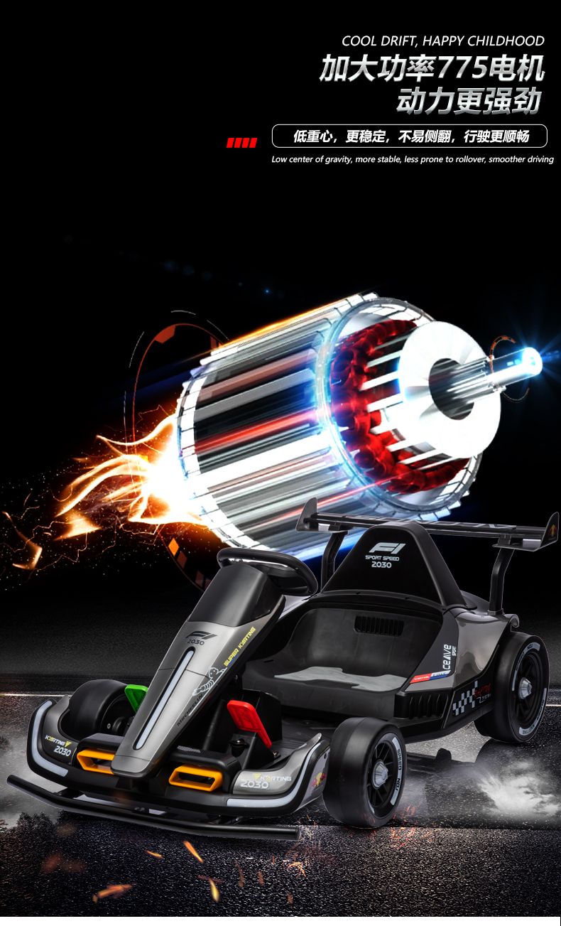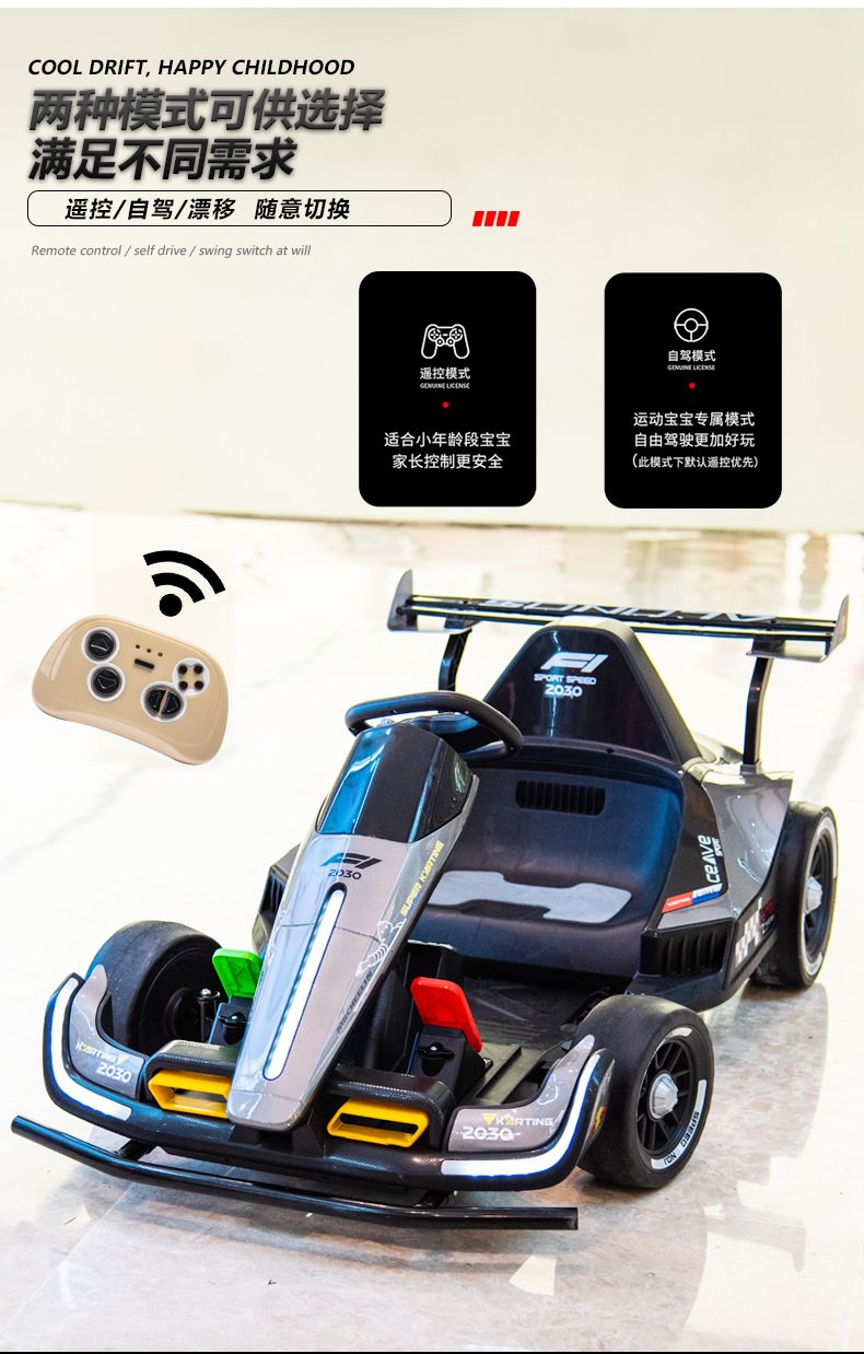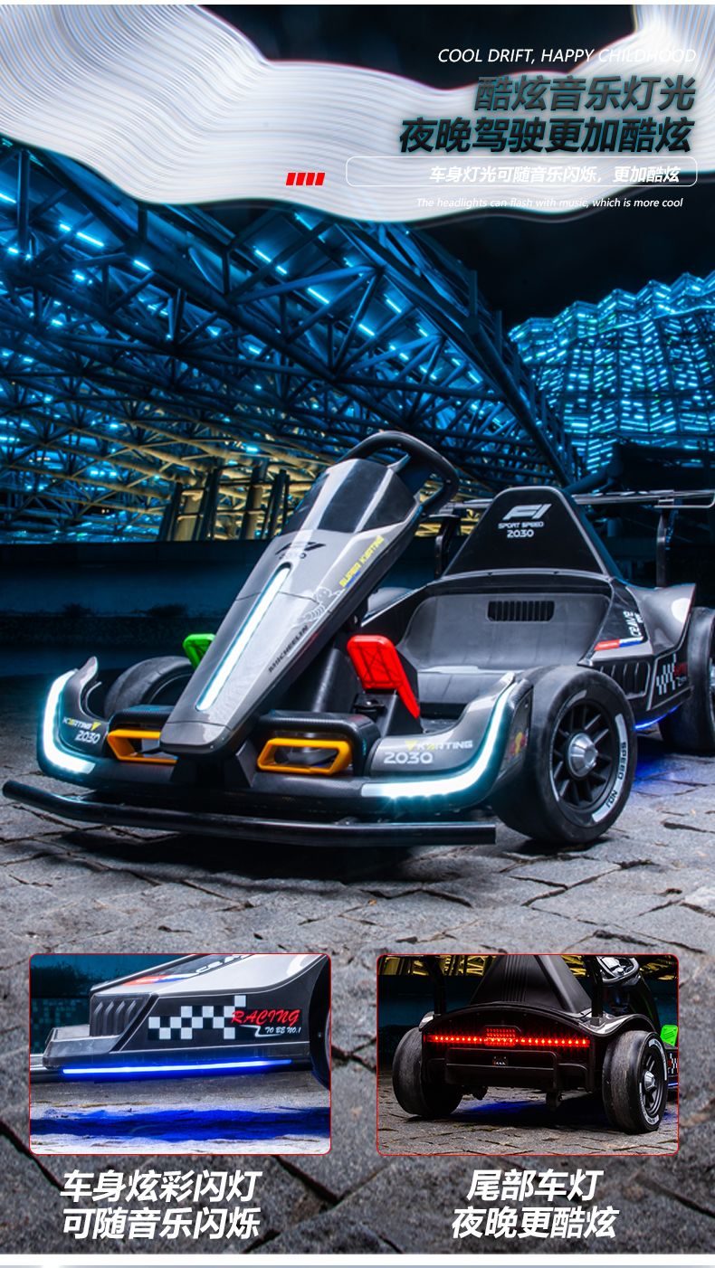 高端飘移卡丁车炫酷儿童电动汽车儿童电动玩具长短可调四轮汽车