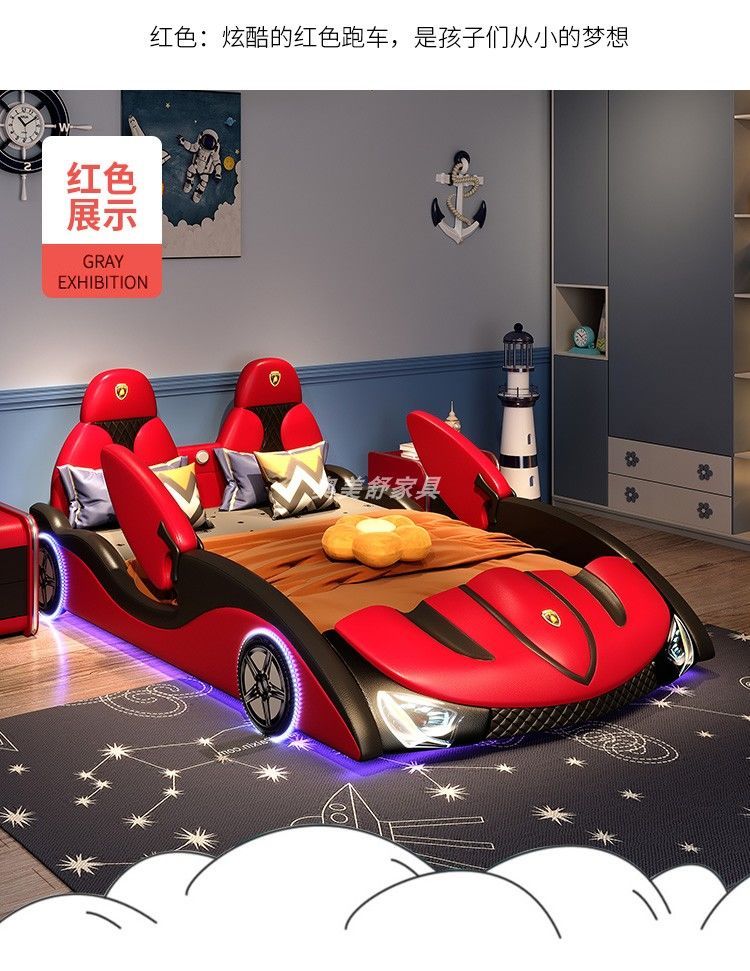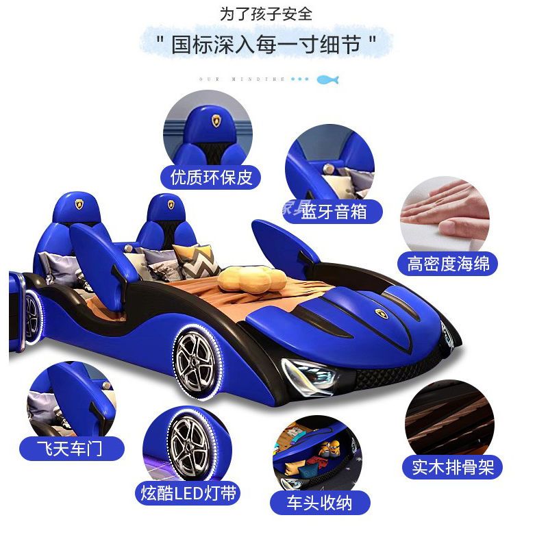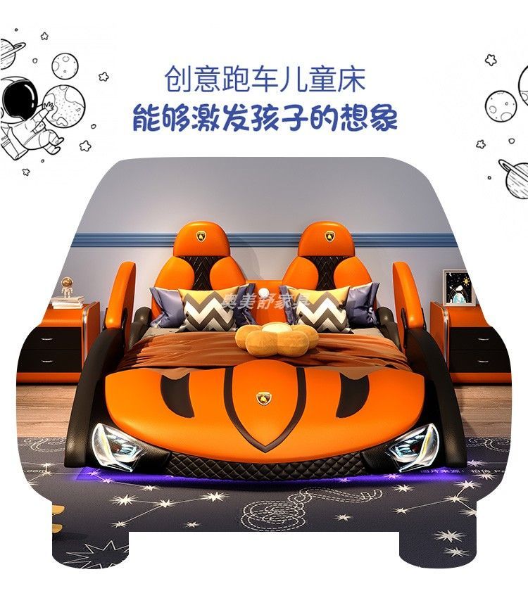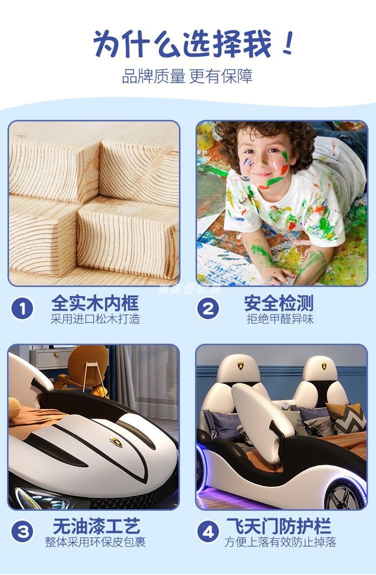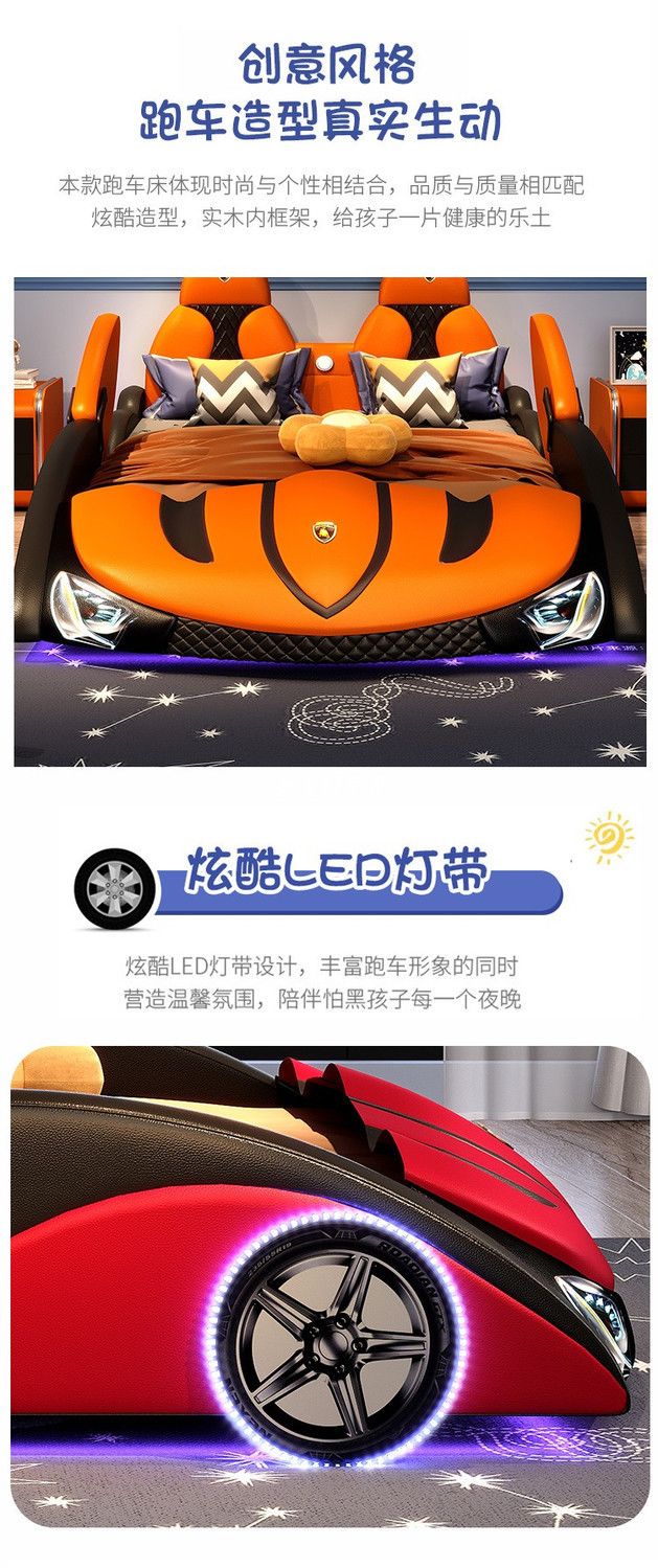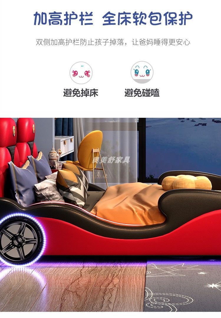 实木男孩汽车床带护栏1.5M创意儿童床1.2M单人房男童跑车拼接皮床