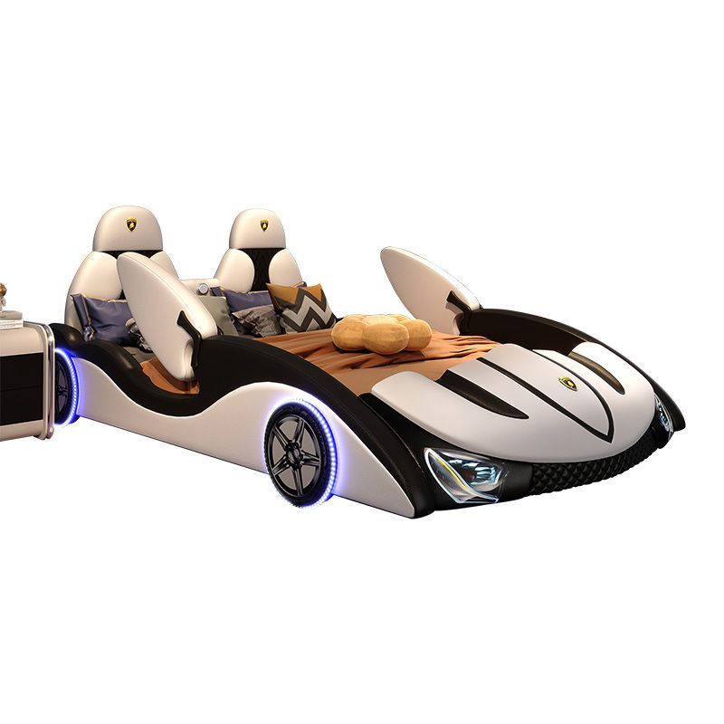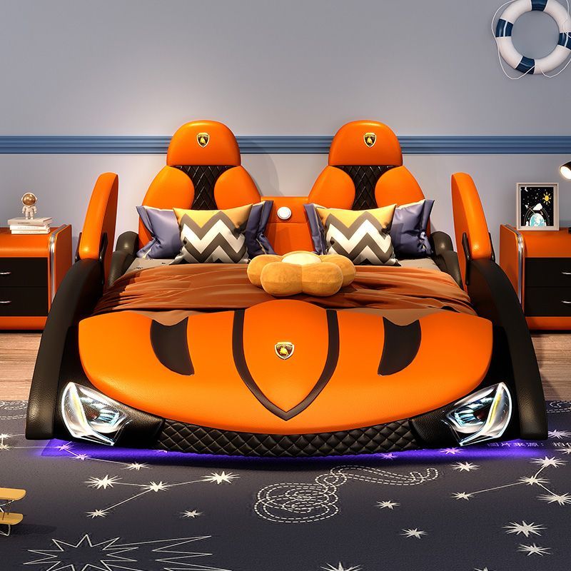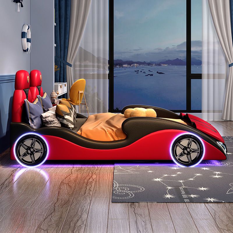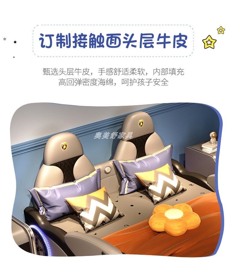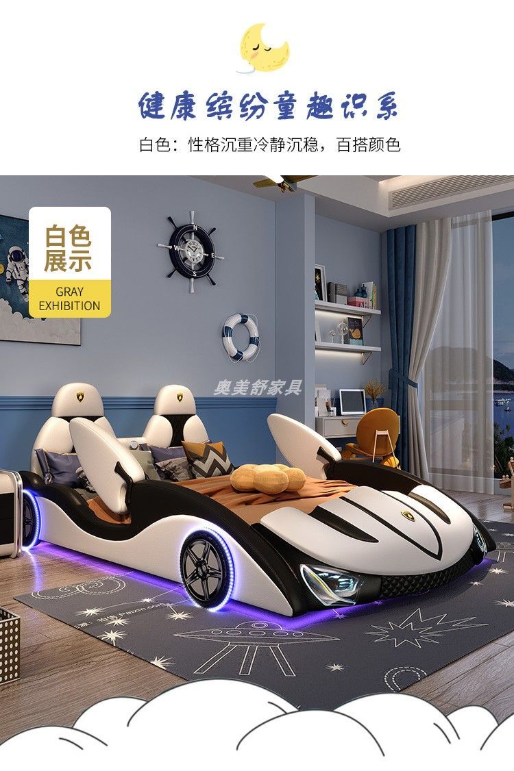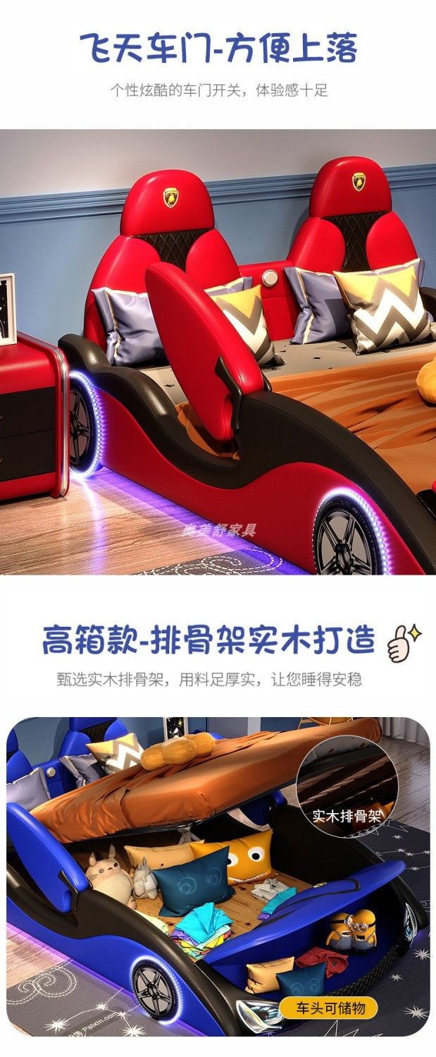 实木男孩汽车床带护栏1.5M创意儿童床1.2M单人房男童跑车拼接皮床