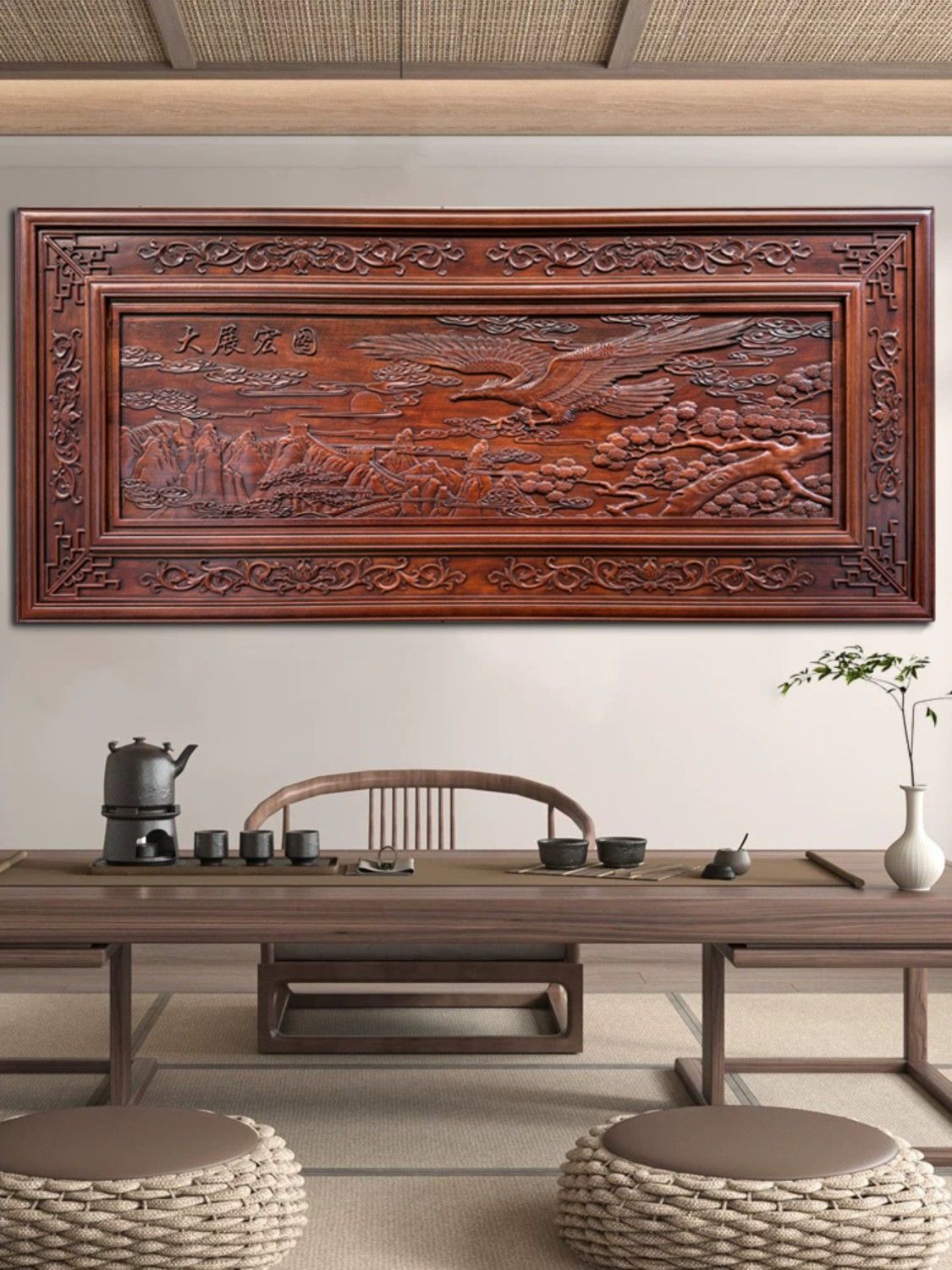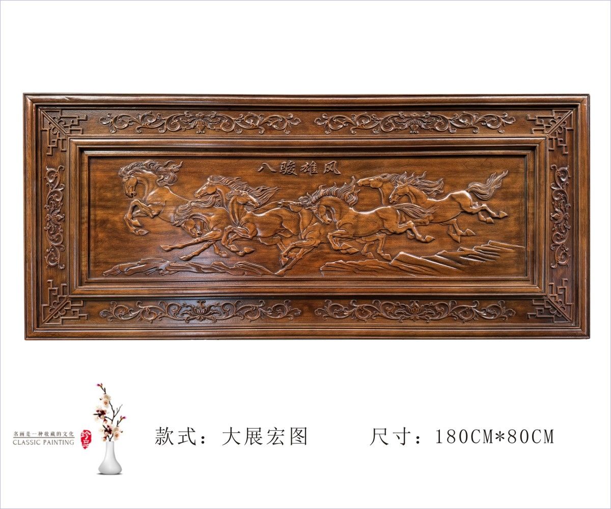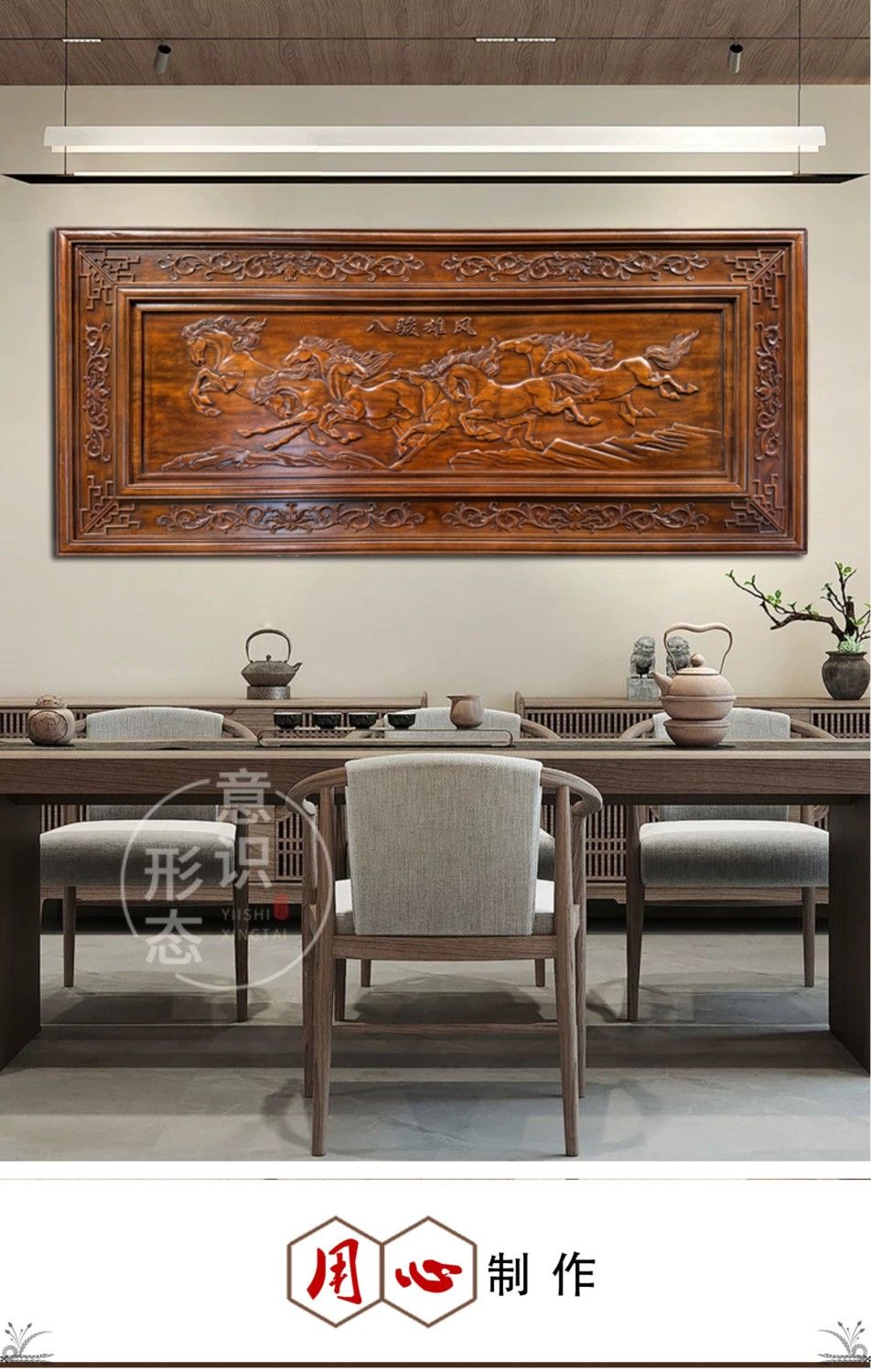 东阳木雕挂件香樟木实木雕刻中式仿古客厅背景墙装饰画横版浮雕画