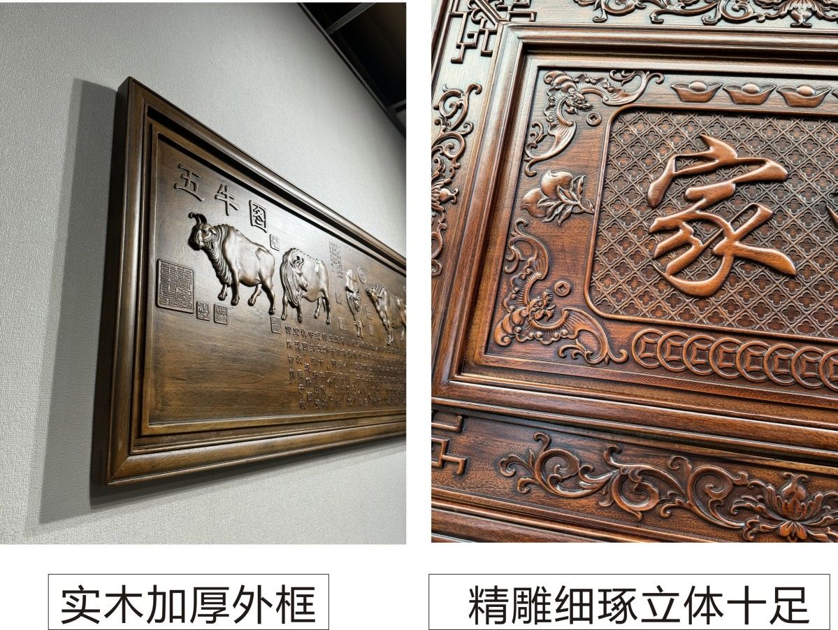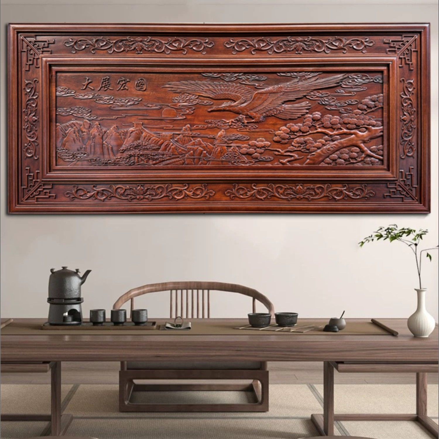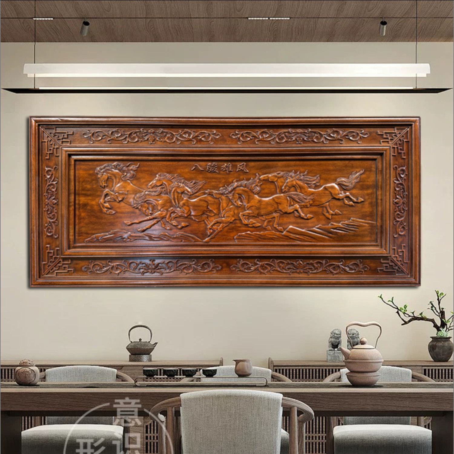 东阳木雕挂件香樟木实木雕刻中式仿古客厅背景墙装饰画横版浮雕画